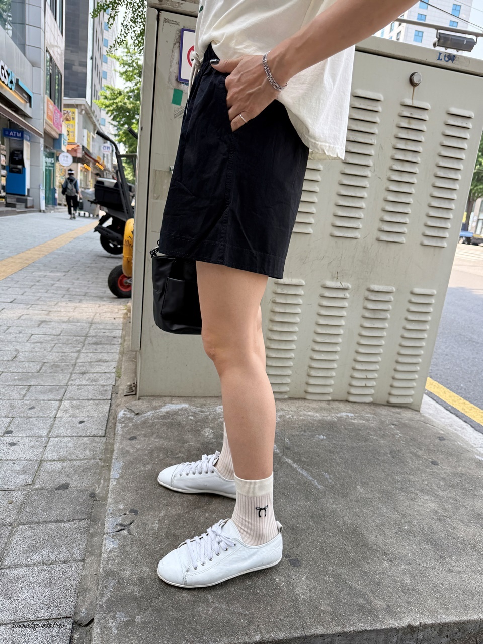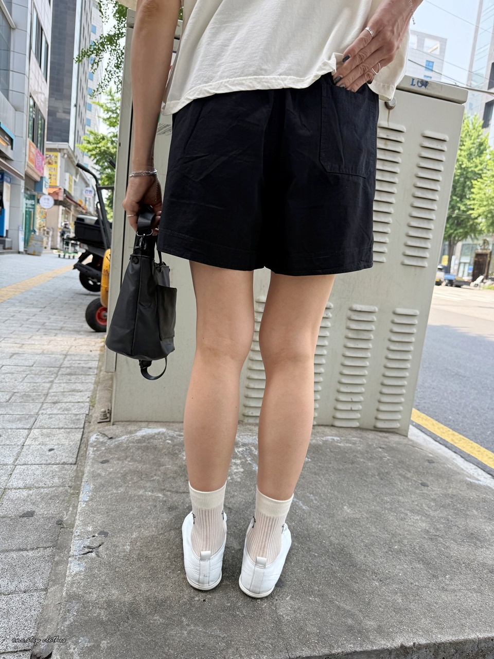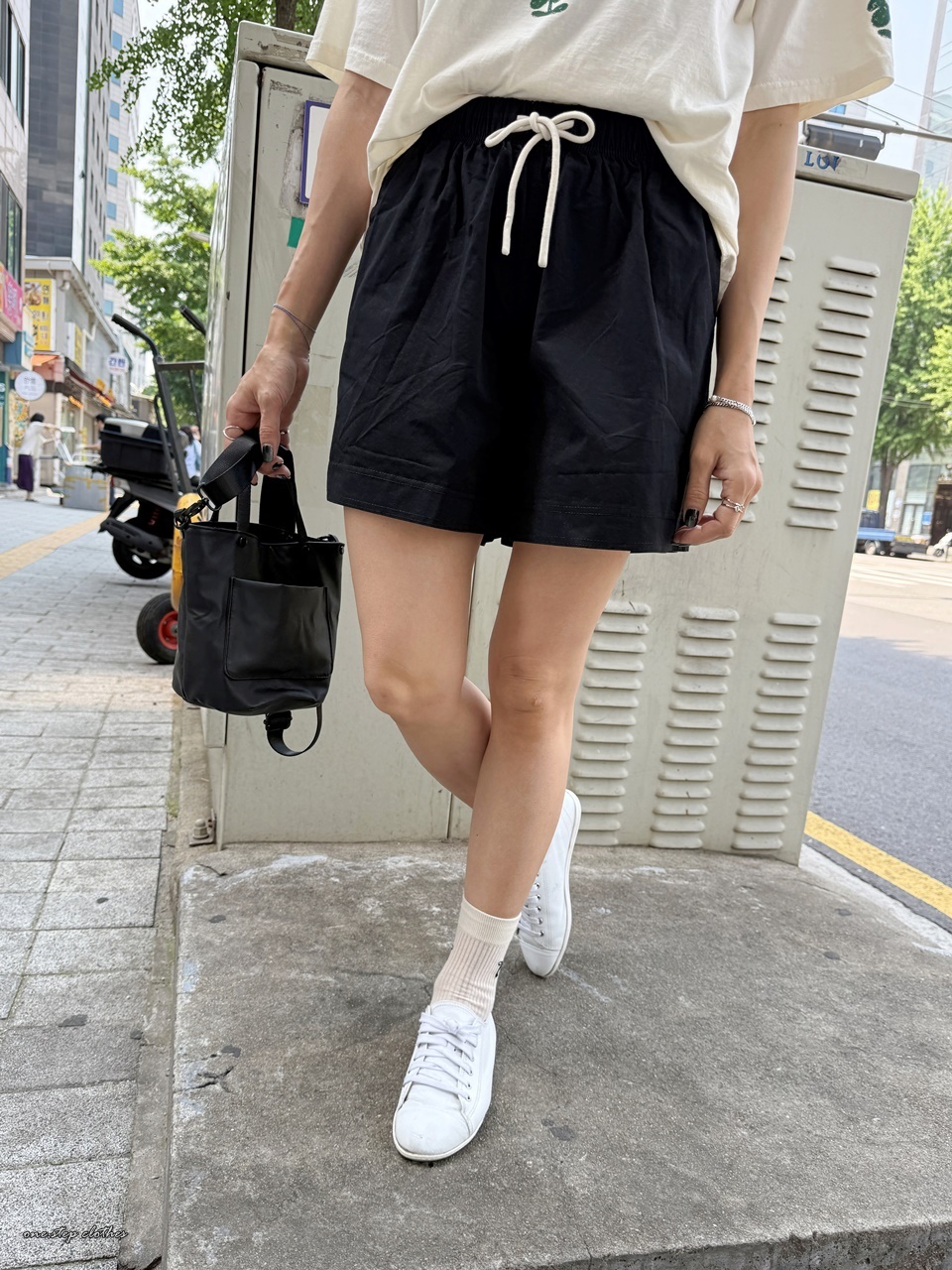 正韓顯瘦馬卡龍綁帶短褲 (黑)