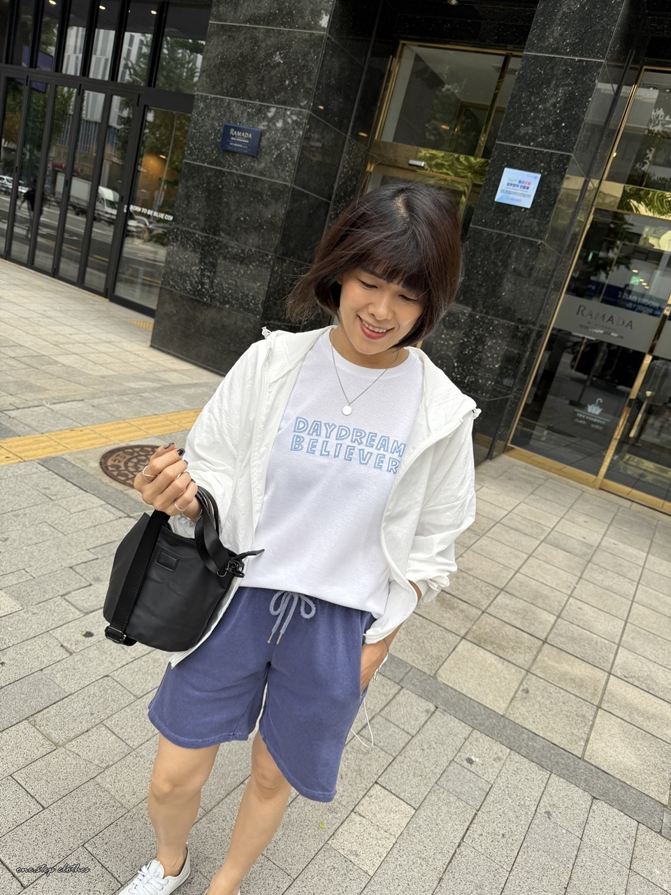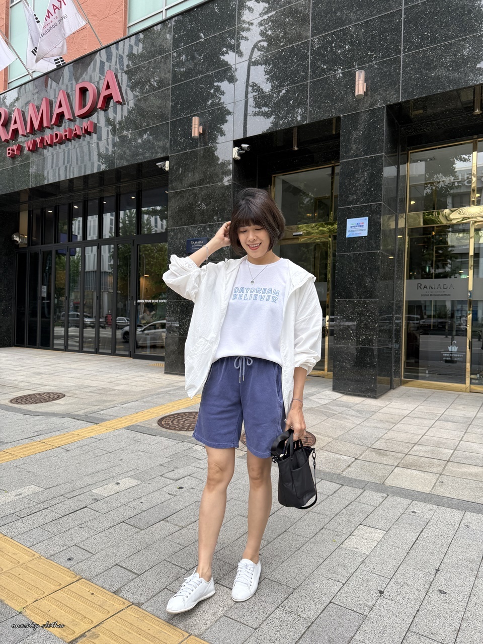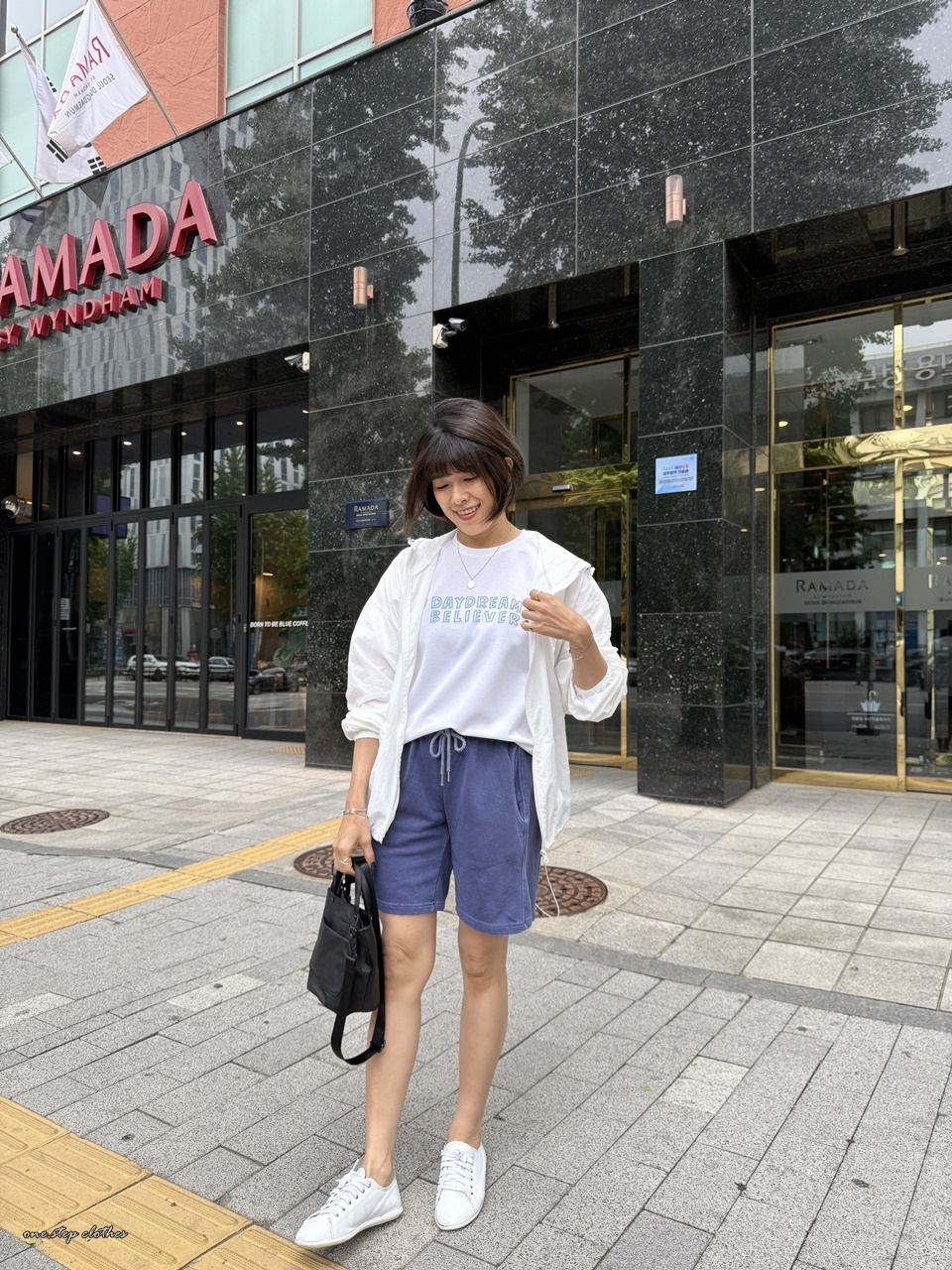這件穿起來腰圍舒適,褲長約4-5分中間