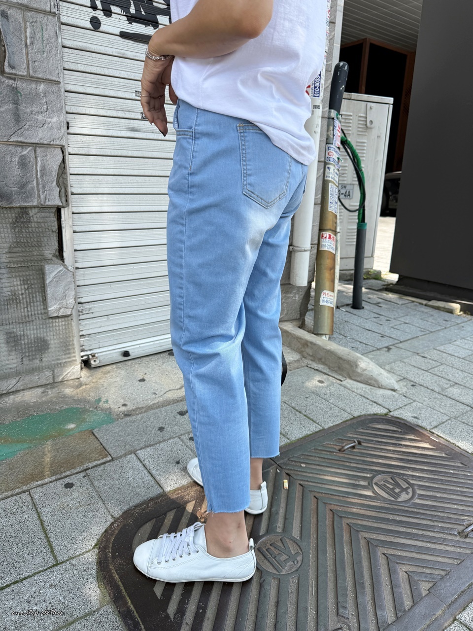 這款穿S,穿起來腰圍舒適,整體腿順帶點上寬下窄,褲長算9分,褲頭約中腰大約肚臍以下一些些
