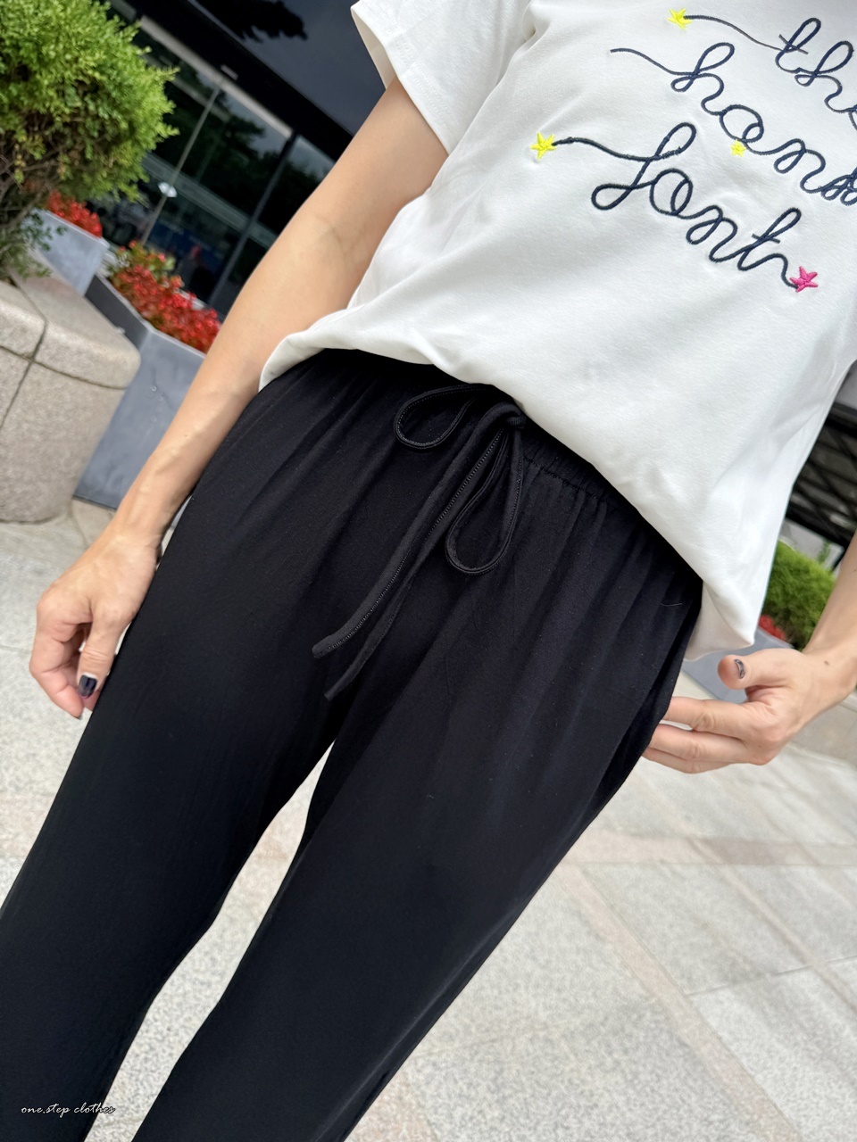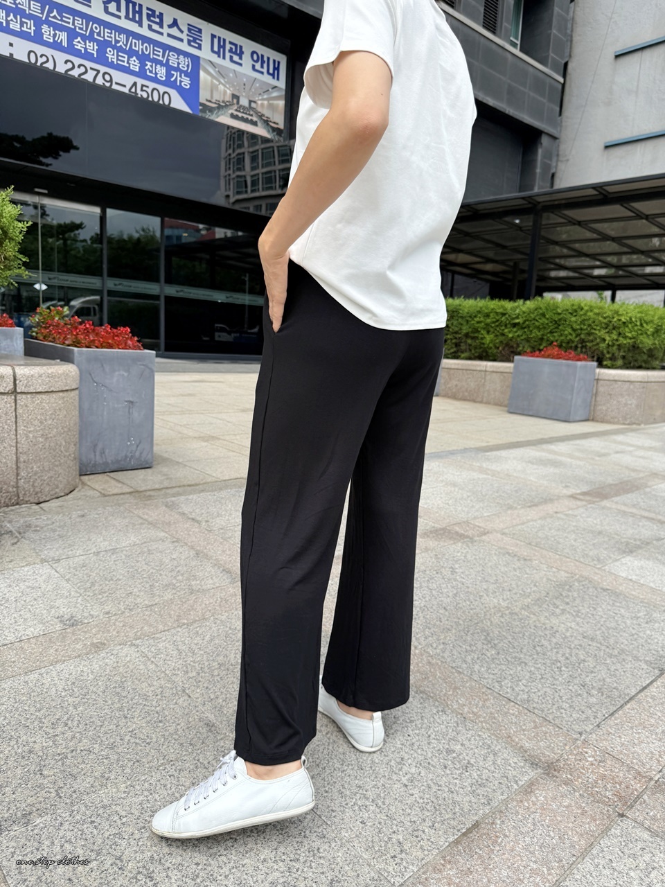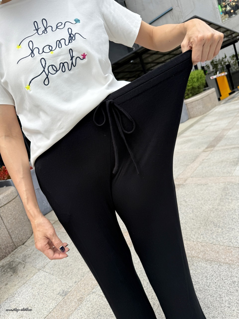 這款穿起來腰圍非常舒適,整體腿順不顯腿型,褲長約9-9.5分,褲頭中腰蓋到肚臍