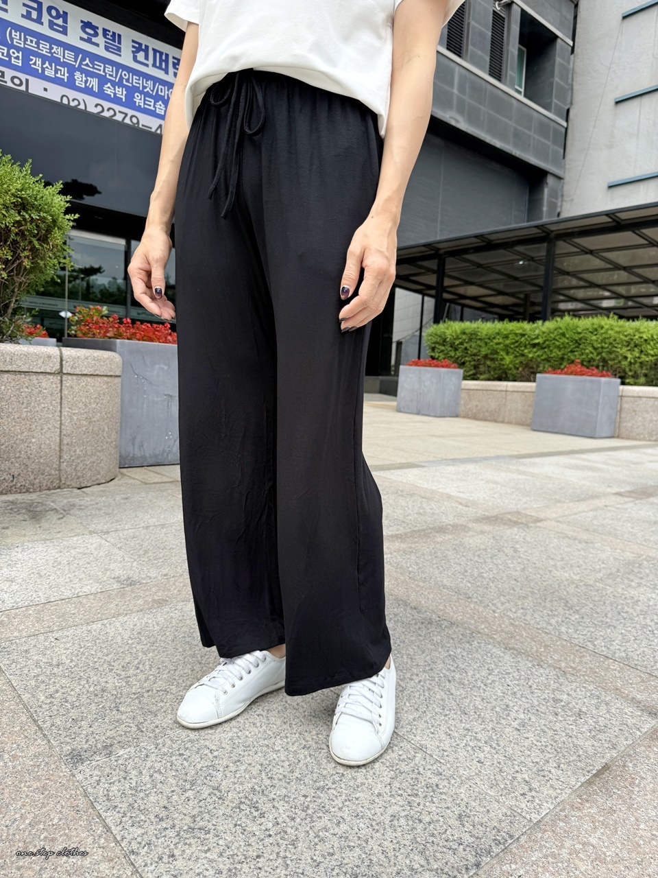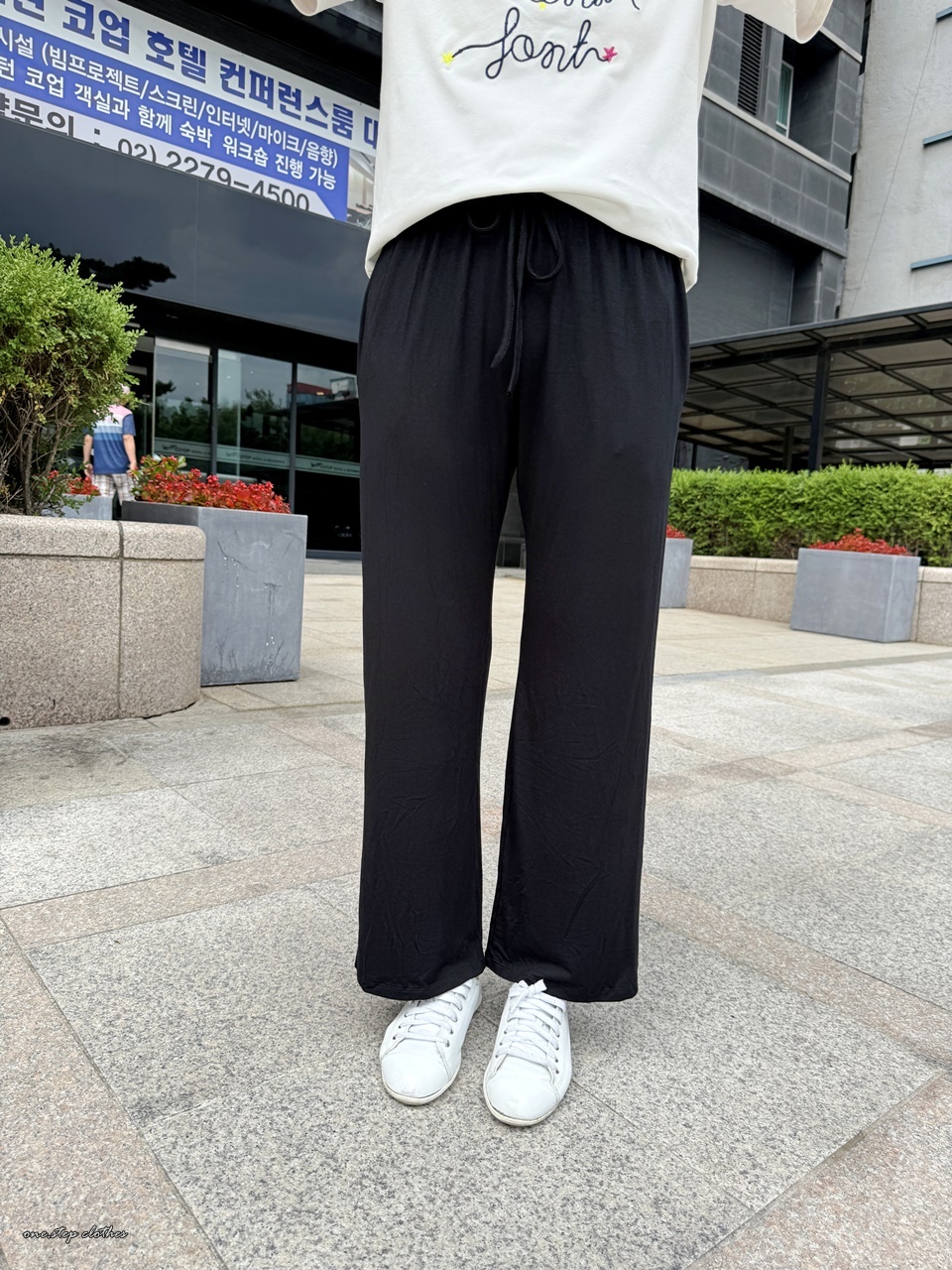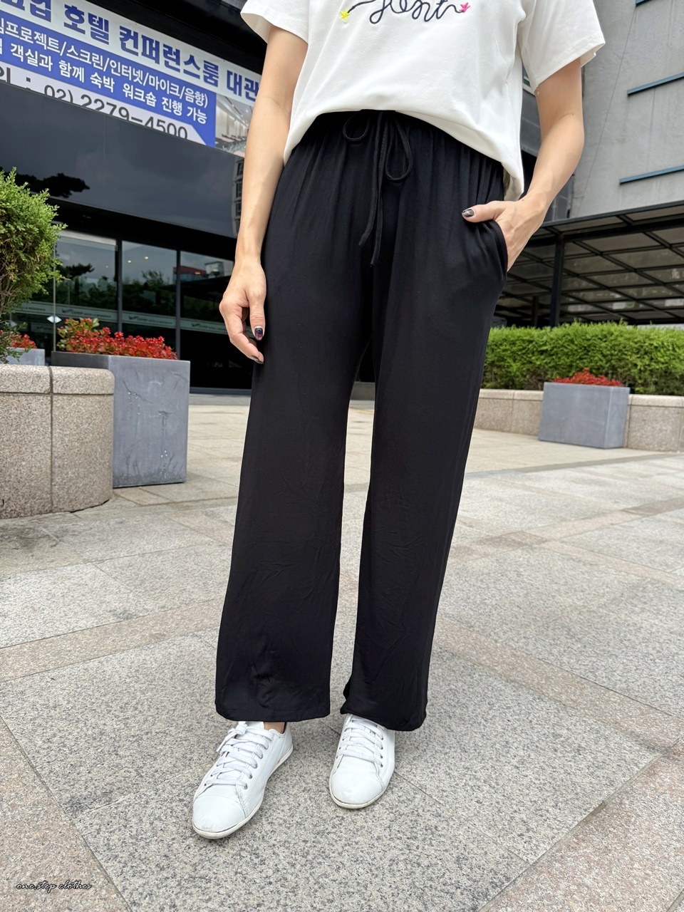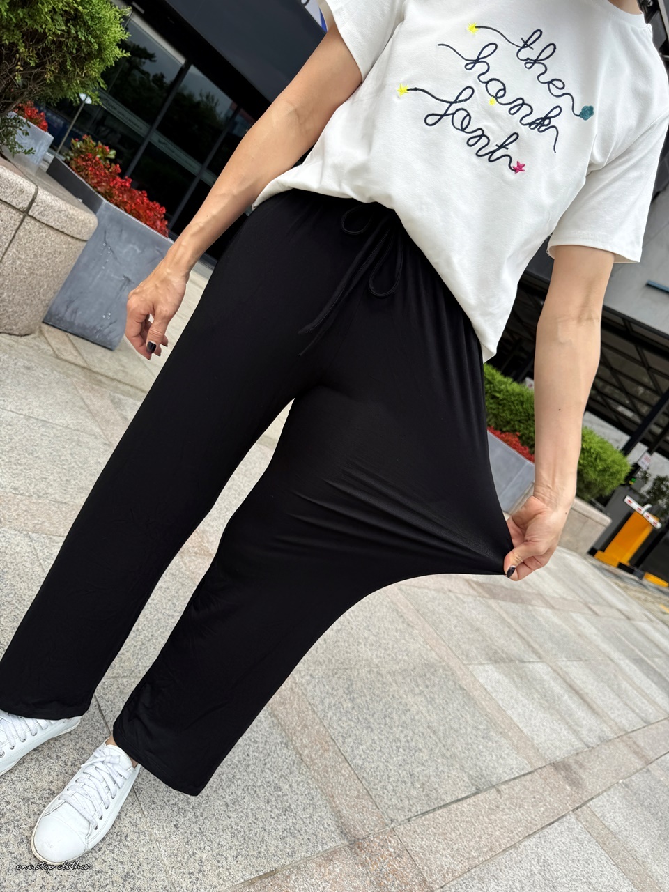 這款穿起來腰圍非常舒適,整體腿順不顯腿型,褲長約9-9.5分,褲頭中腰蓋到肚臍