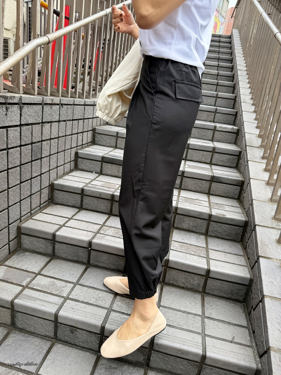 正韓suit俐落後鬆緊休閒縮口褲 (黑)