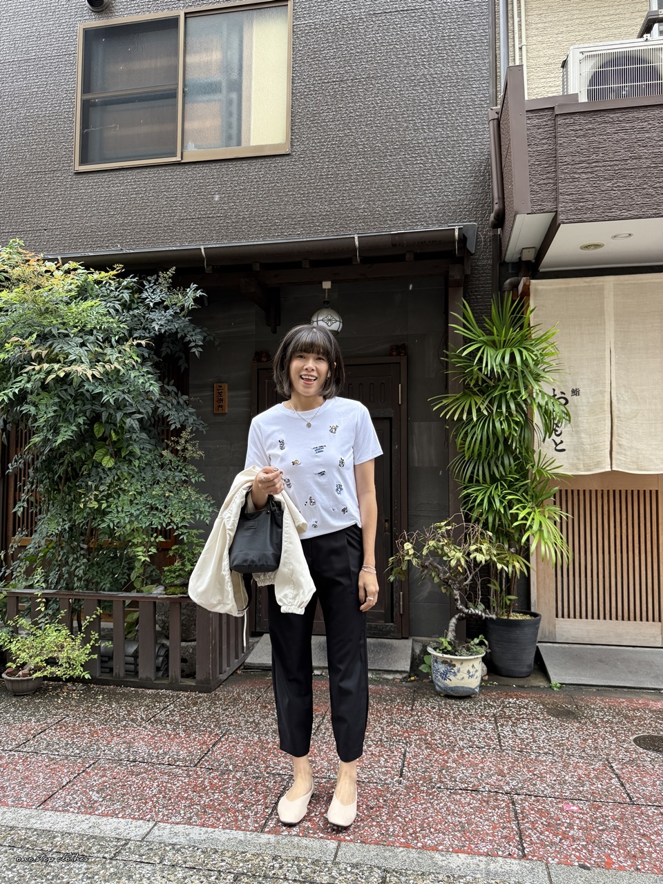 穿起來腰圍剛好,穿上去經過臀部會稍微拉一下但不會緊,大腿順順不貼,小腿後側有空間,褲長約9分,褲頭約中腰