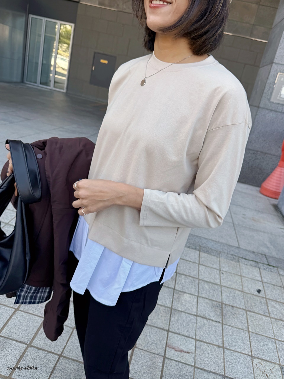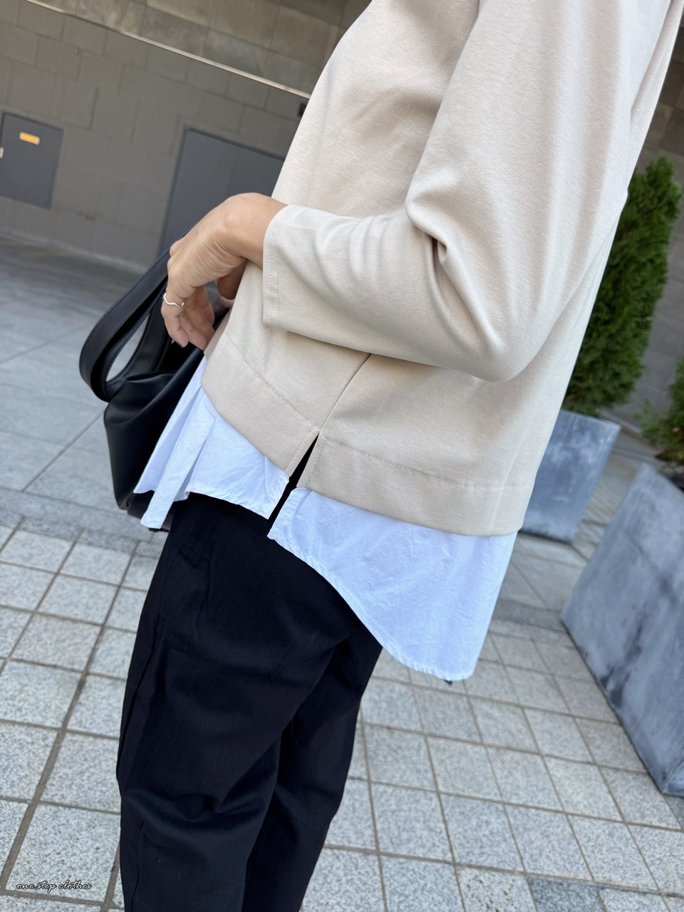 這件下襬的白色拼接剛好可以遮到臀部