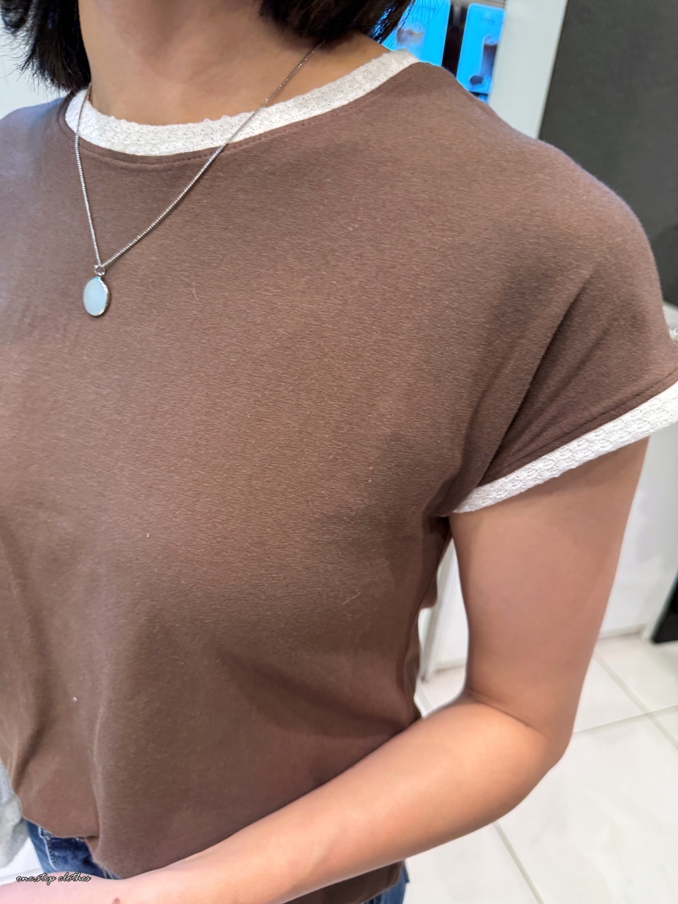 正韓可可領口拼接百搭上衣