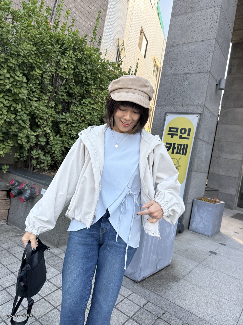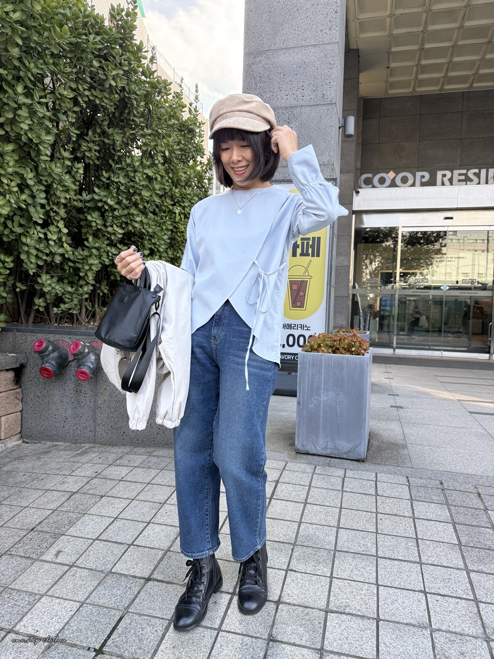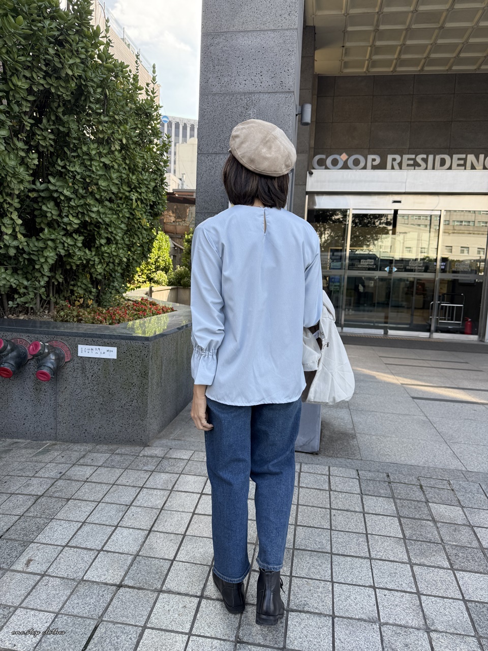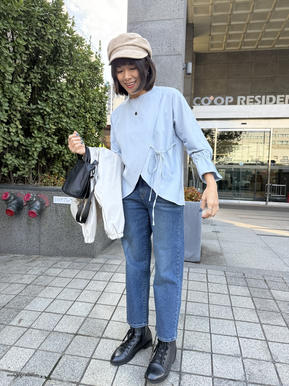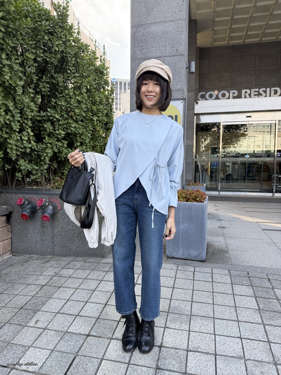 正韓溫柔斜邊綁帶雪紡衫 (水藍)