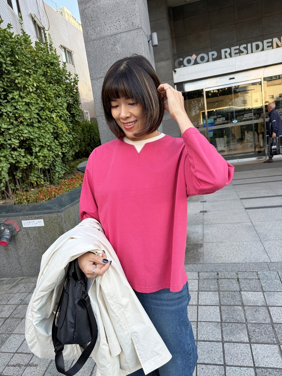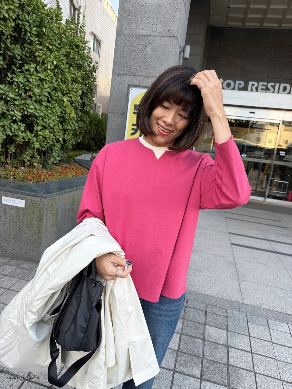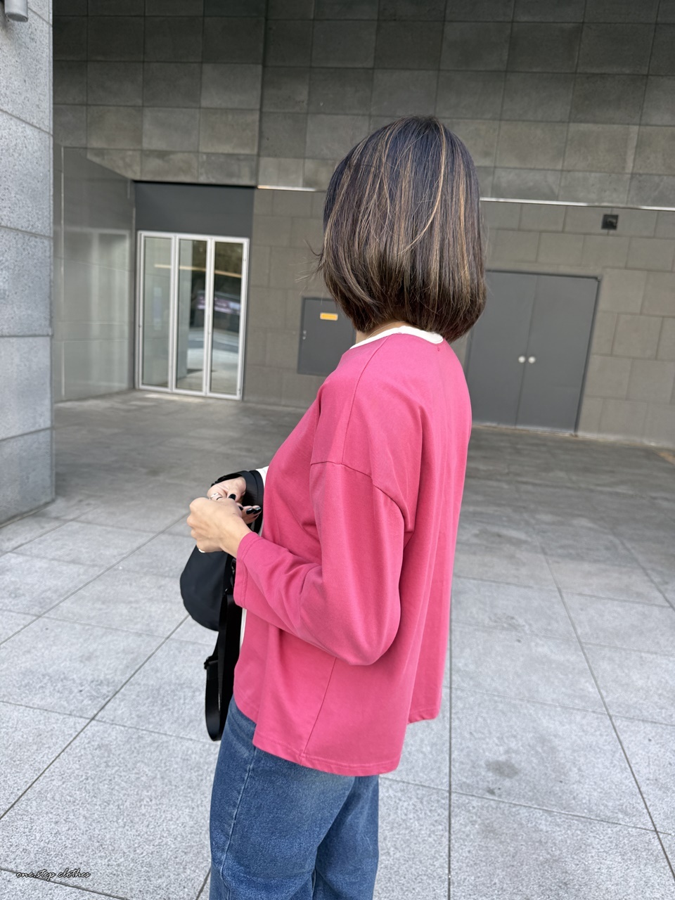 正韓領口小三角桃紅T