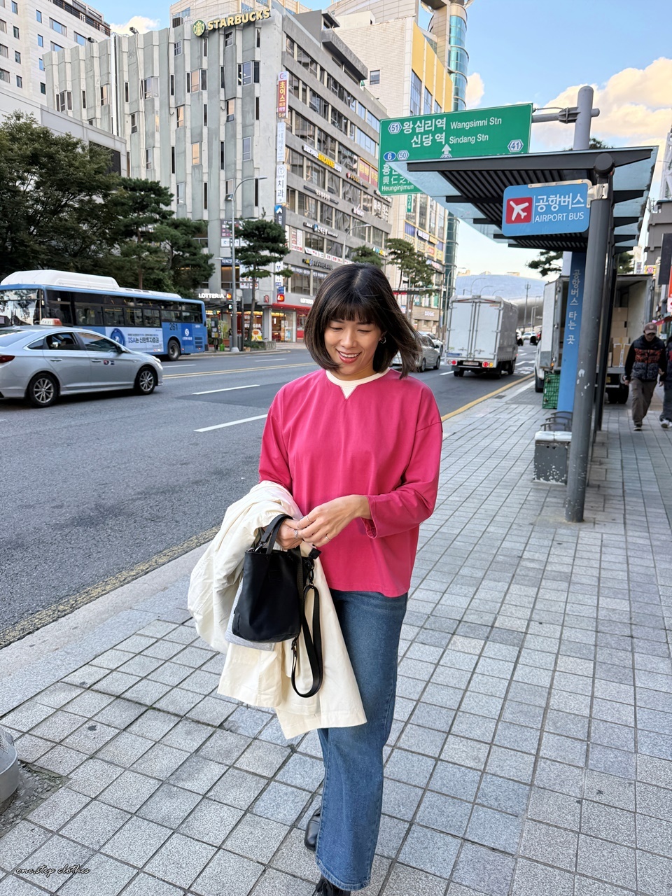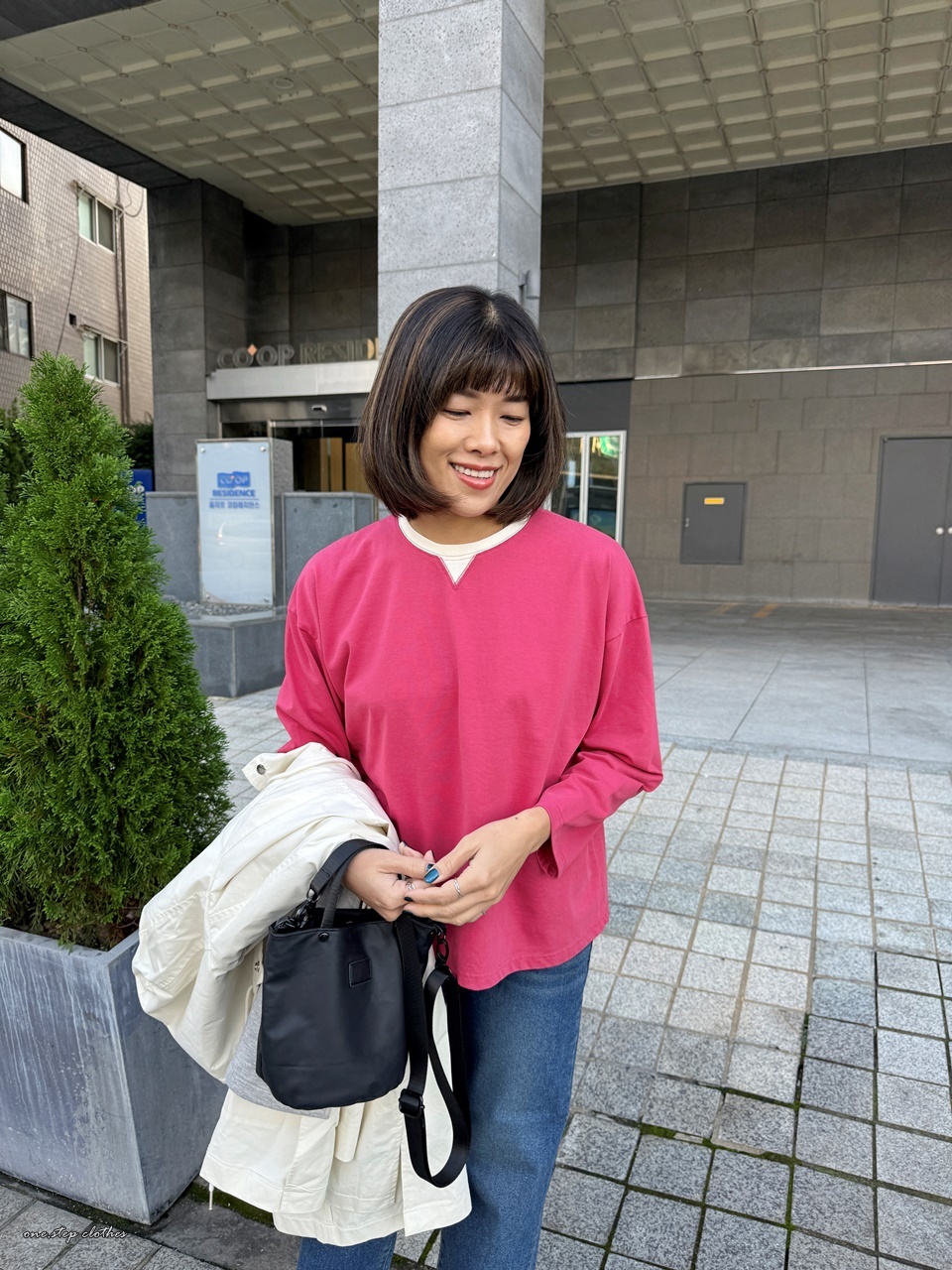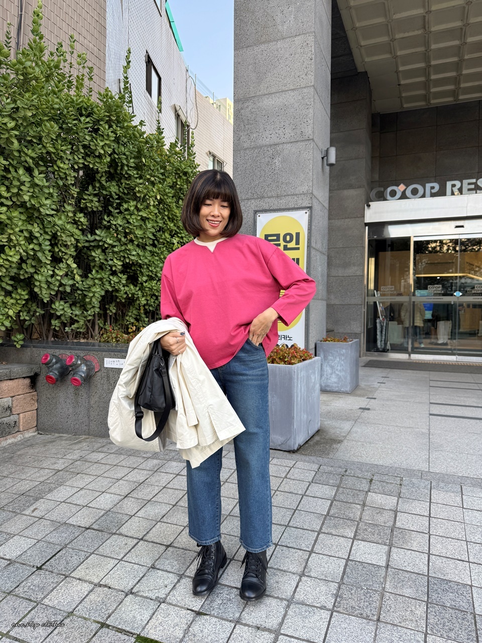 正韓領口小三角桃紅T