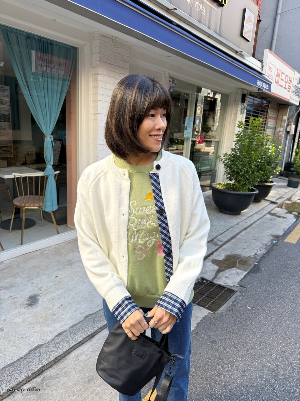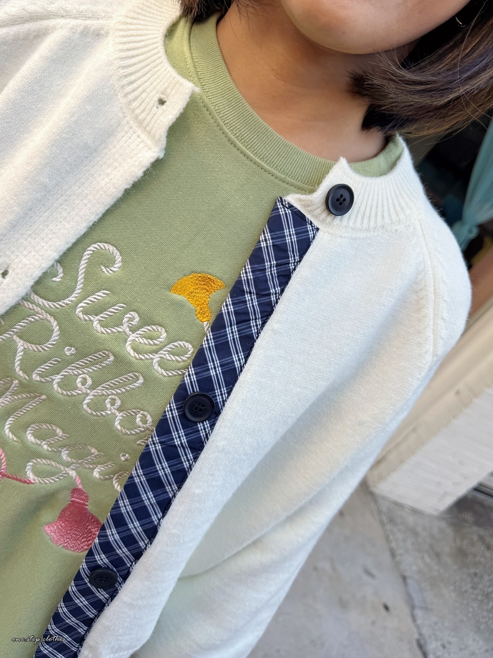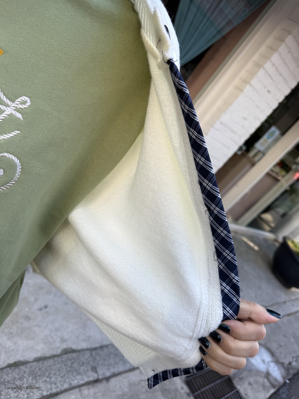 正韓手袖拼接格紋針織外