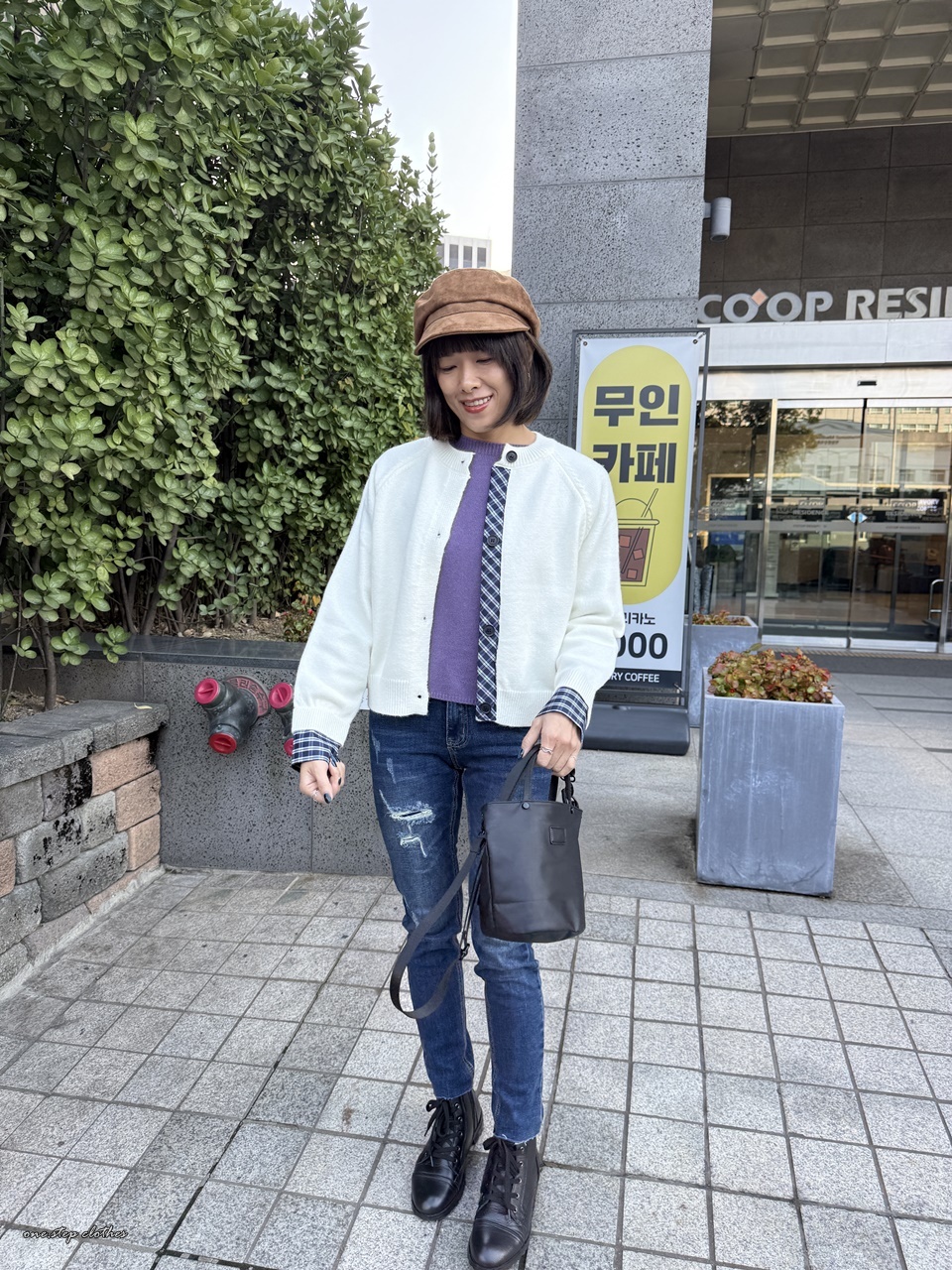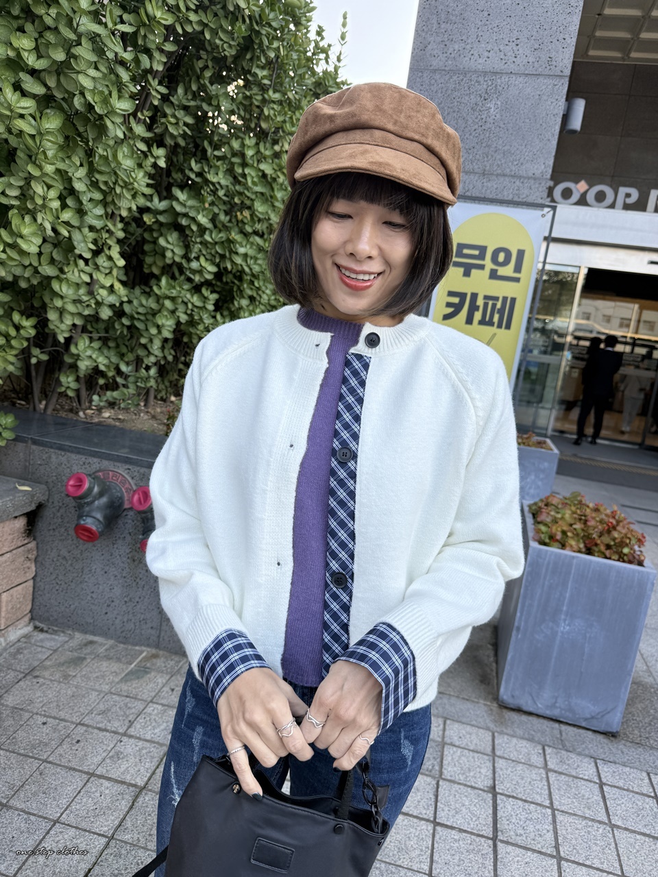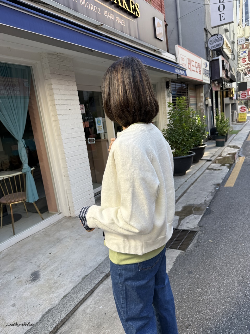 正韓手袖拼接格紋針織外