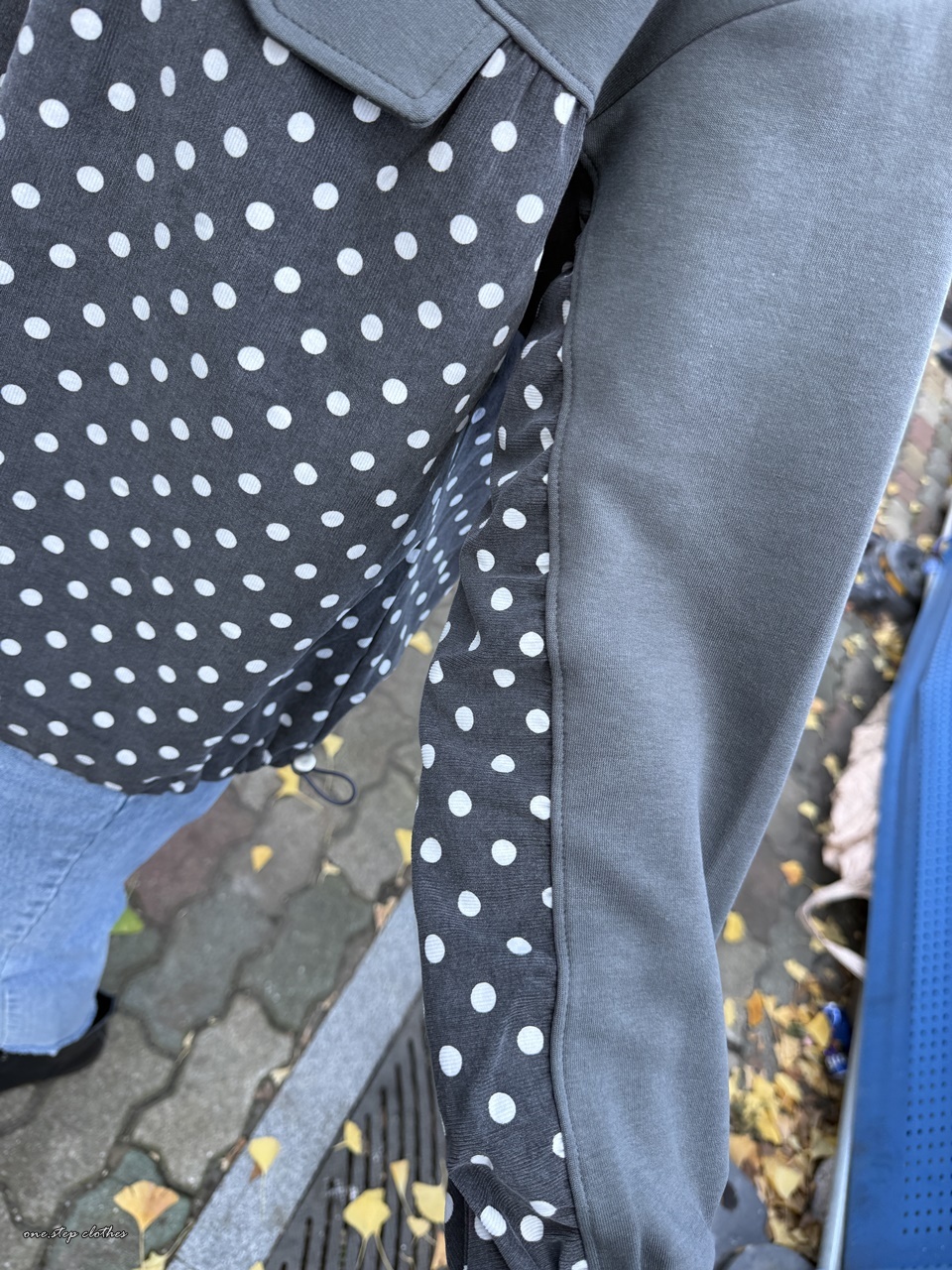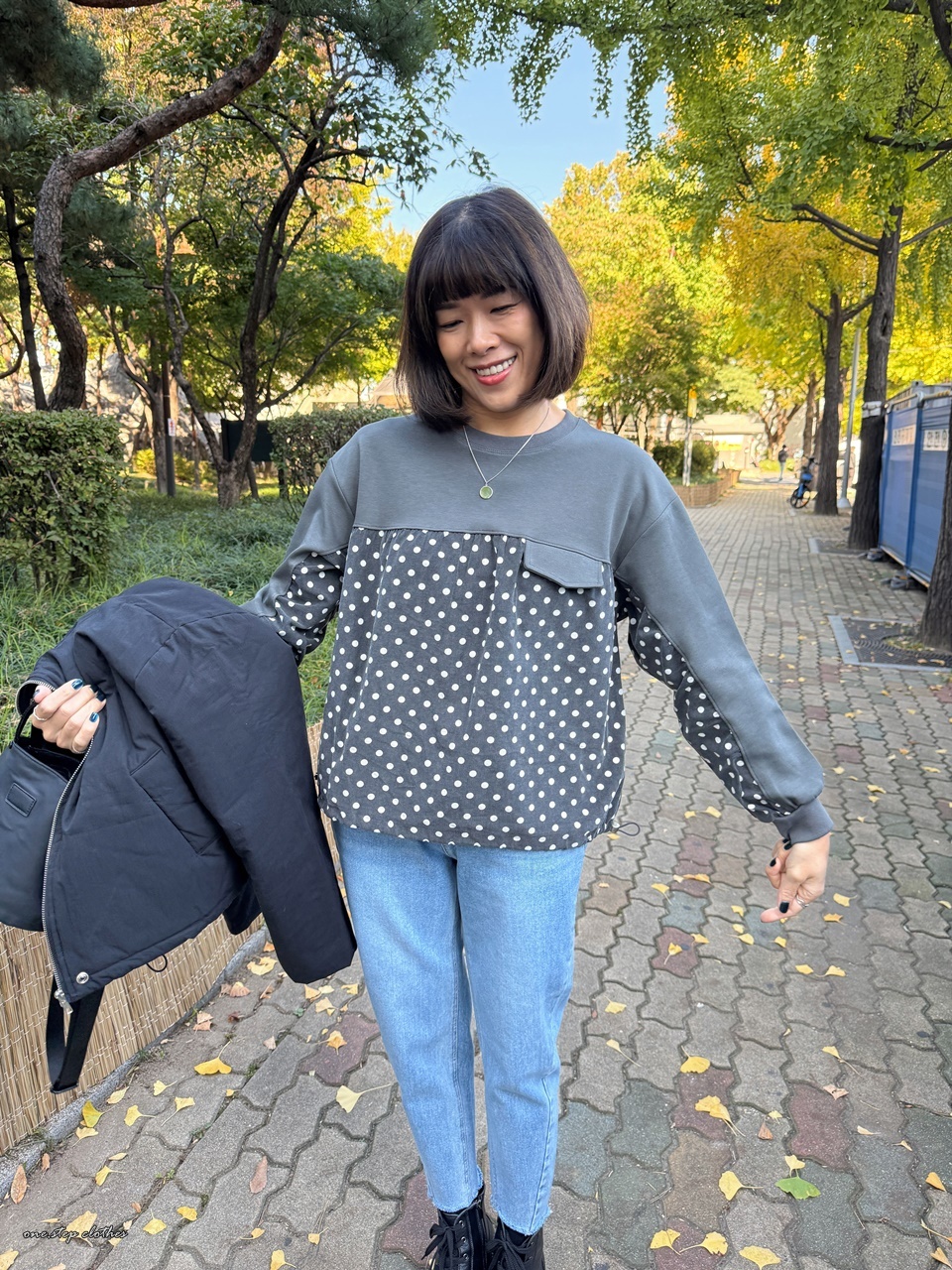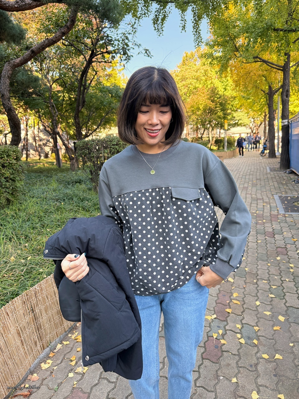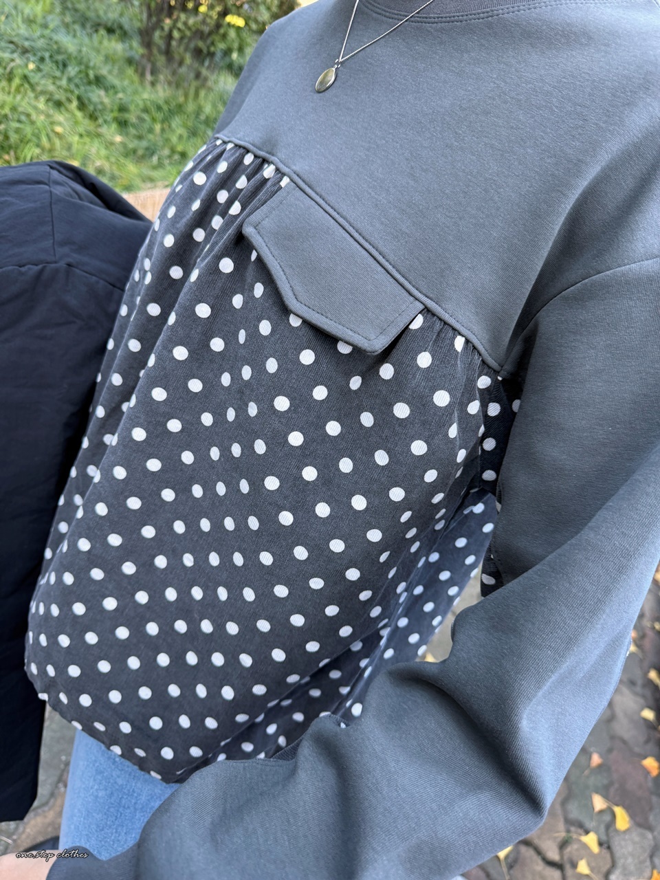 正韓俏皮燈心絨點點拼接上衣 (灰)