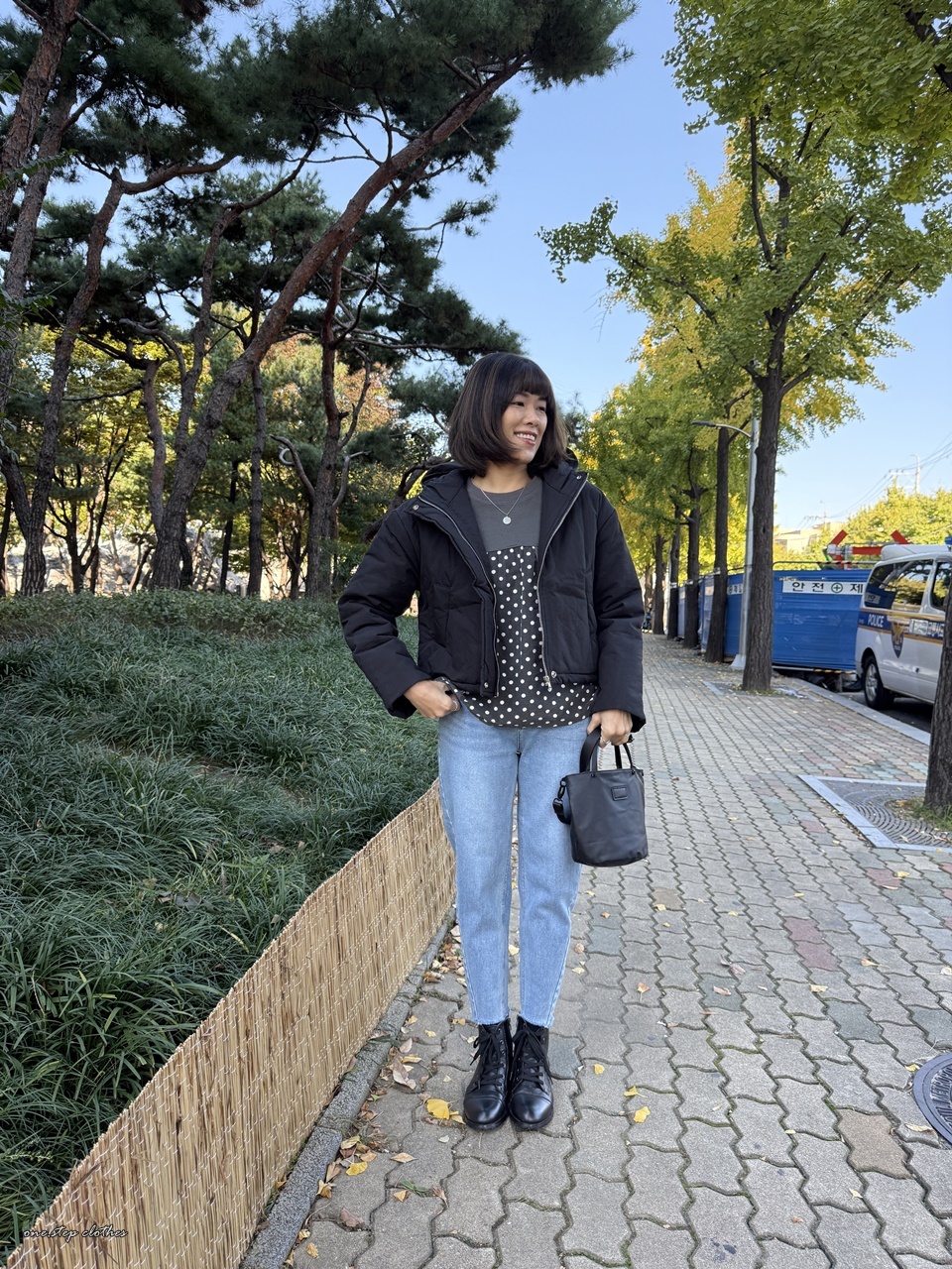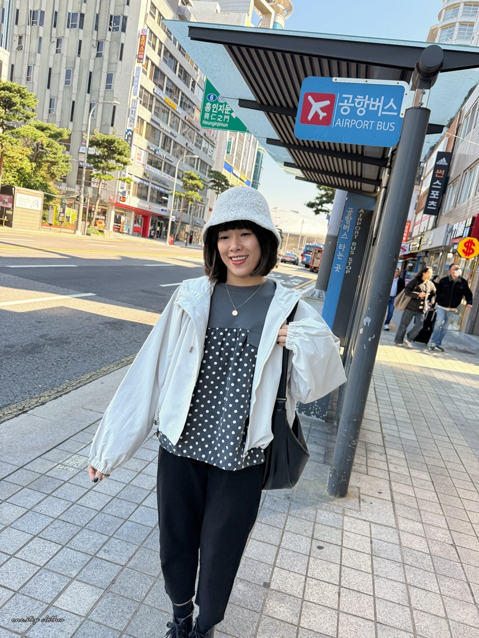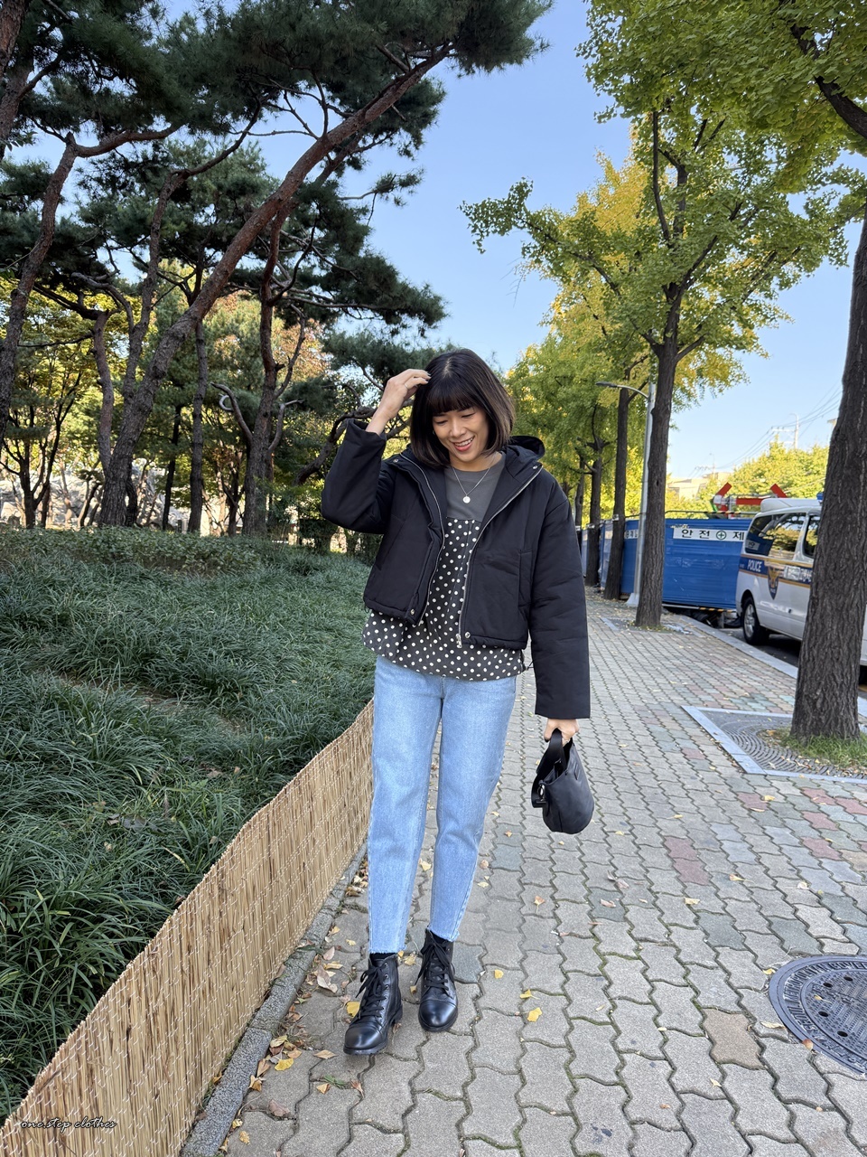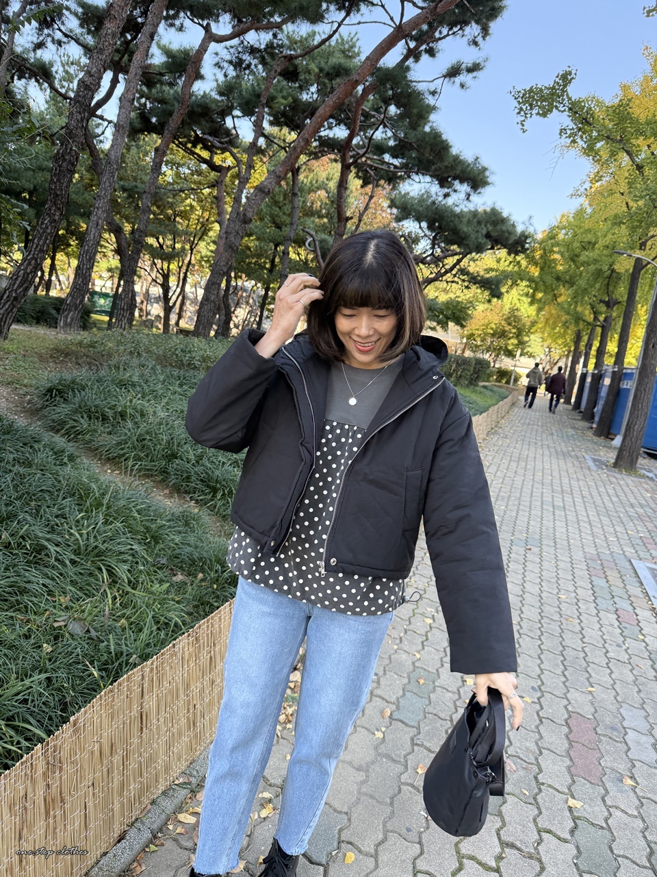 正韓俏皮燈心絨點點拼接上衣 (灰)