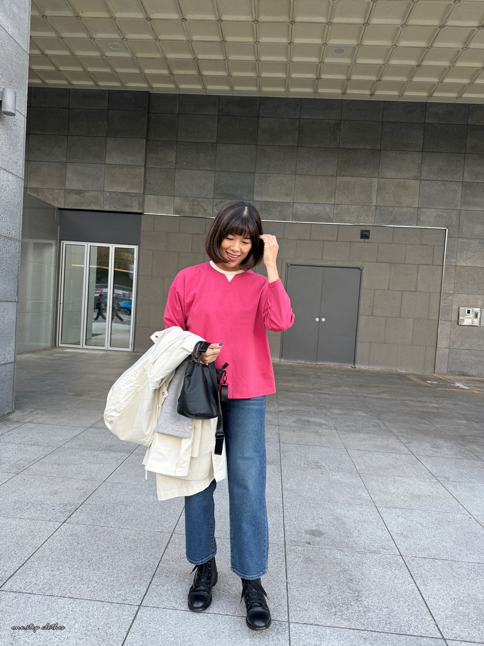 整體褲形是直筒,整個順下來