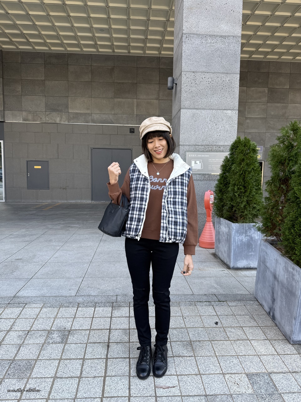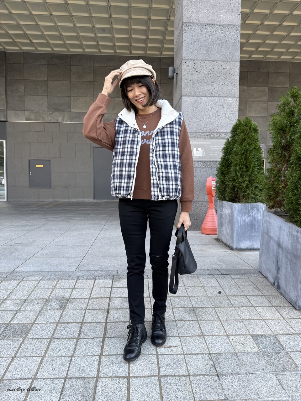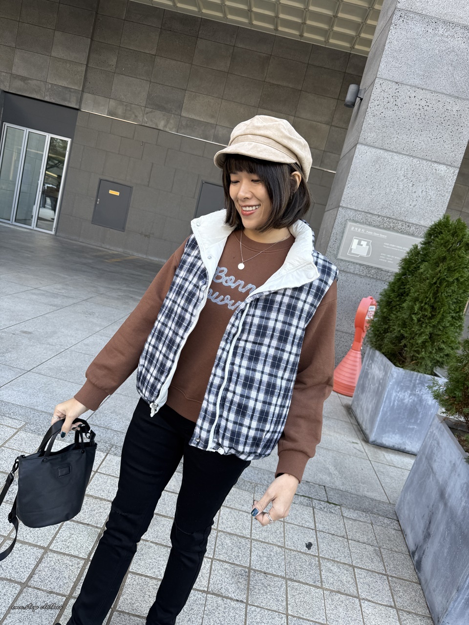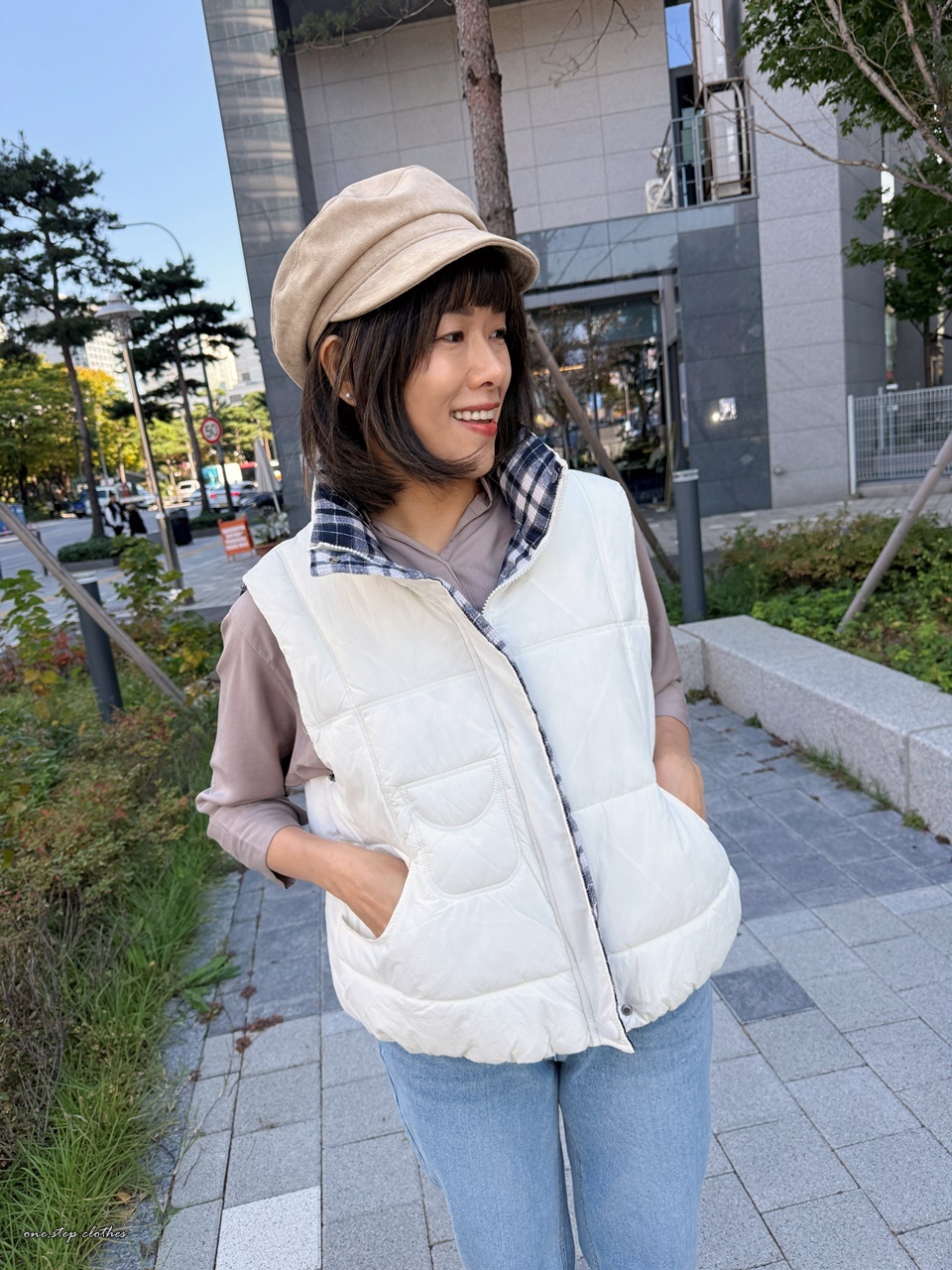 正韓雙面穿格紋鋪棉背心