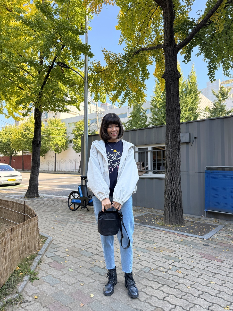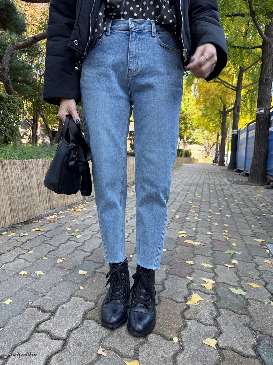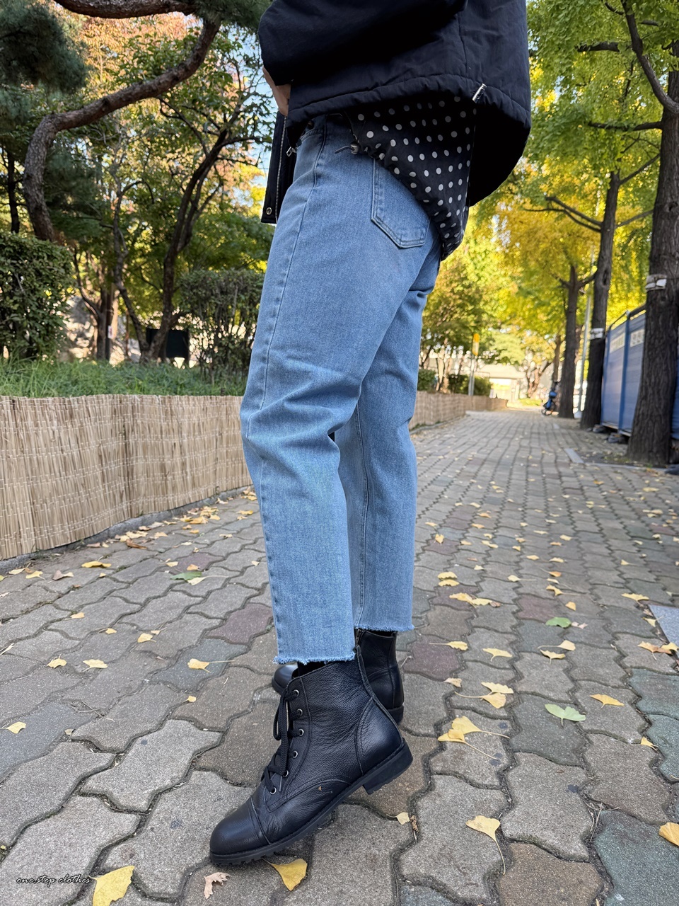 正韓小星霧藍斜車線鬆緊直筒褲