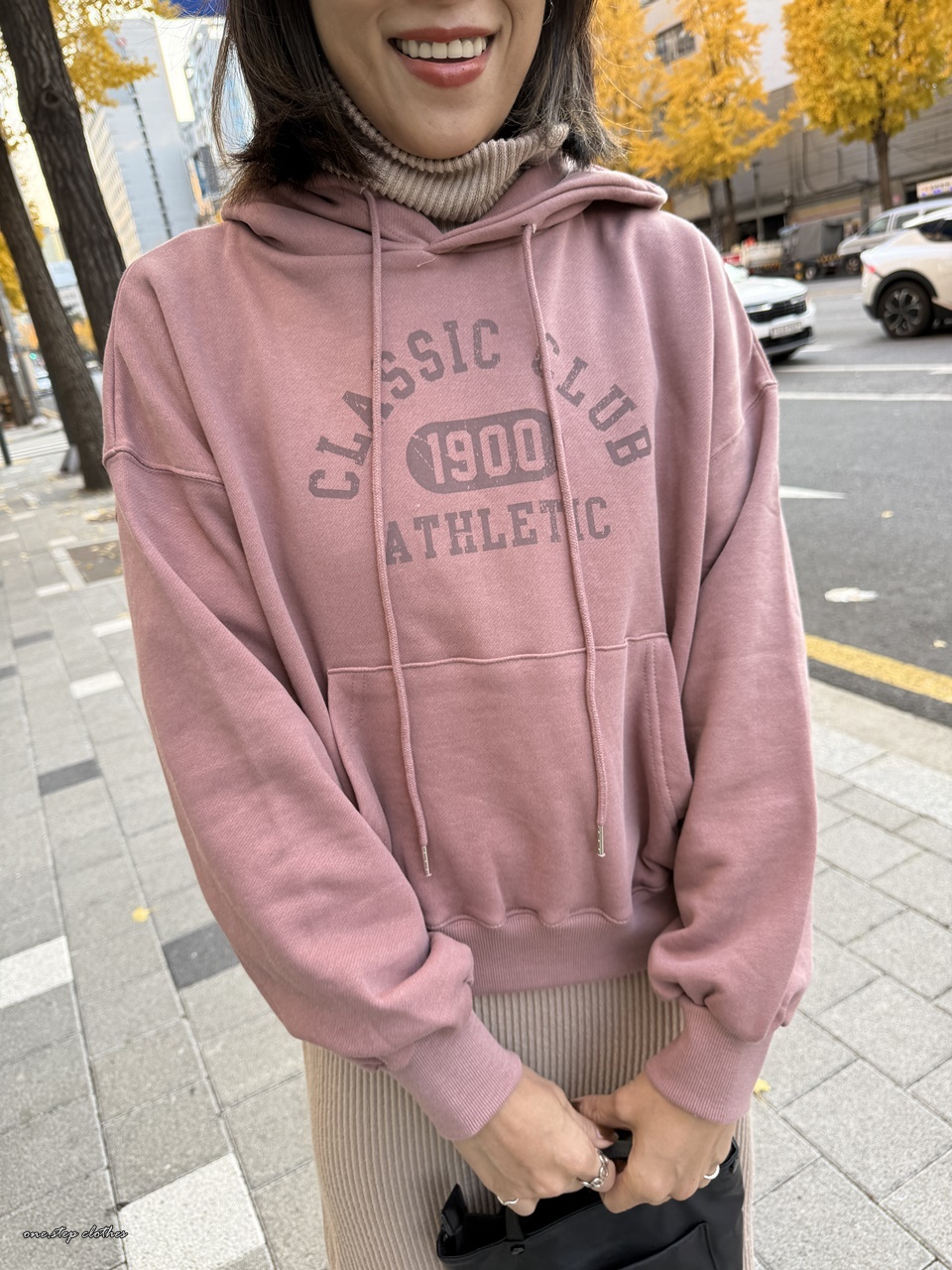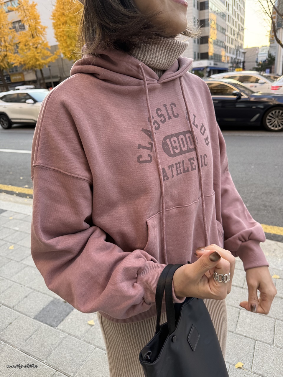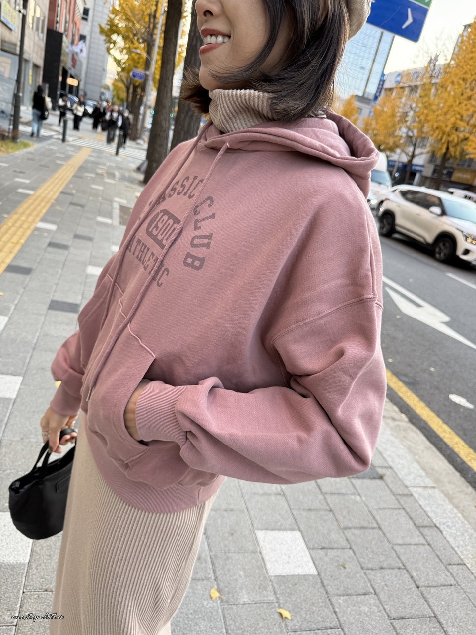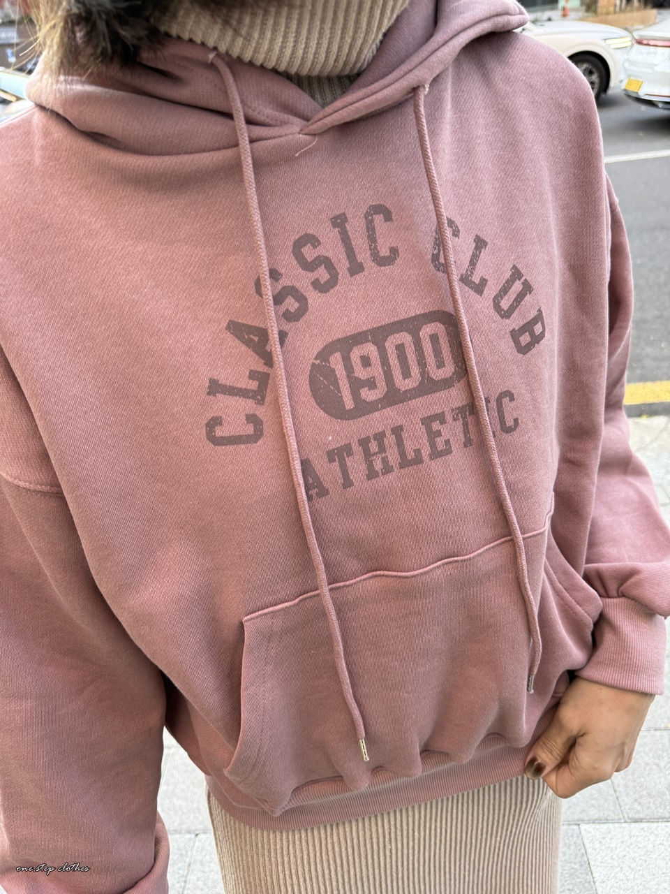 正韓玫瑰霧粉休閒刷毛帽T