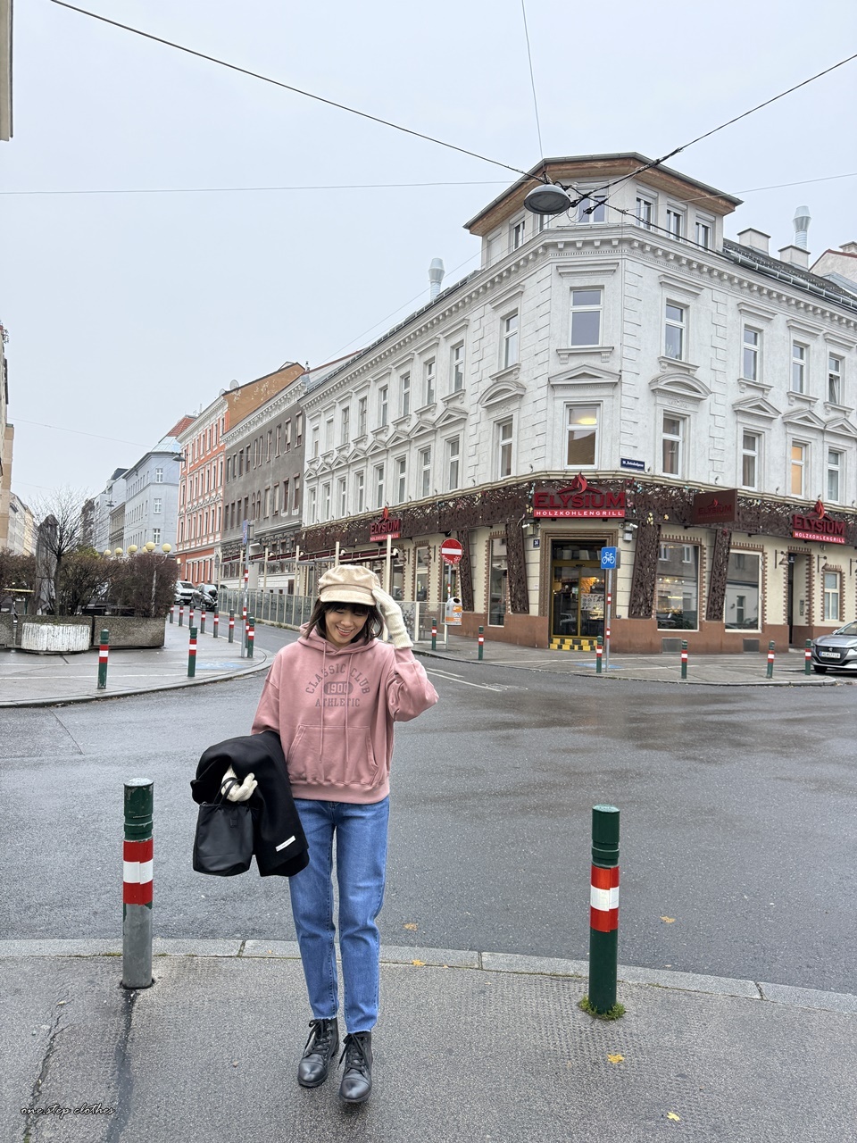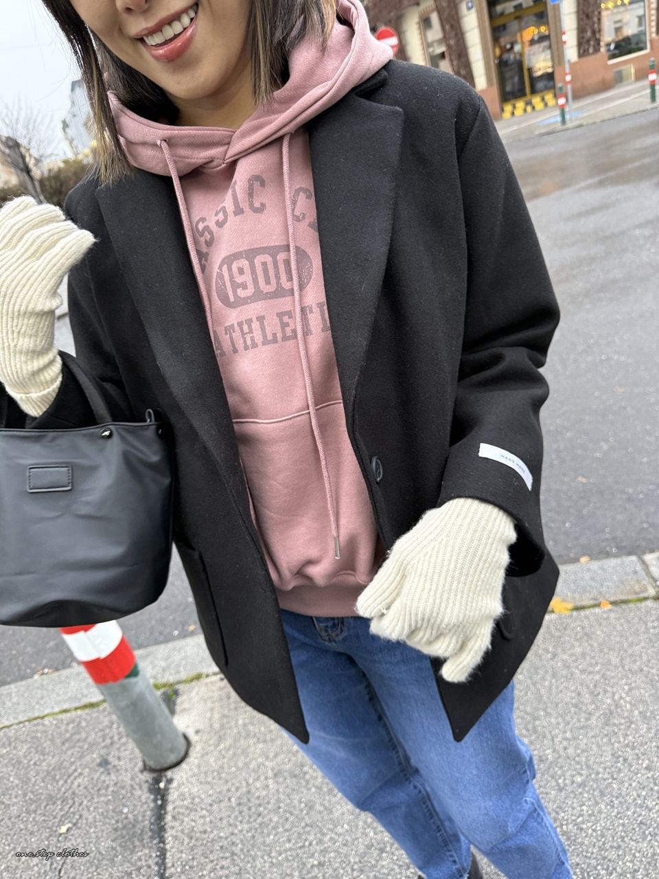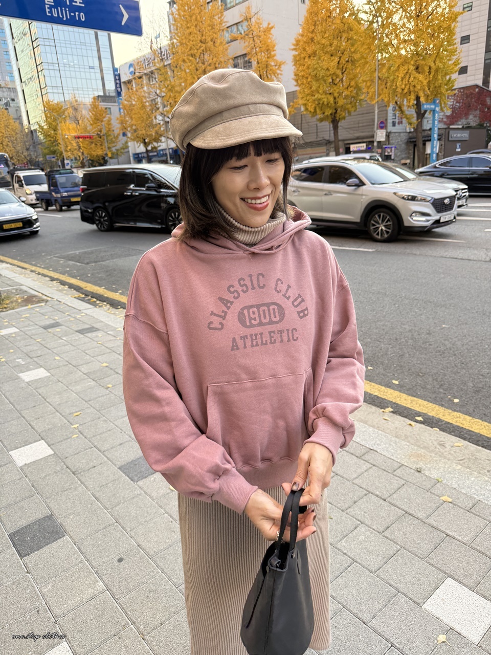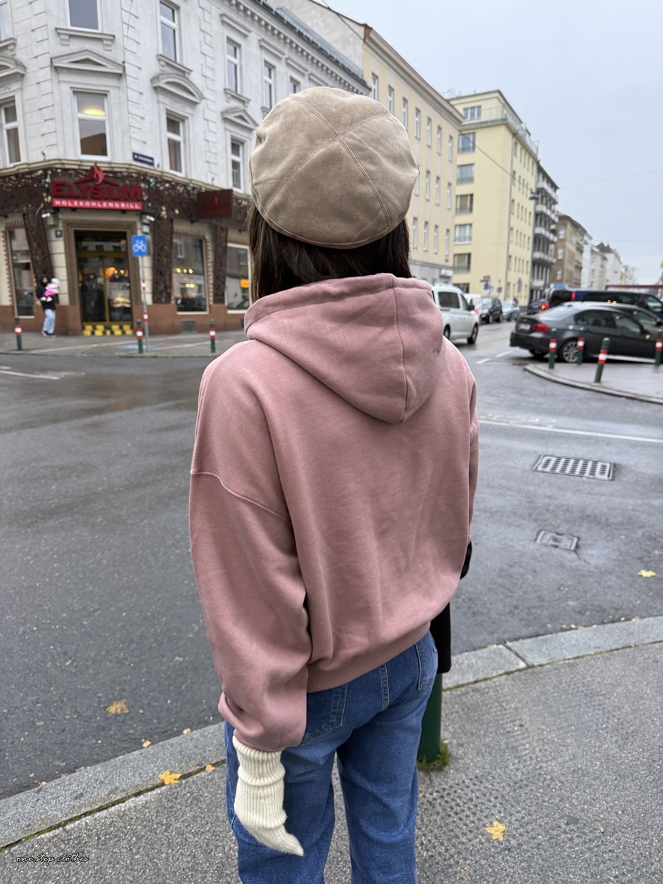 正韓玫瑰霧粉休閒刷毛帽T