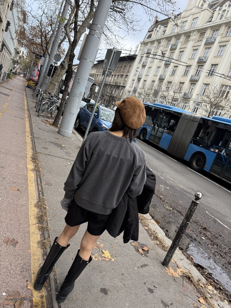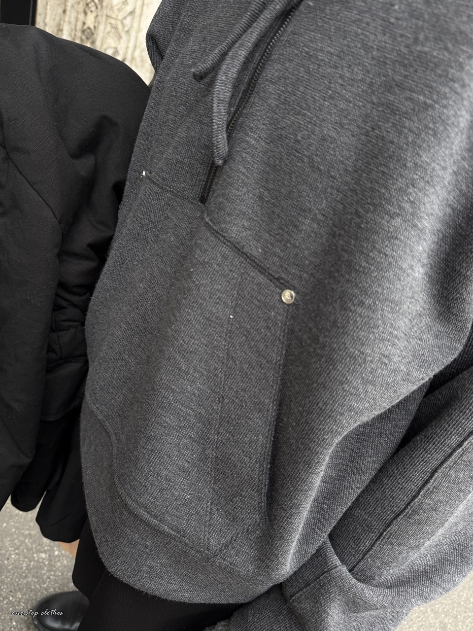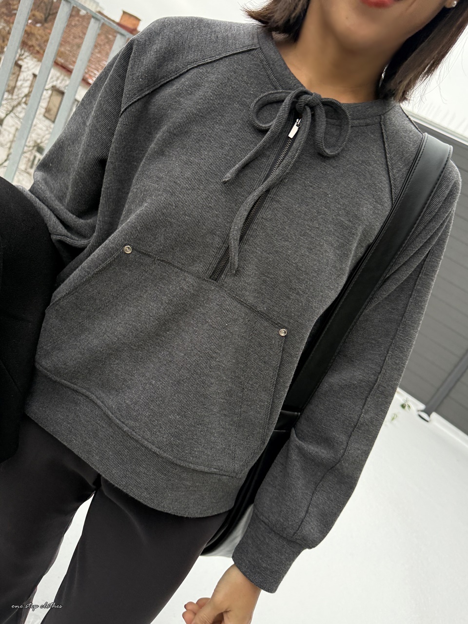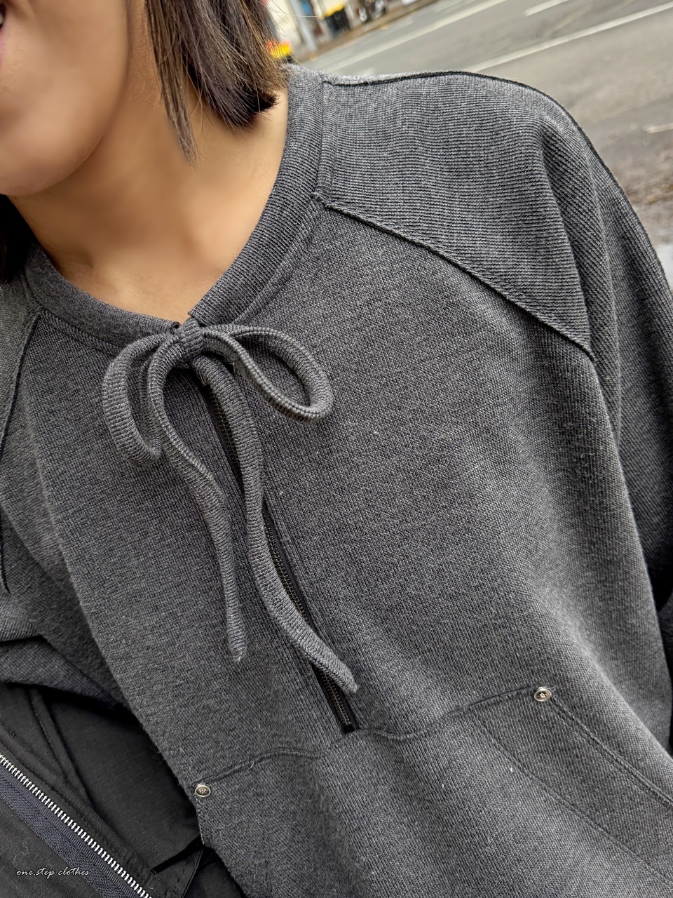 正韓墨灰綁帶設計口袋上衣