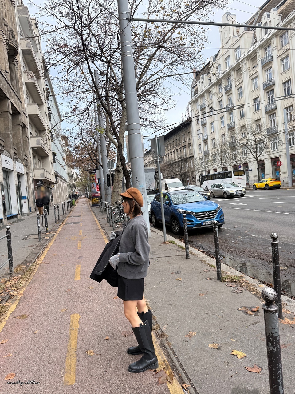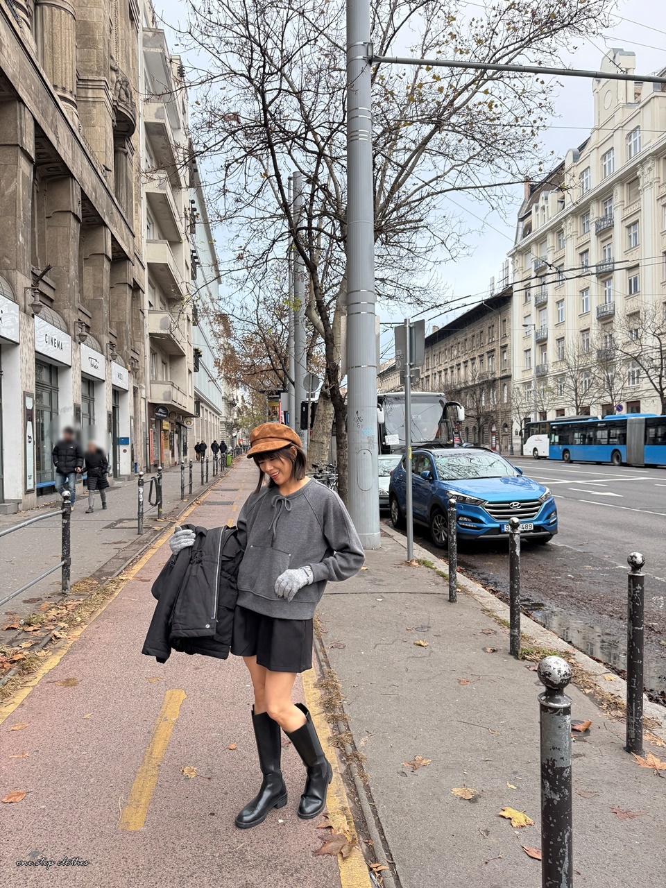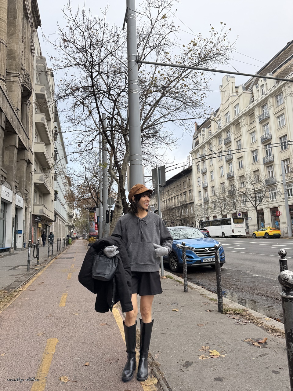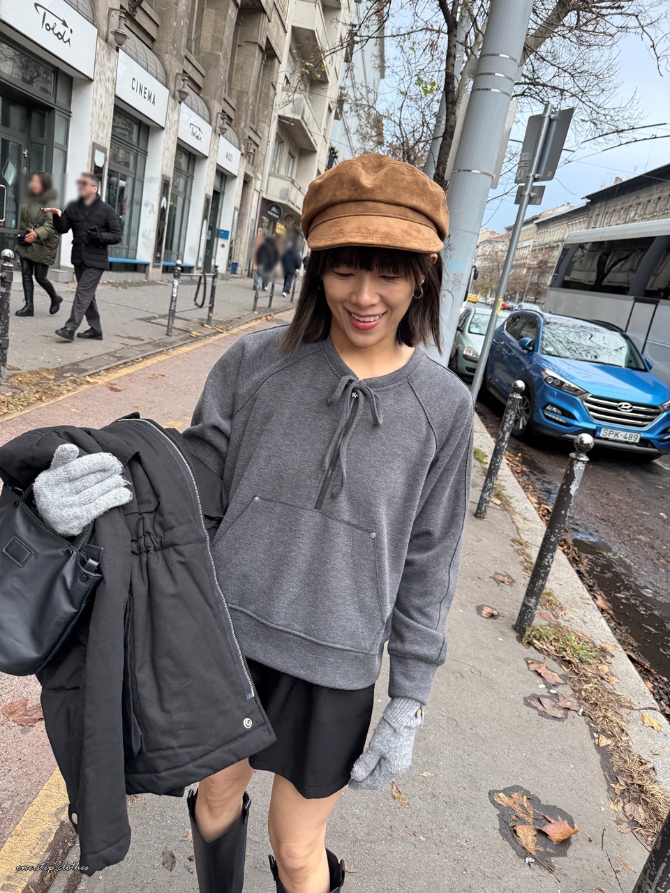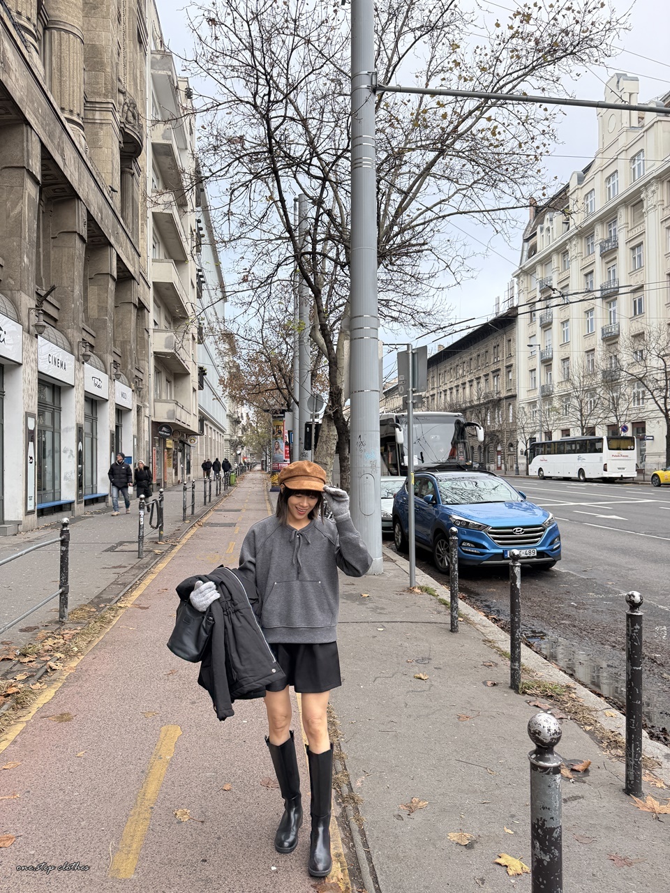 正韓墨灰綁帶設計口袋上衣