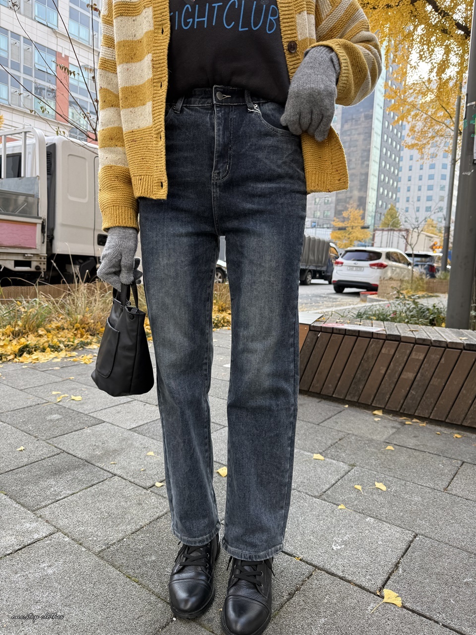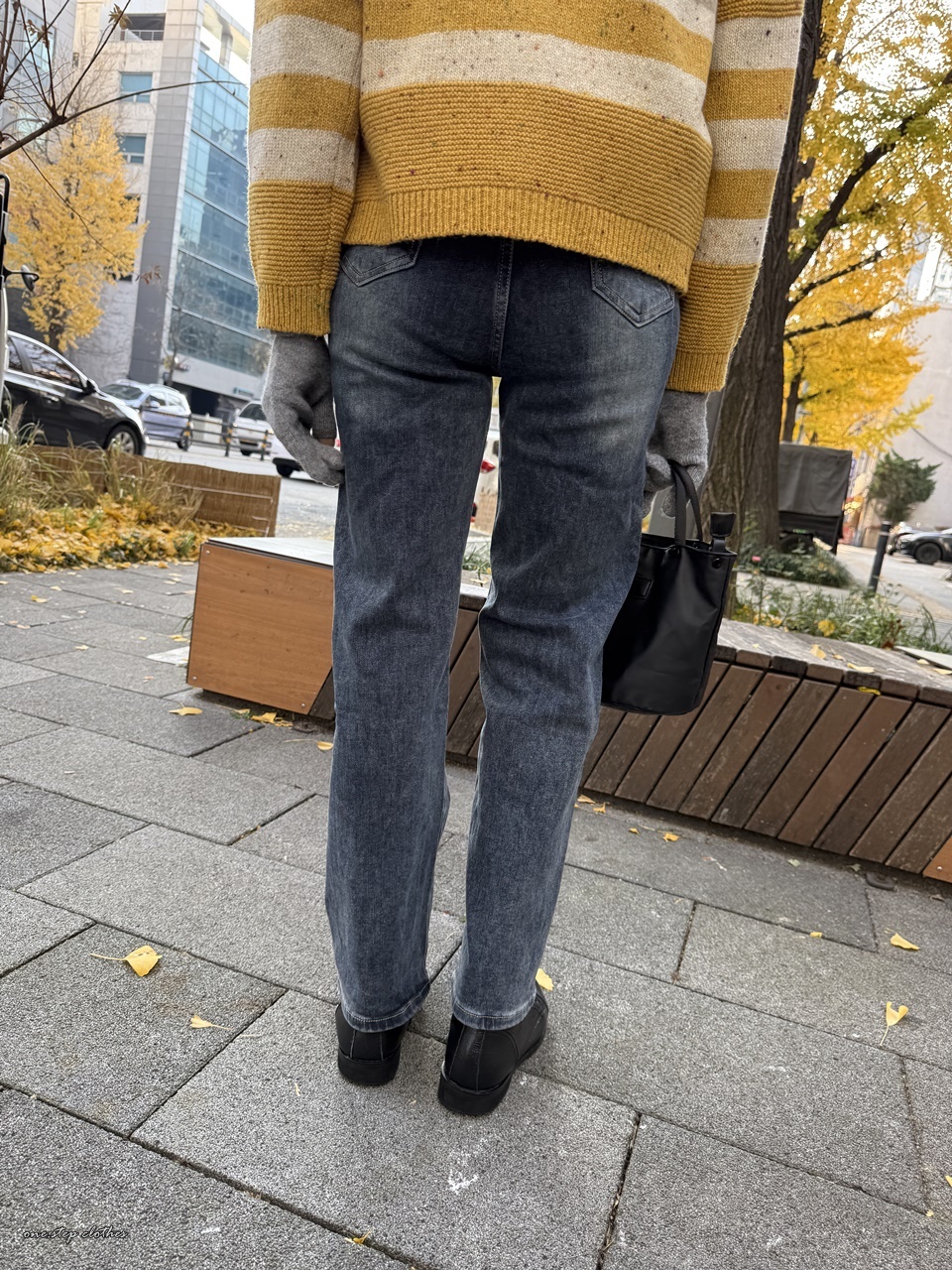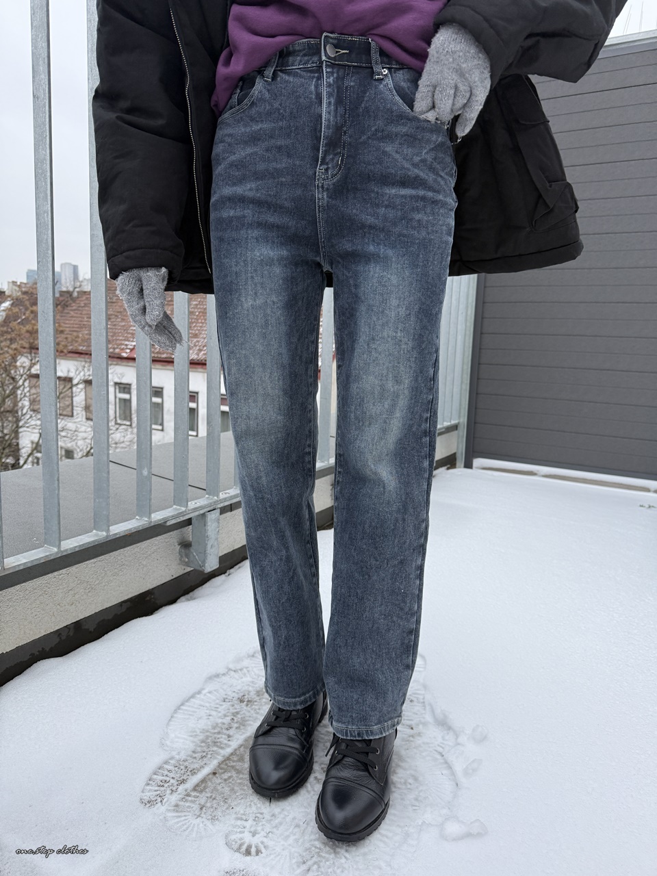 正韓好比例長腿內刷毛鬆緊牛仔褲