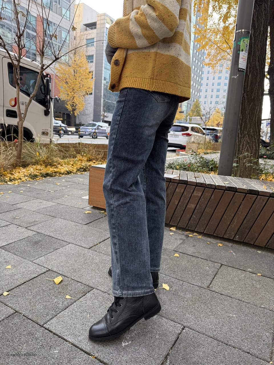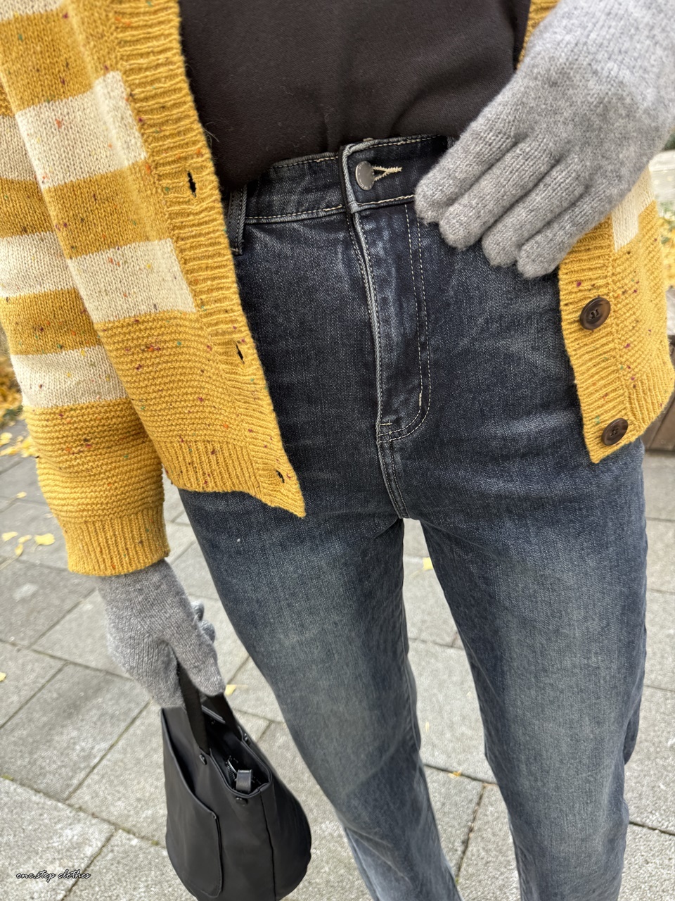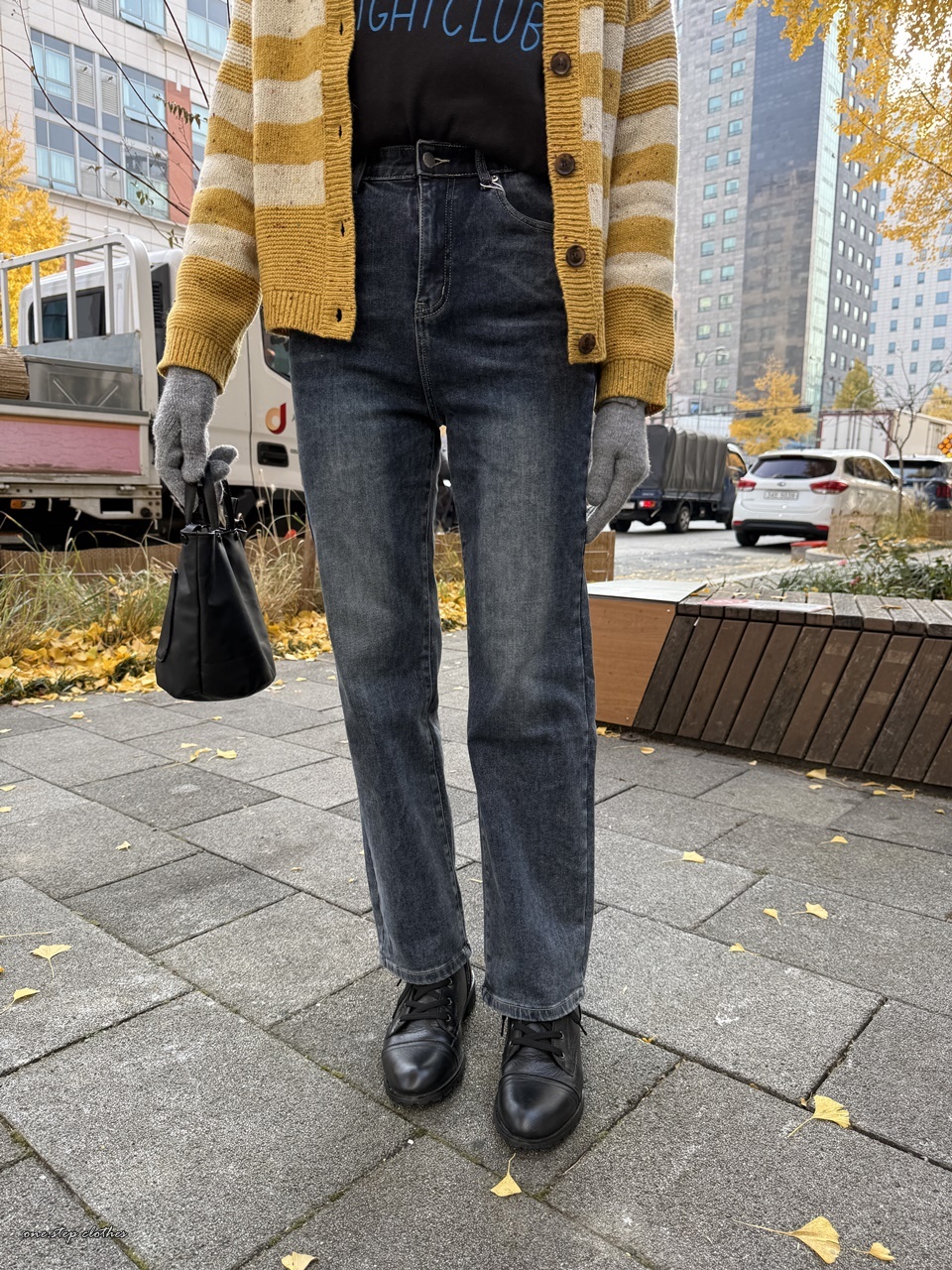 正韓好比例長腿內刷毛鬆緊牛仔褲