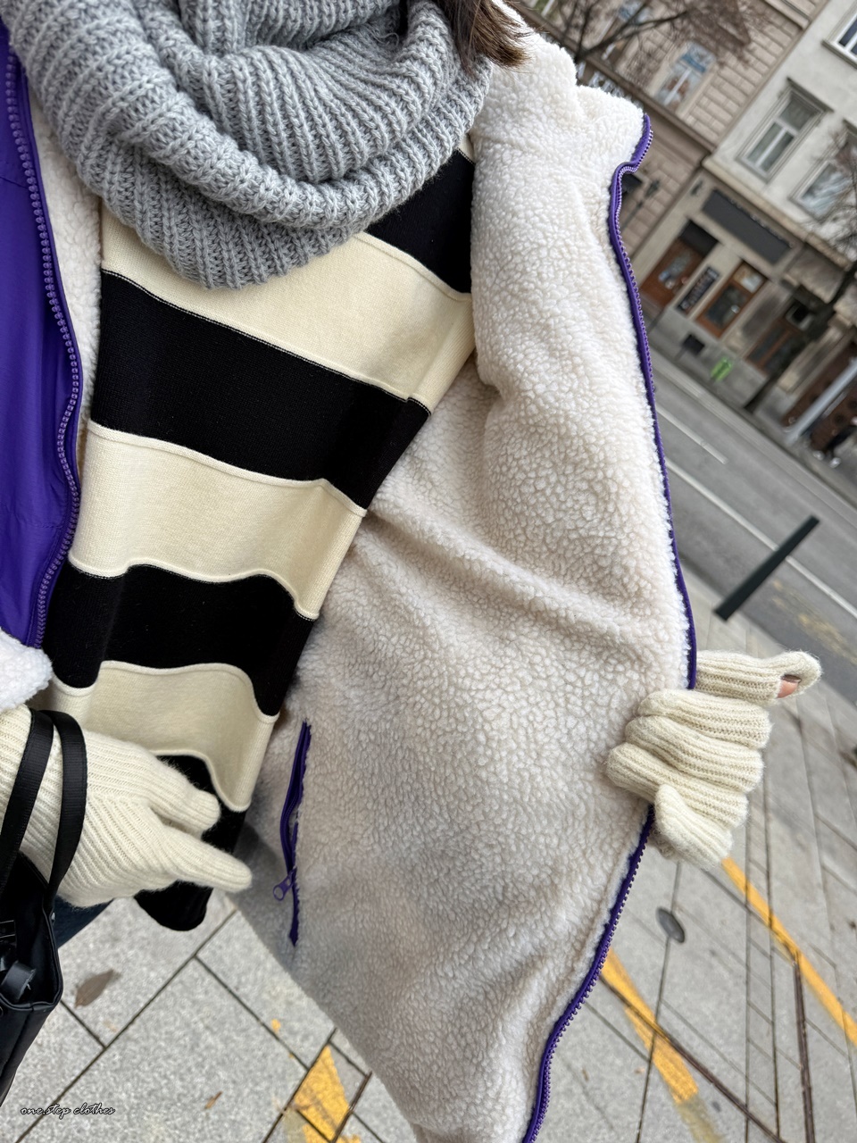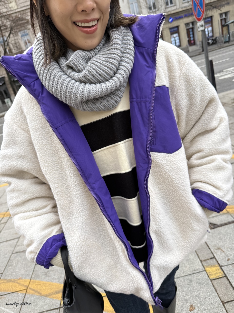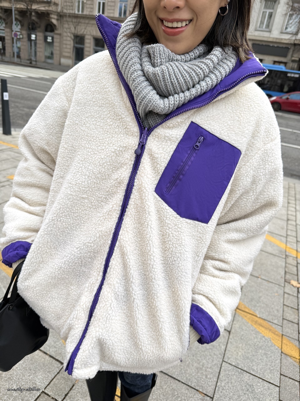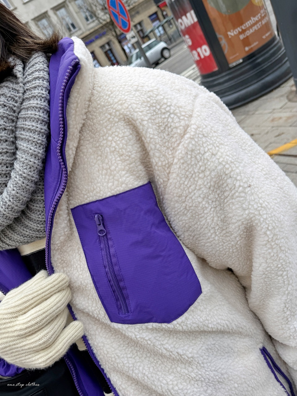 正韓跳色保暖雙面穿QQ毛CP外 (紫)