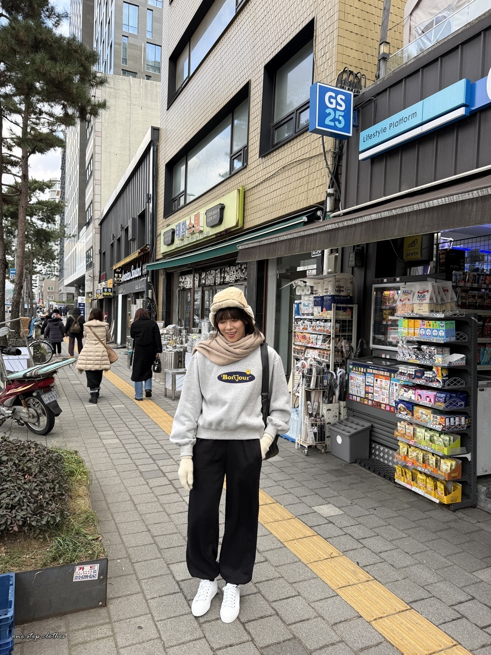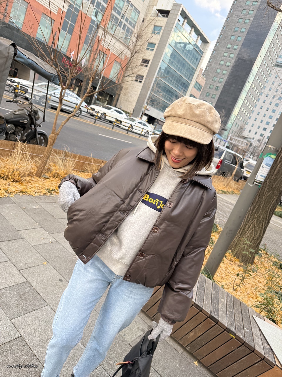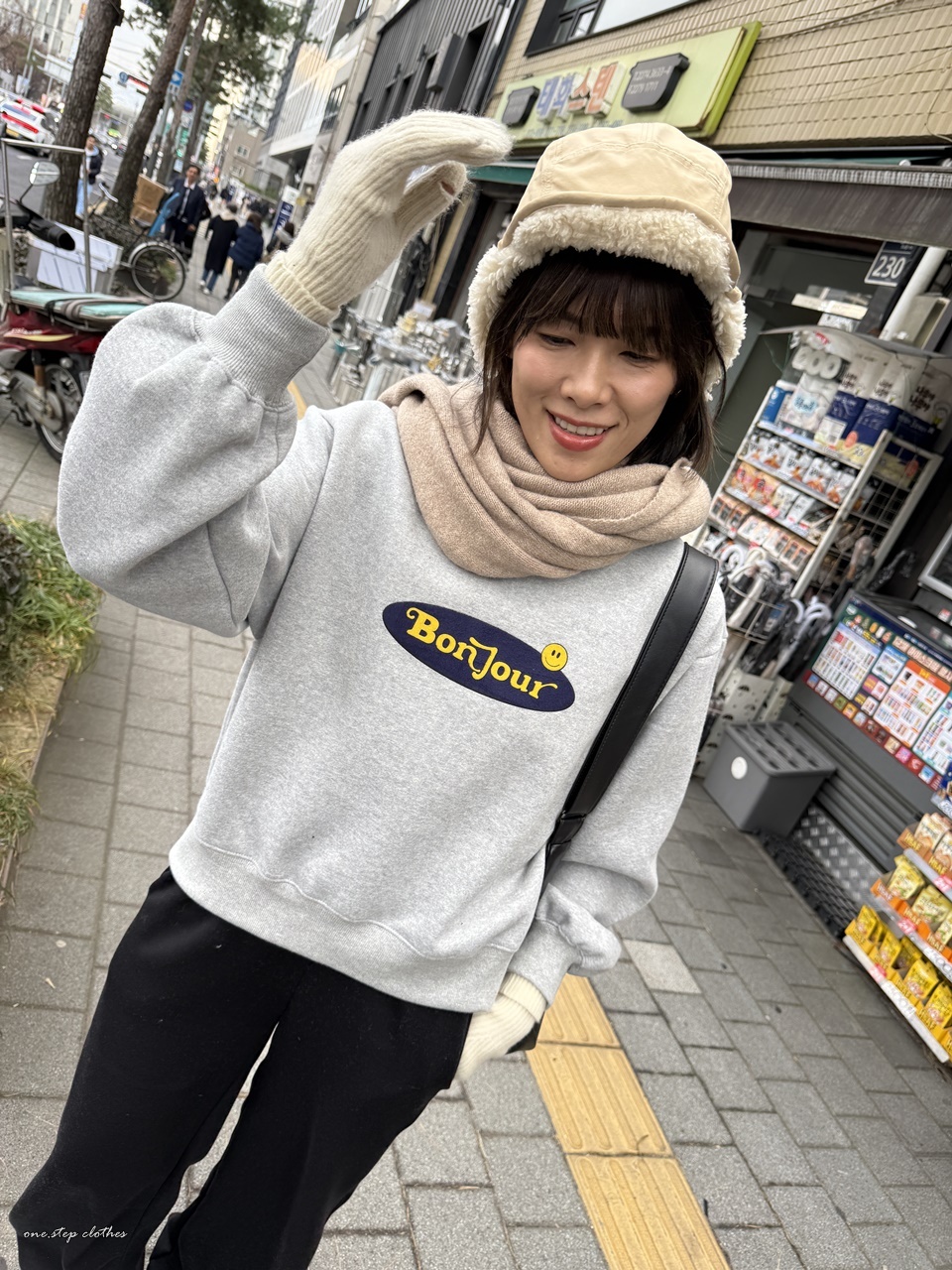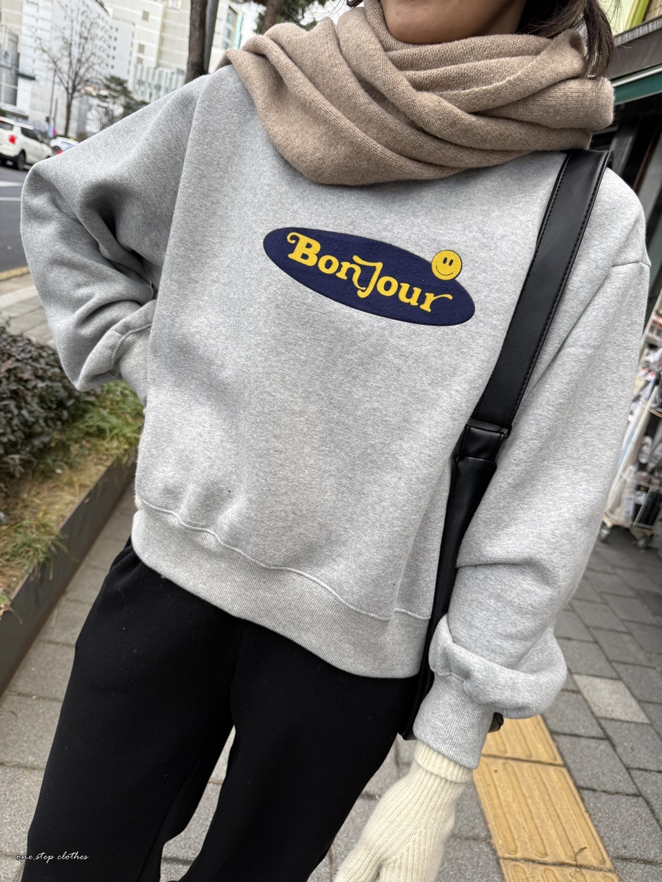 正韓bonjour笑臉刷毛大學T