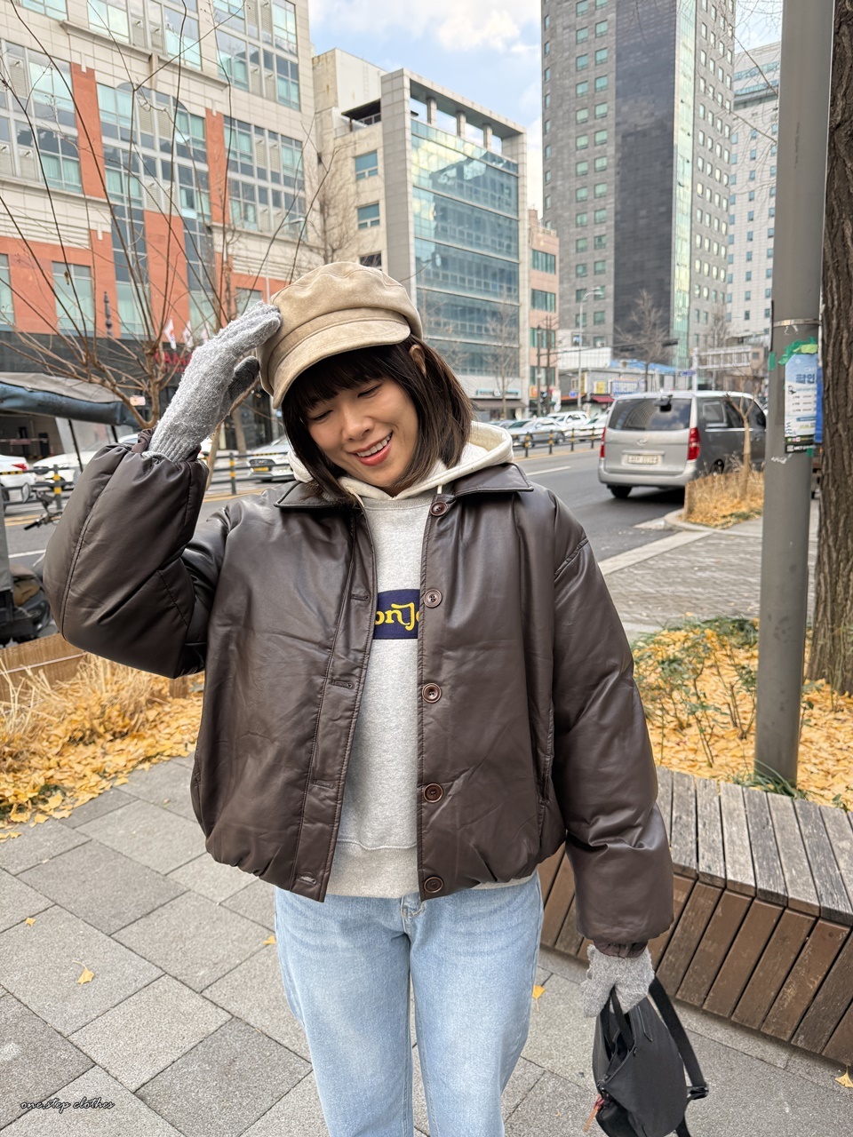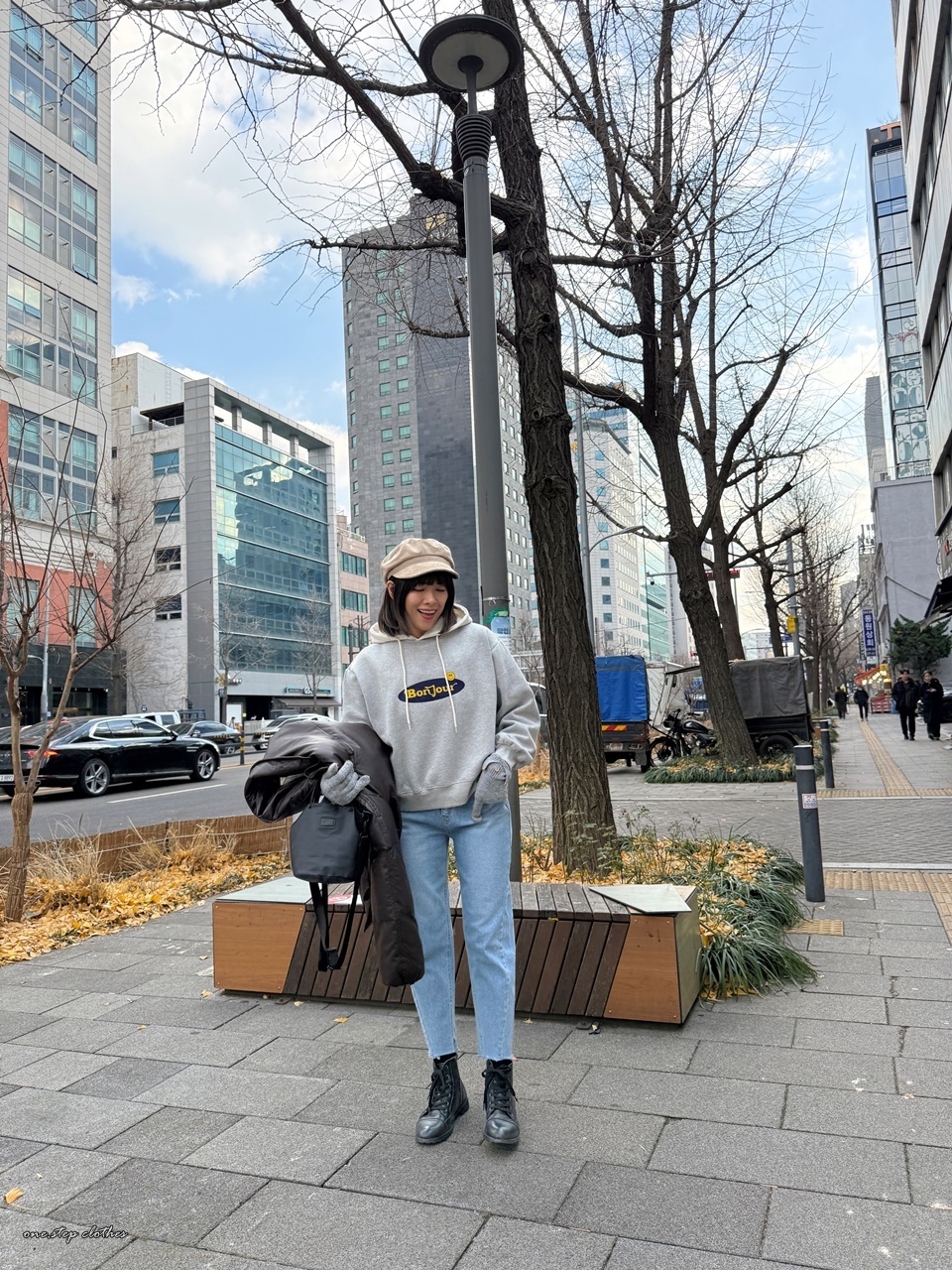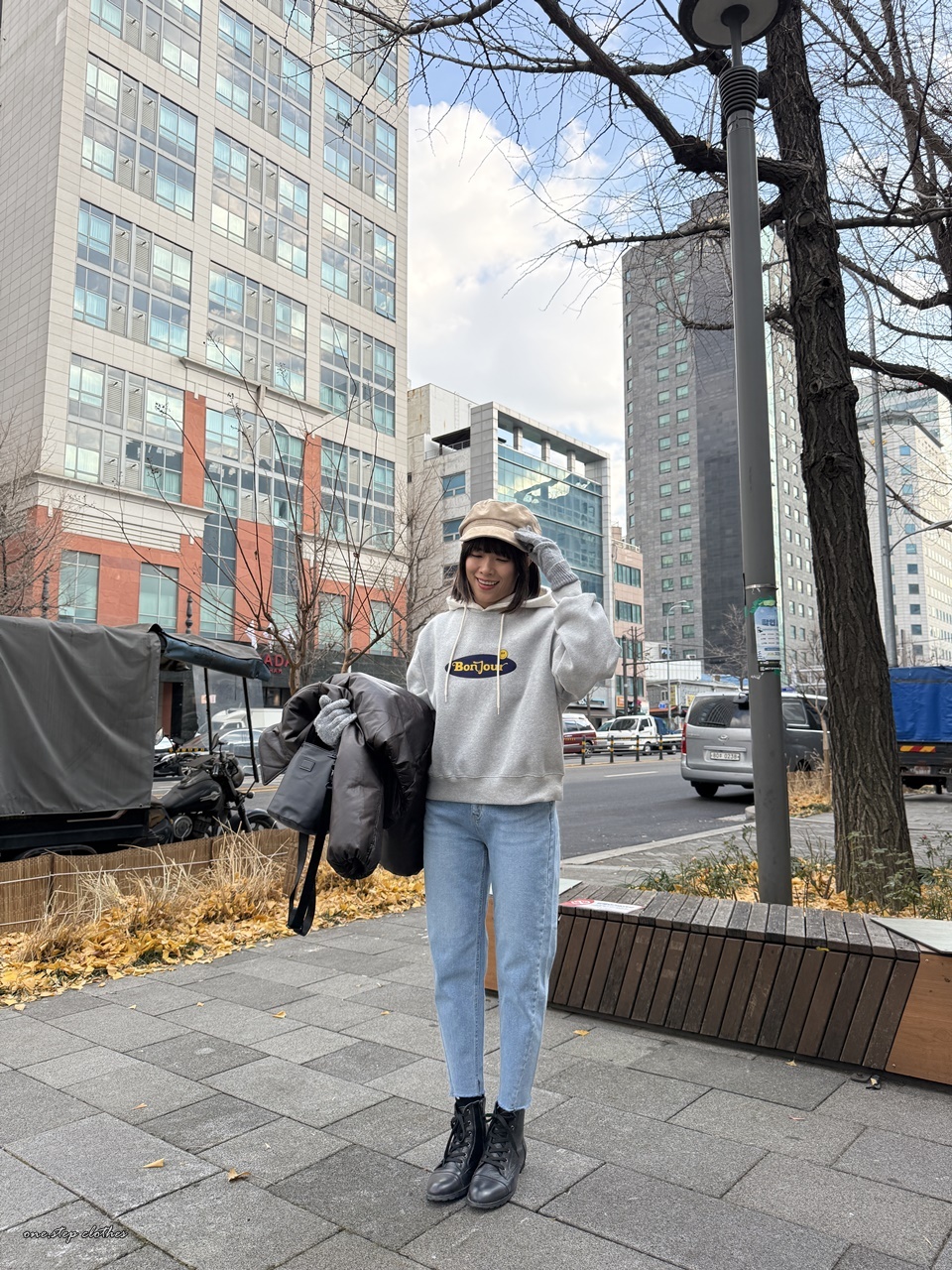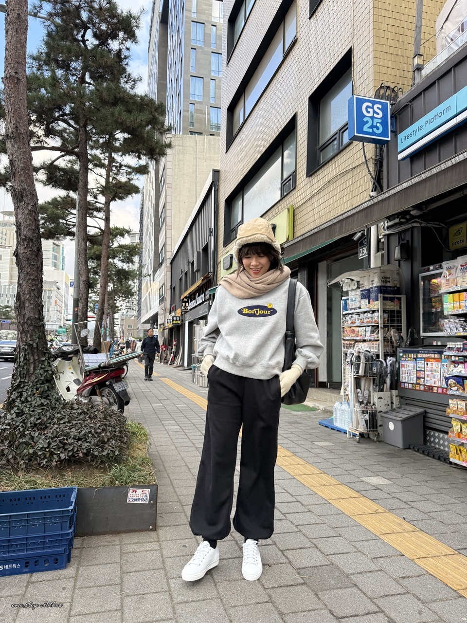正韓bonjour笑臉刷毛大學T