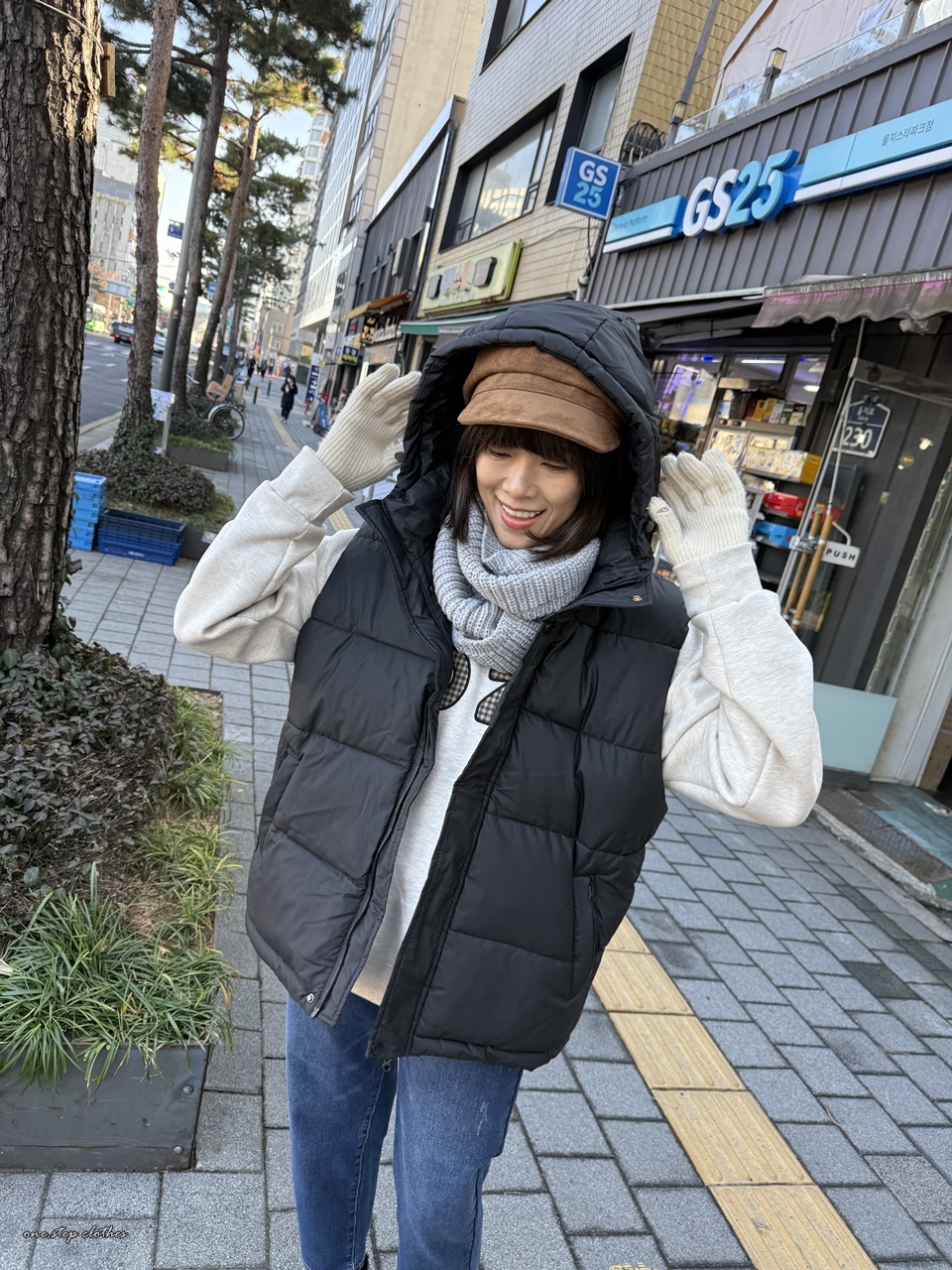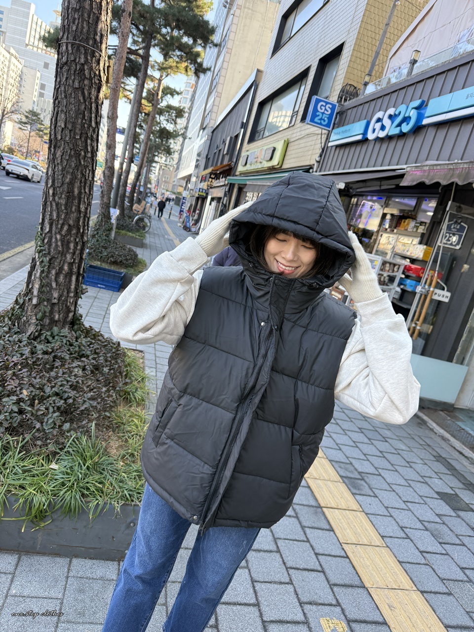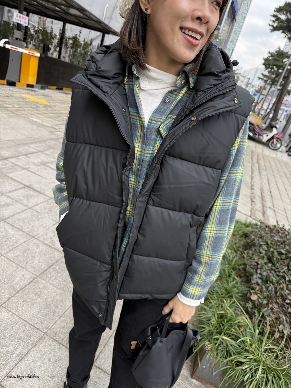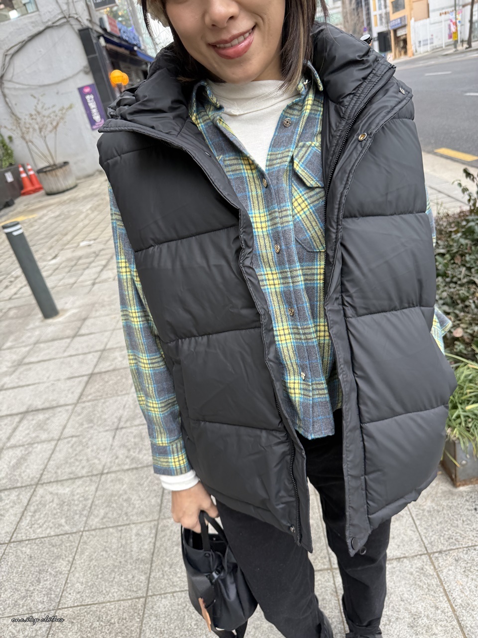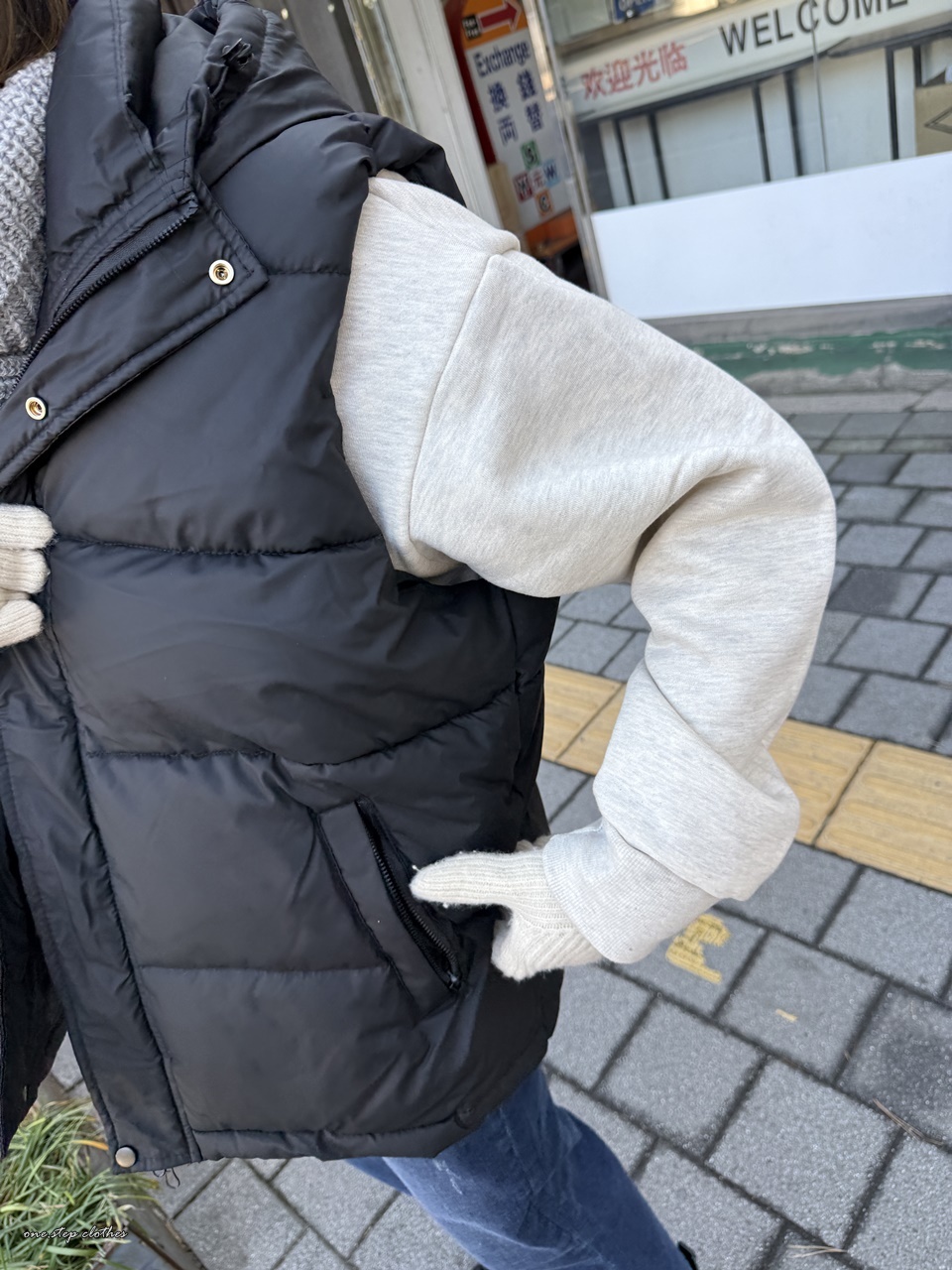 正韓低調保暖拉鍊鋪釘釦背心 (黑)
