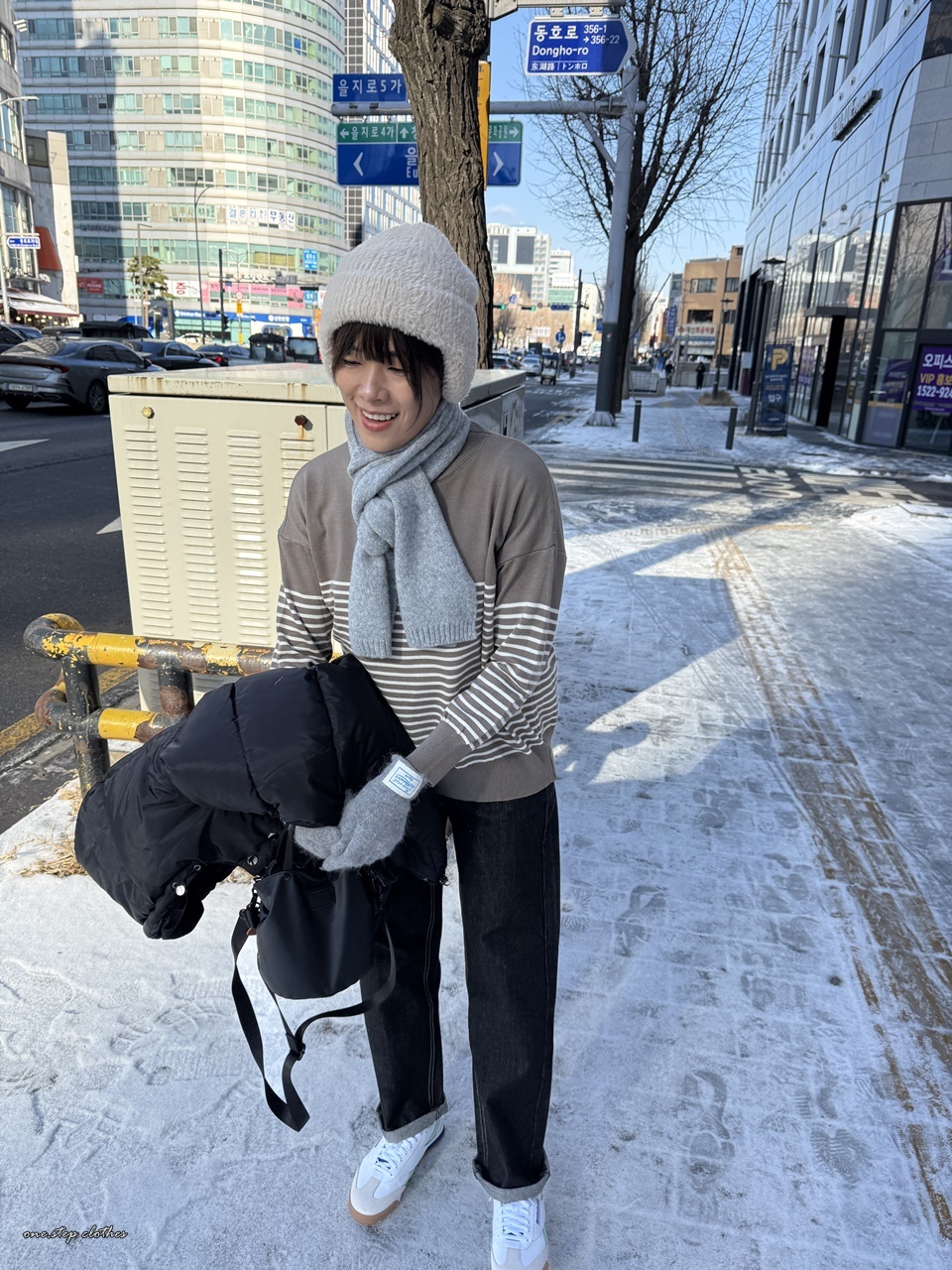 正韓簡約橫條針織上衣 (可可)