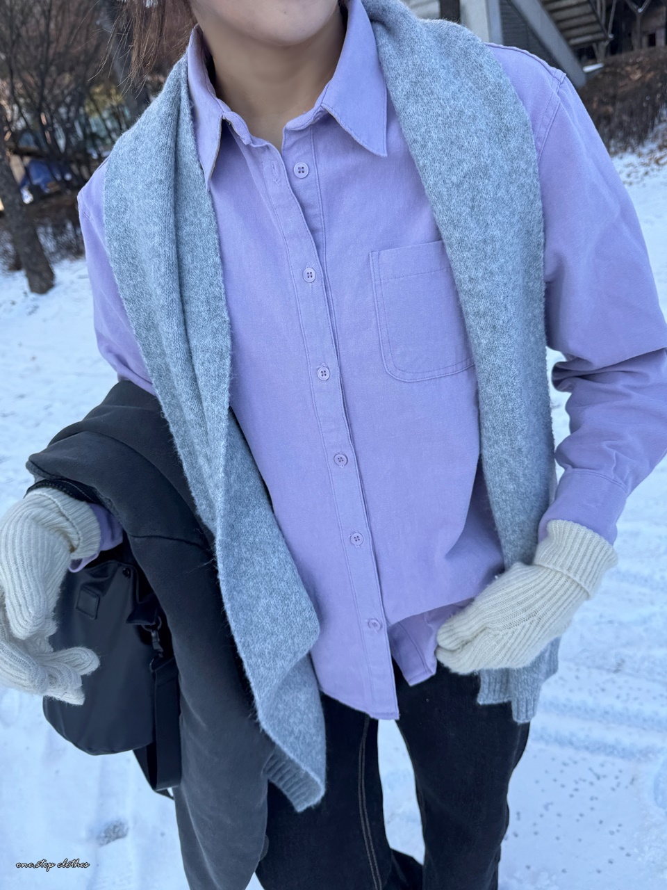 正韓質感車線拼接口袋襯衫 (紫)