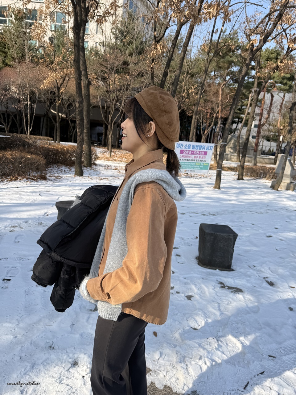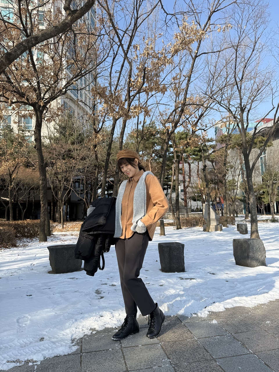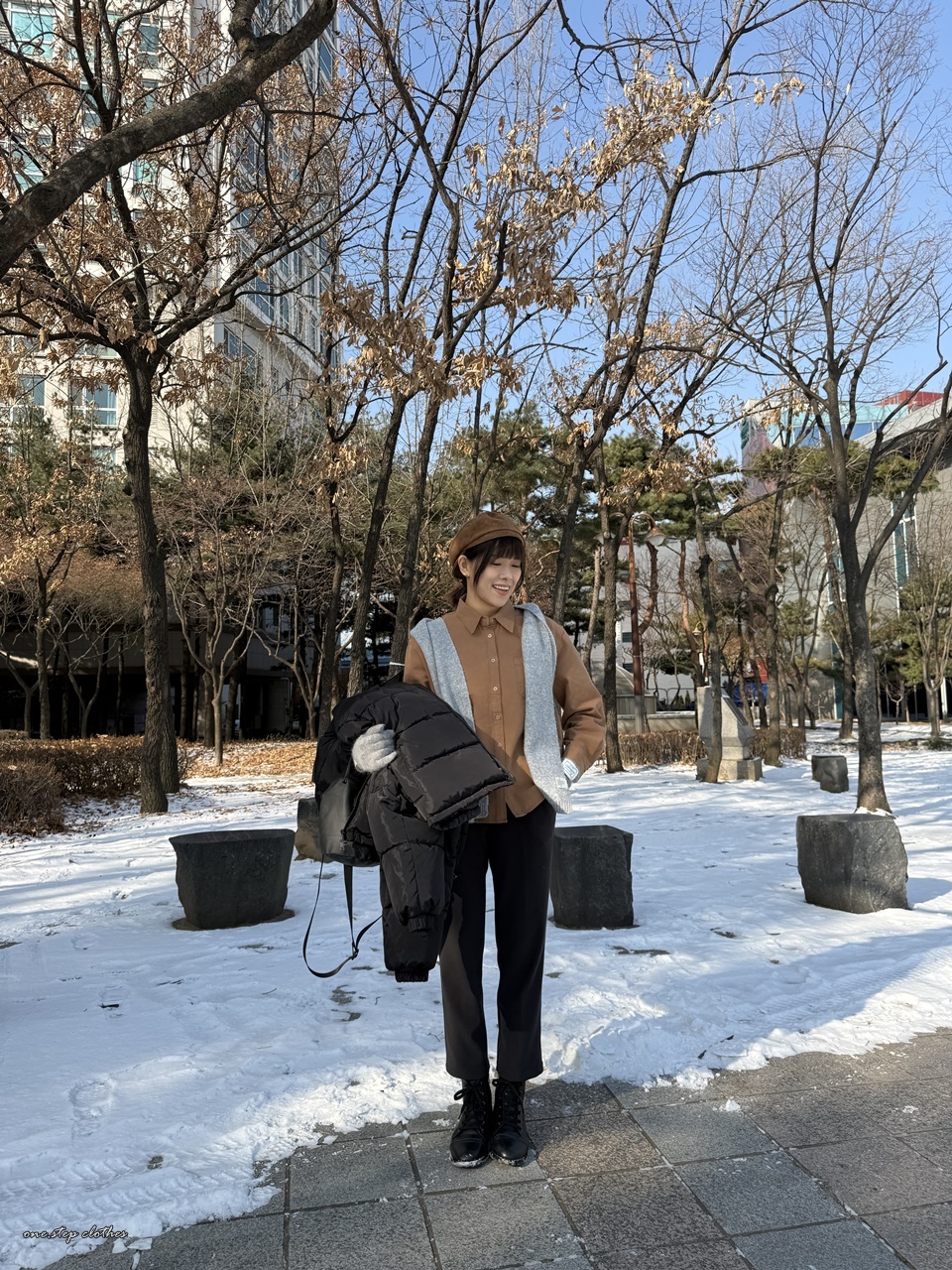 正韓質感車線拼接口袋襯衫 (咖)