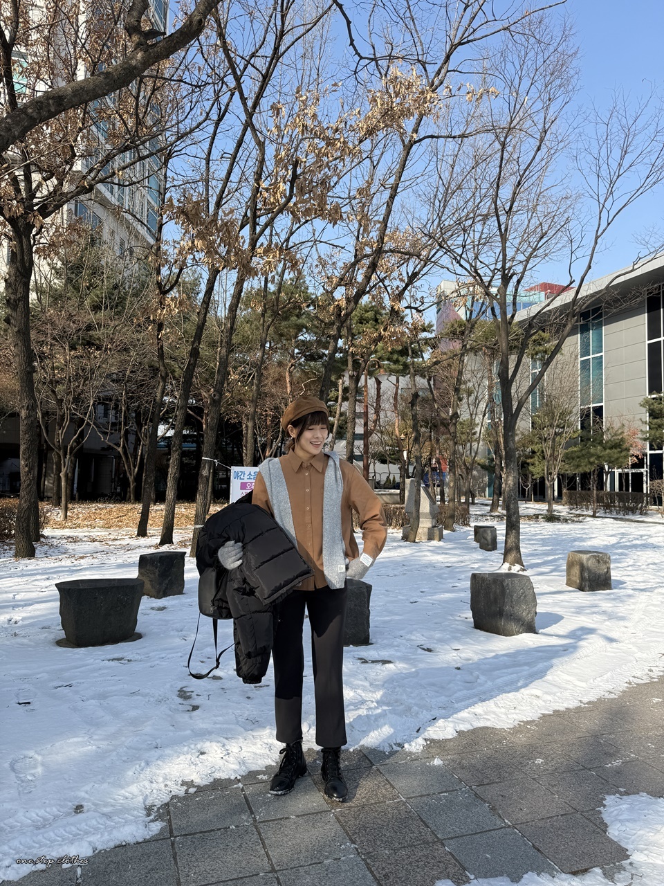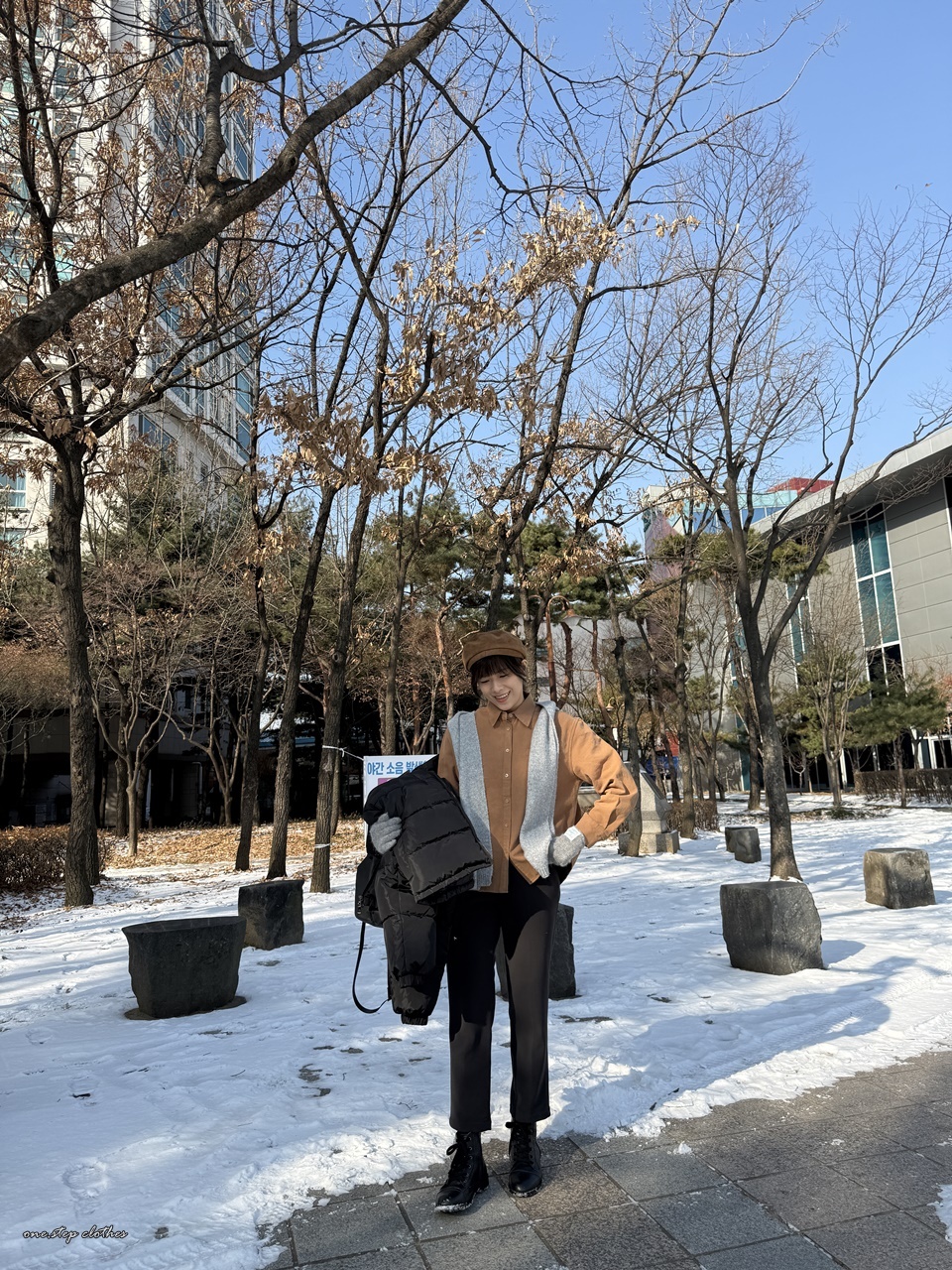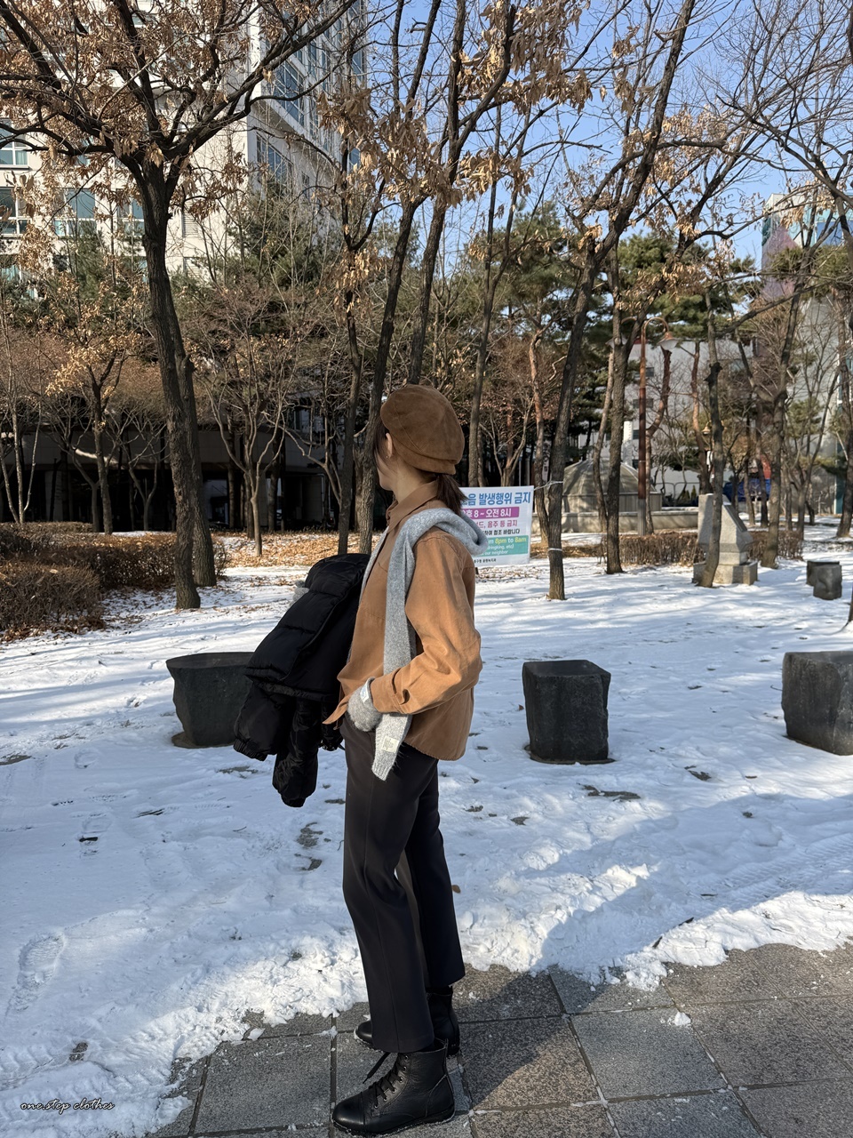 正韓質感車線拼接口袋襯衫 (咖)