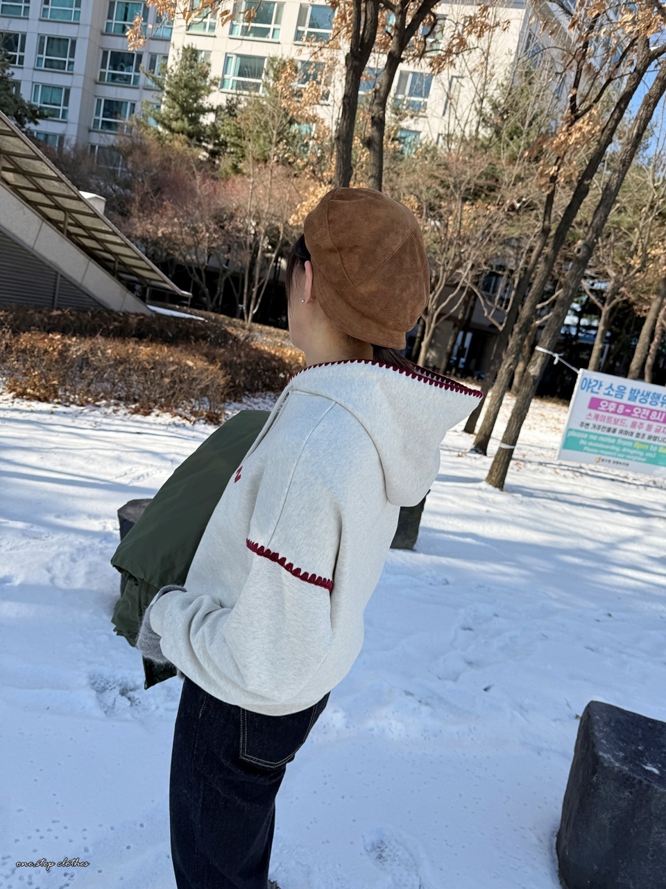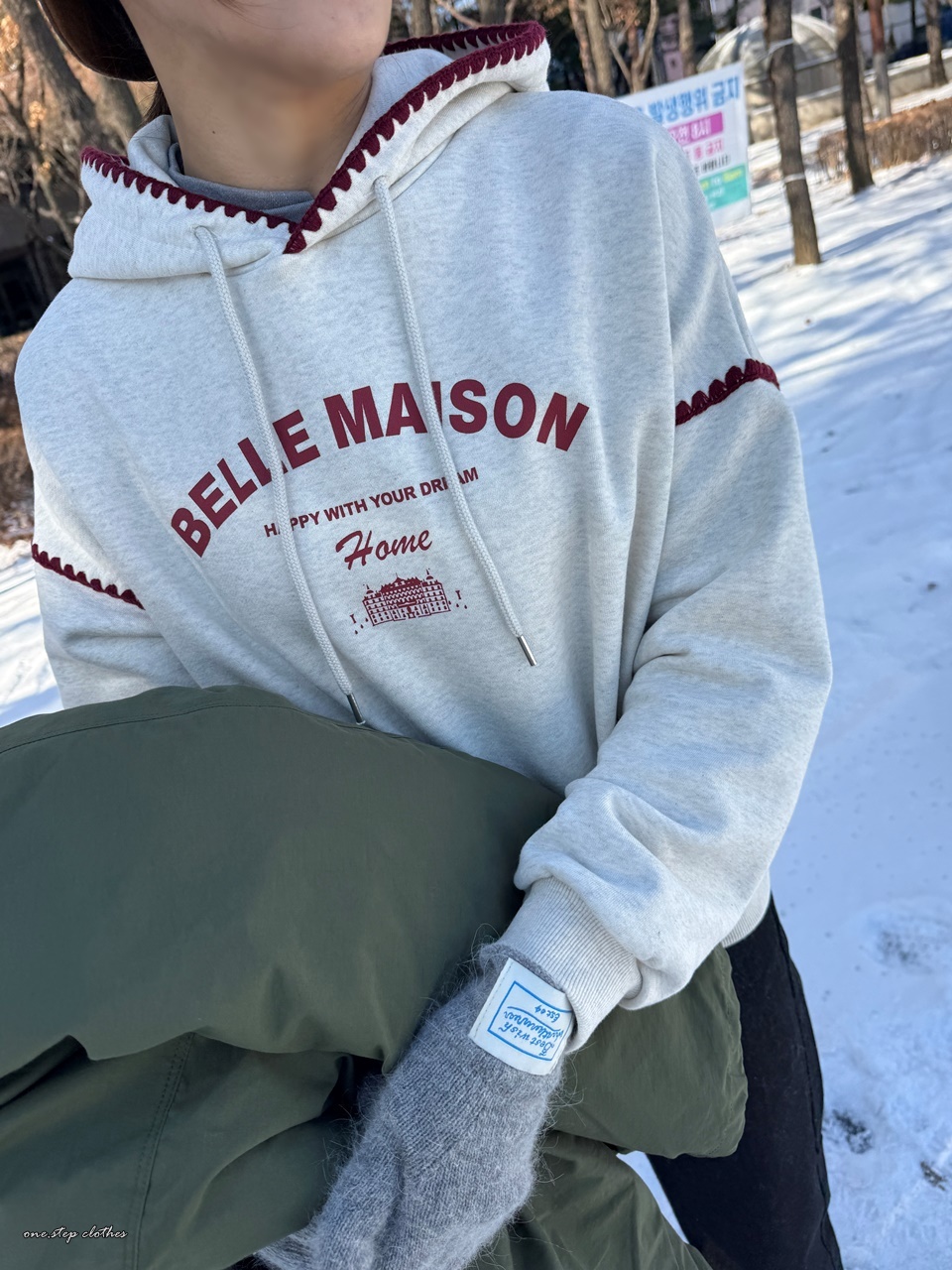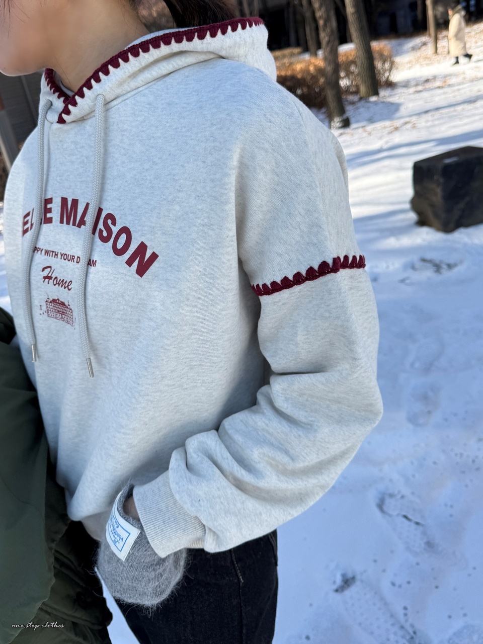 正韓立體紅滾邊刺繡帽T