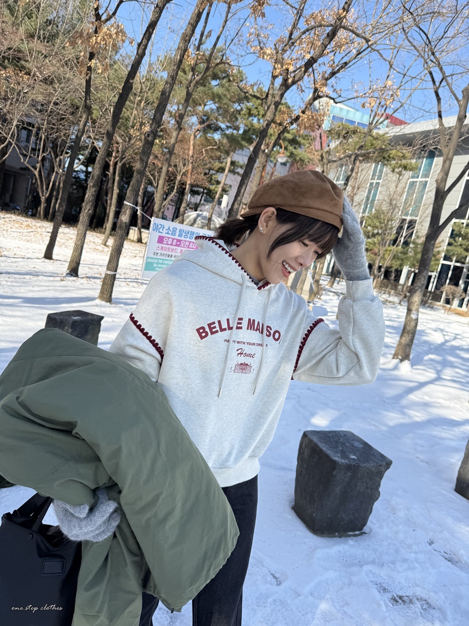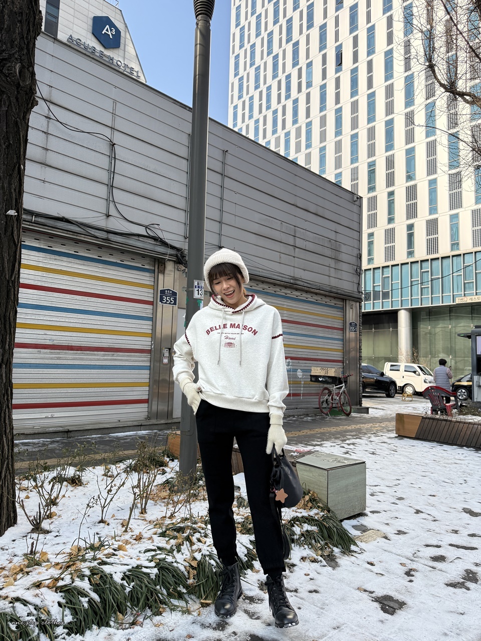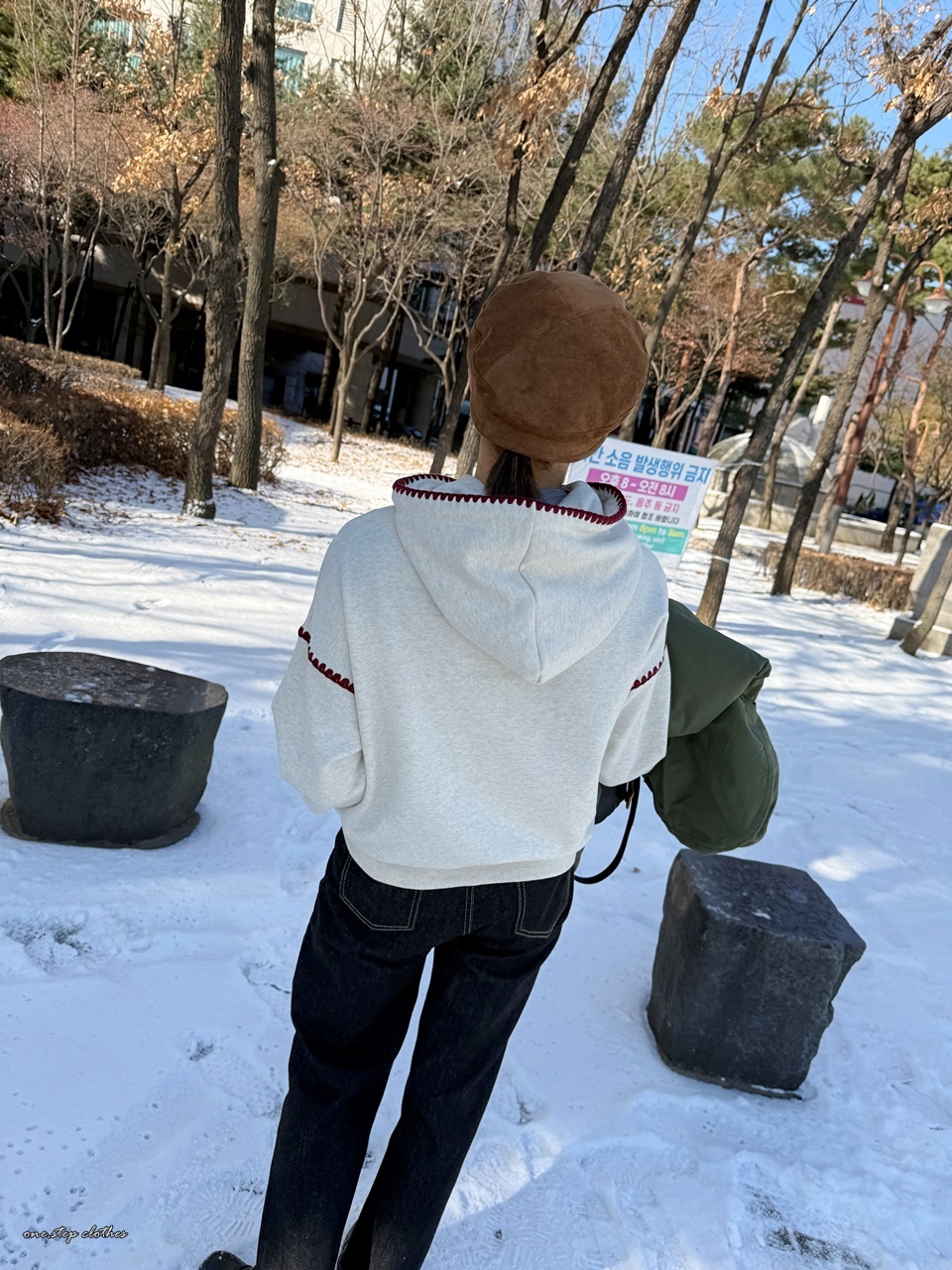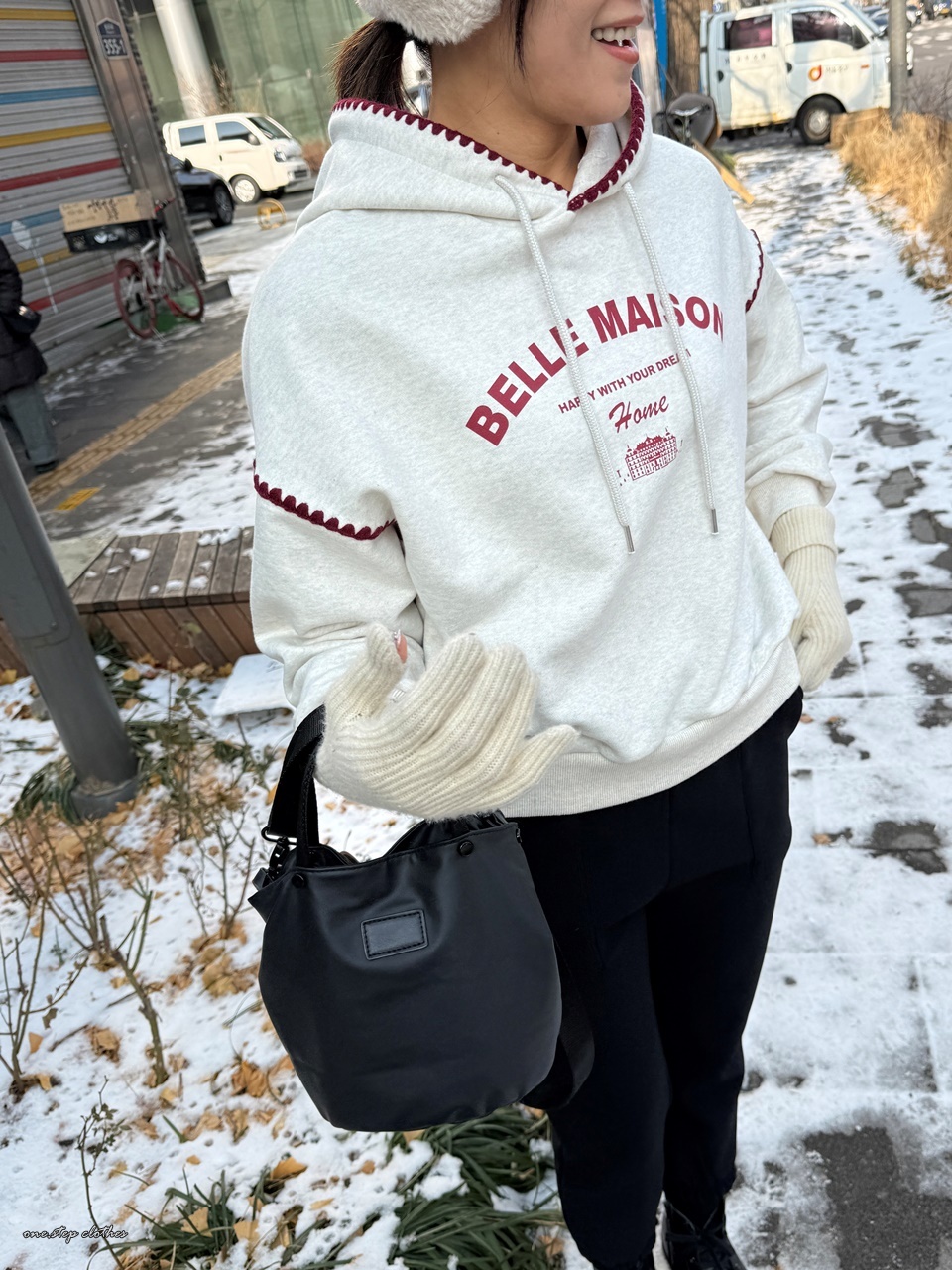 正韓立體紅滾邊刺繡帽T