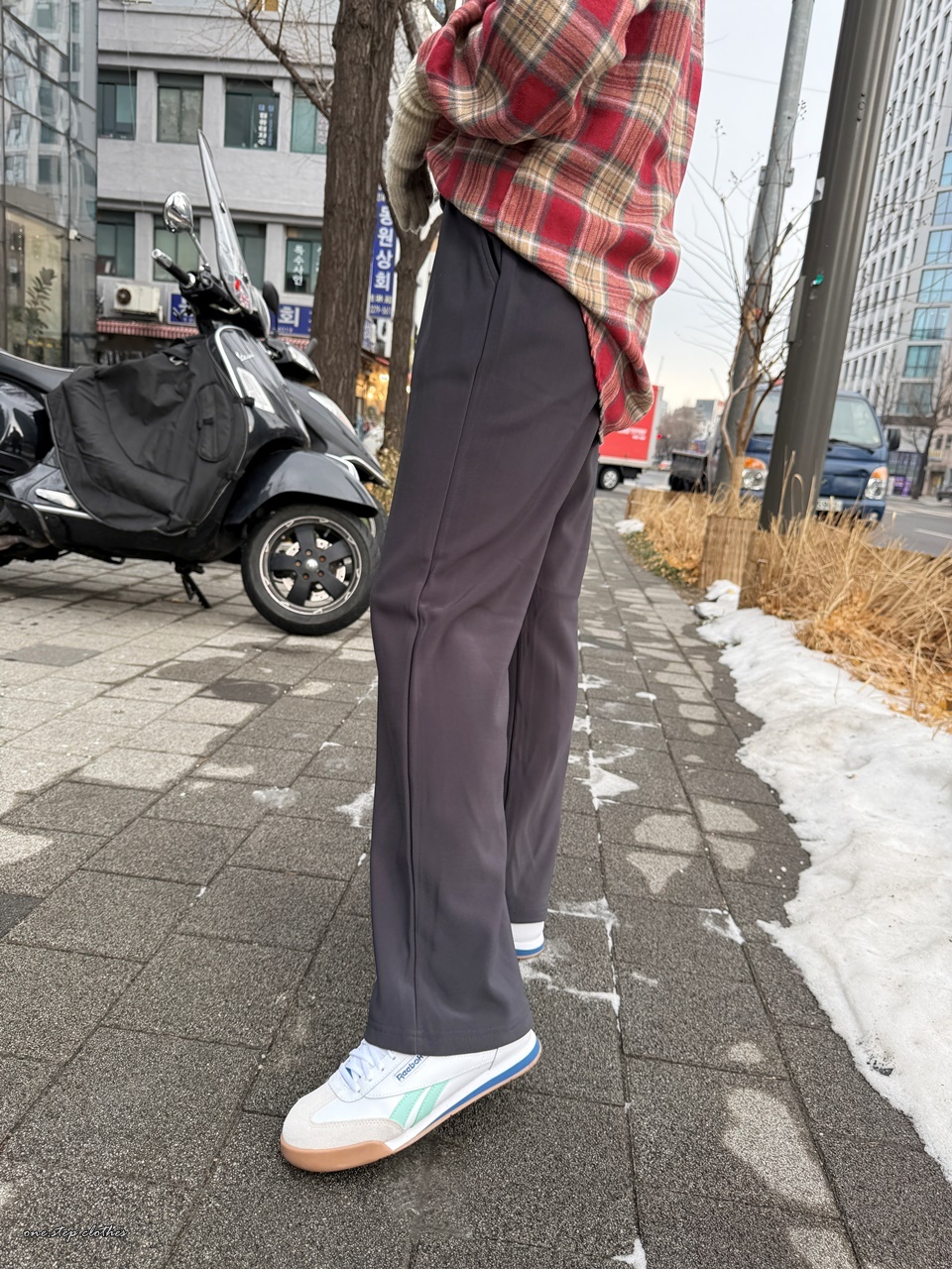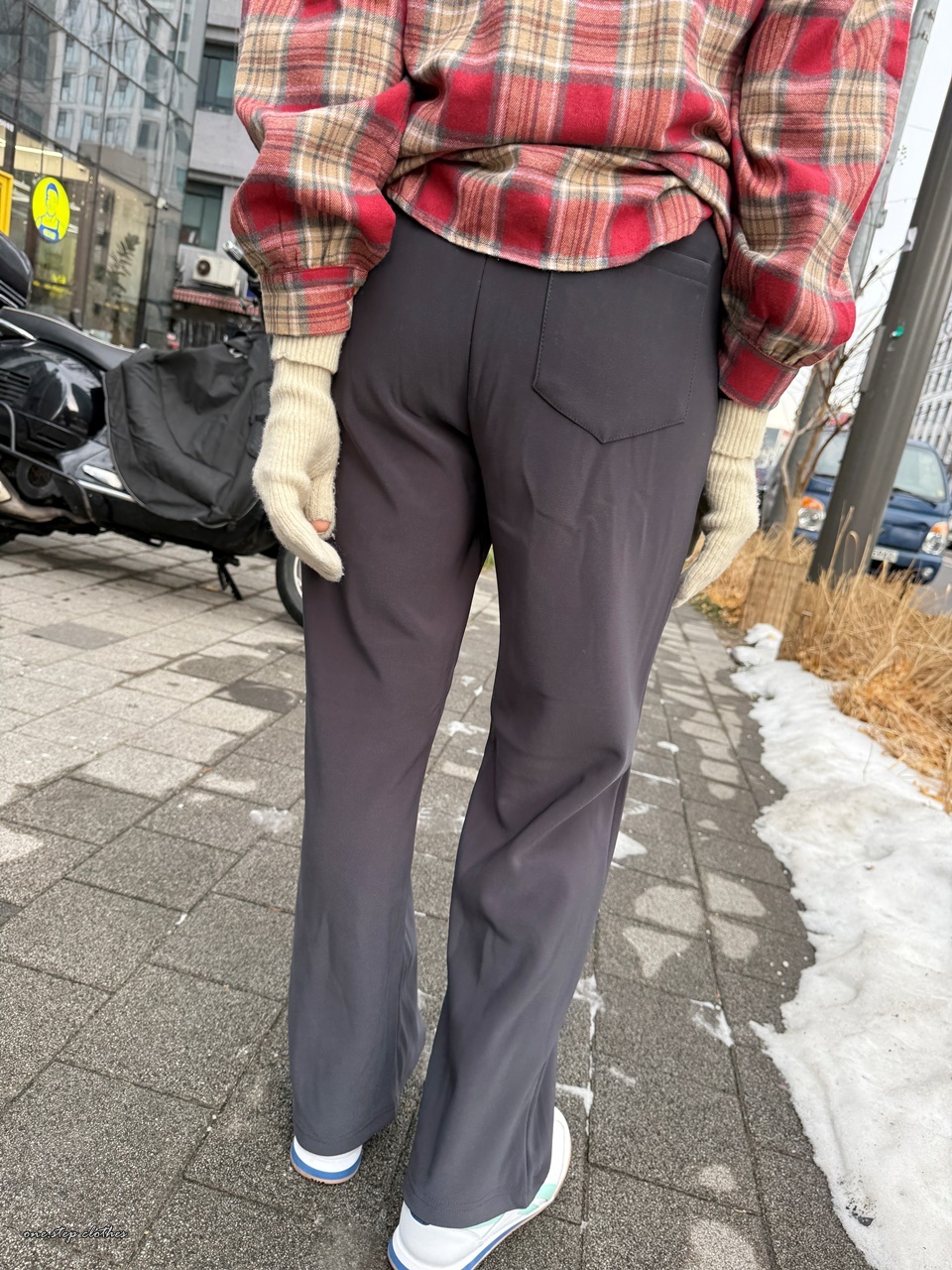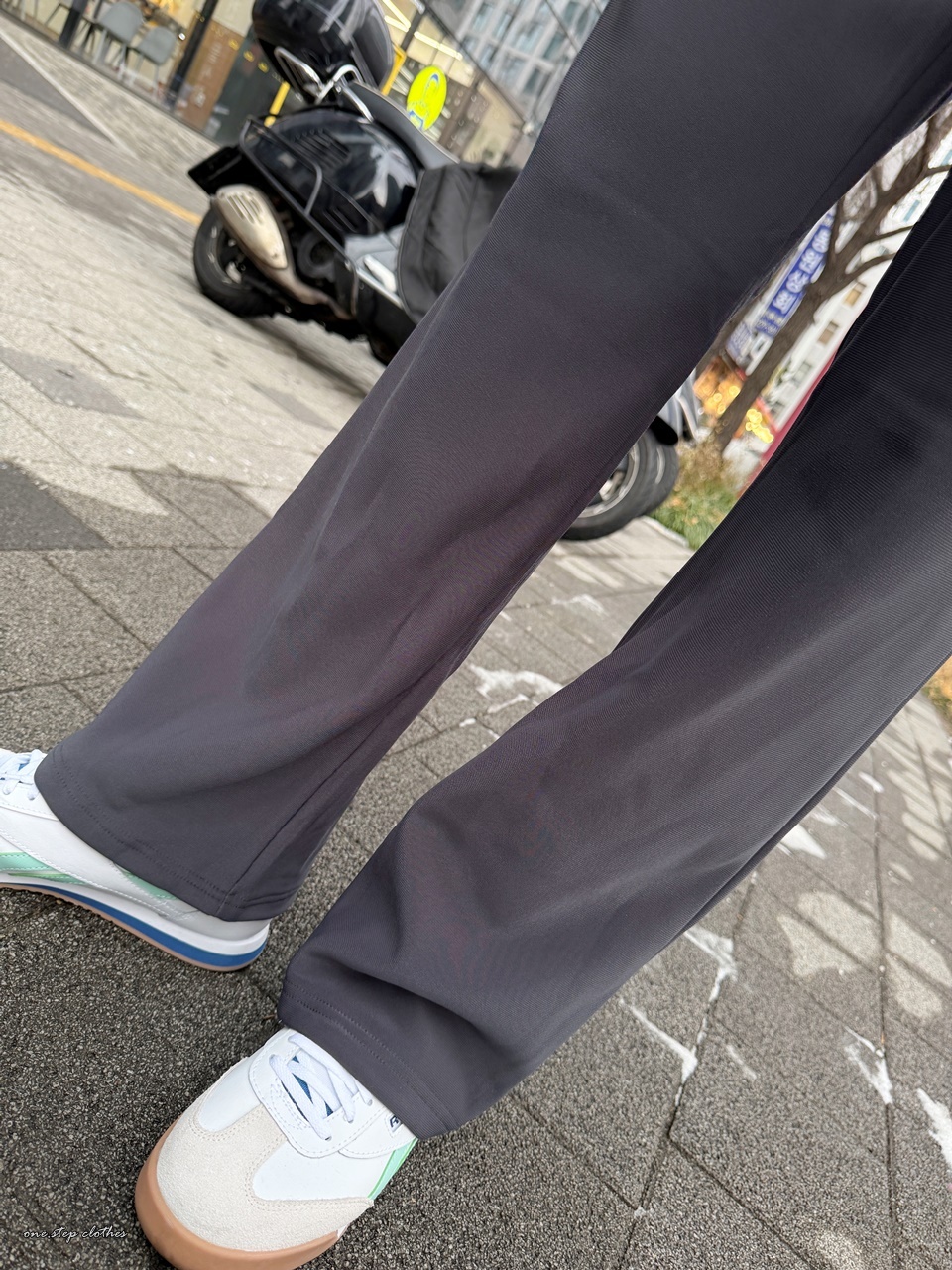 這件刷毛直筒褲穿起來帶點垂墜慵懶感