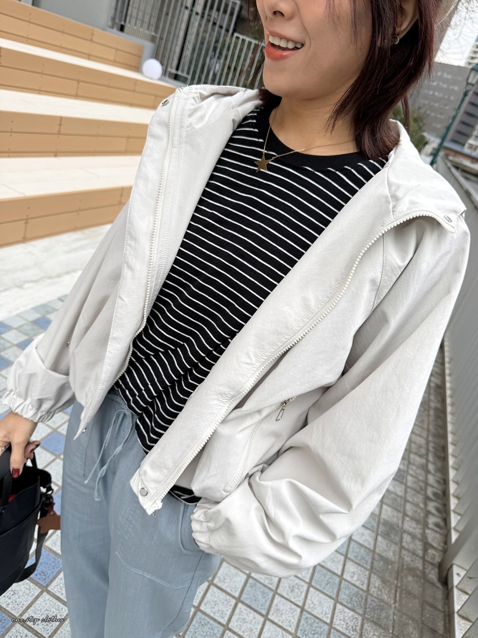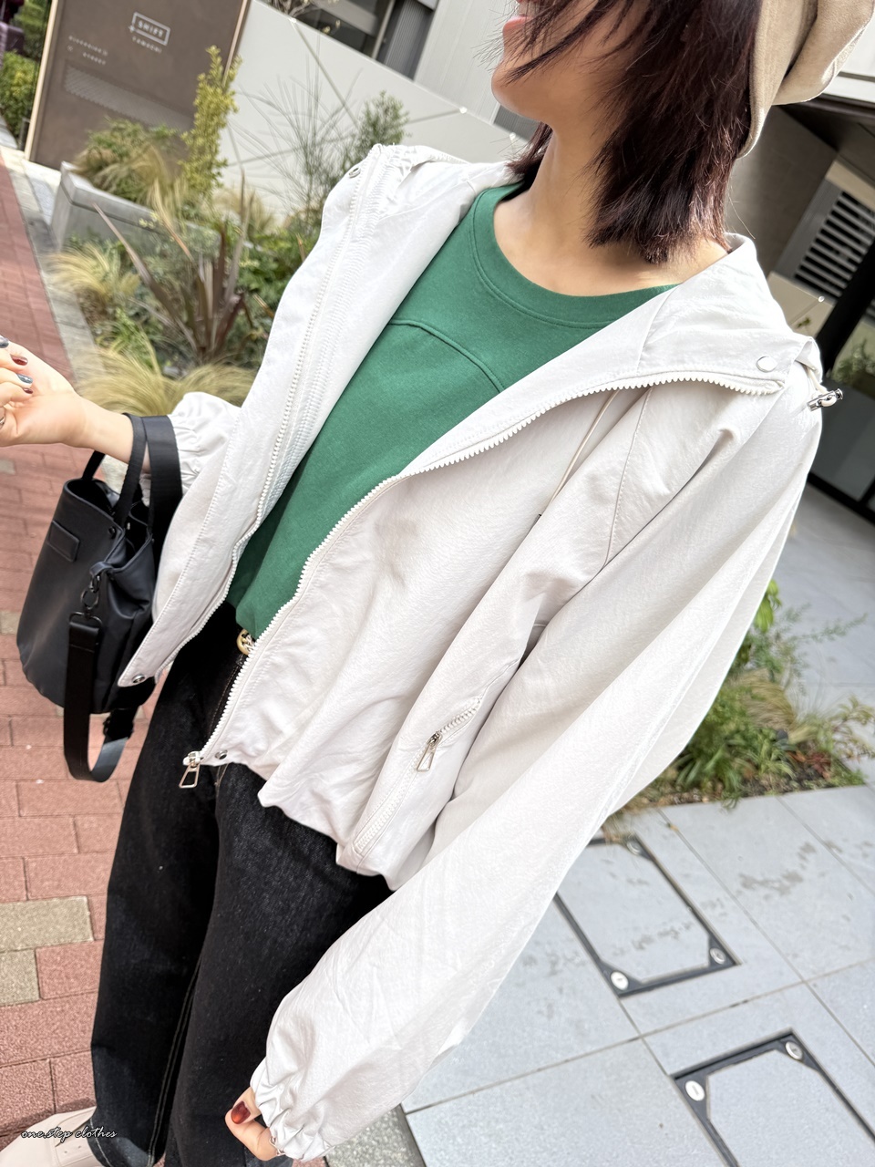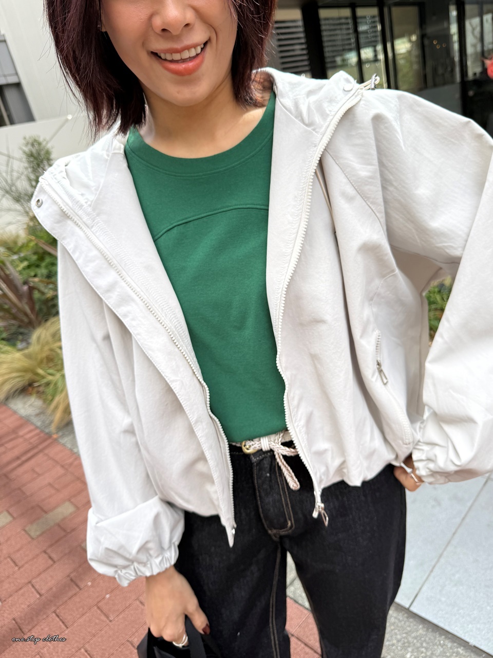 正韓俏皮縮腰口袋連帽風衣外 (米)