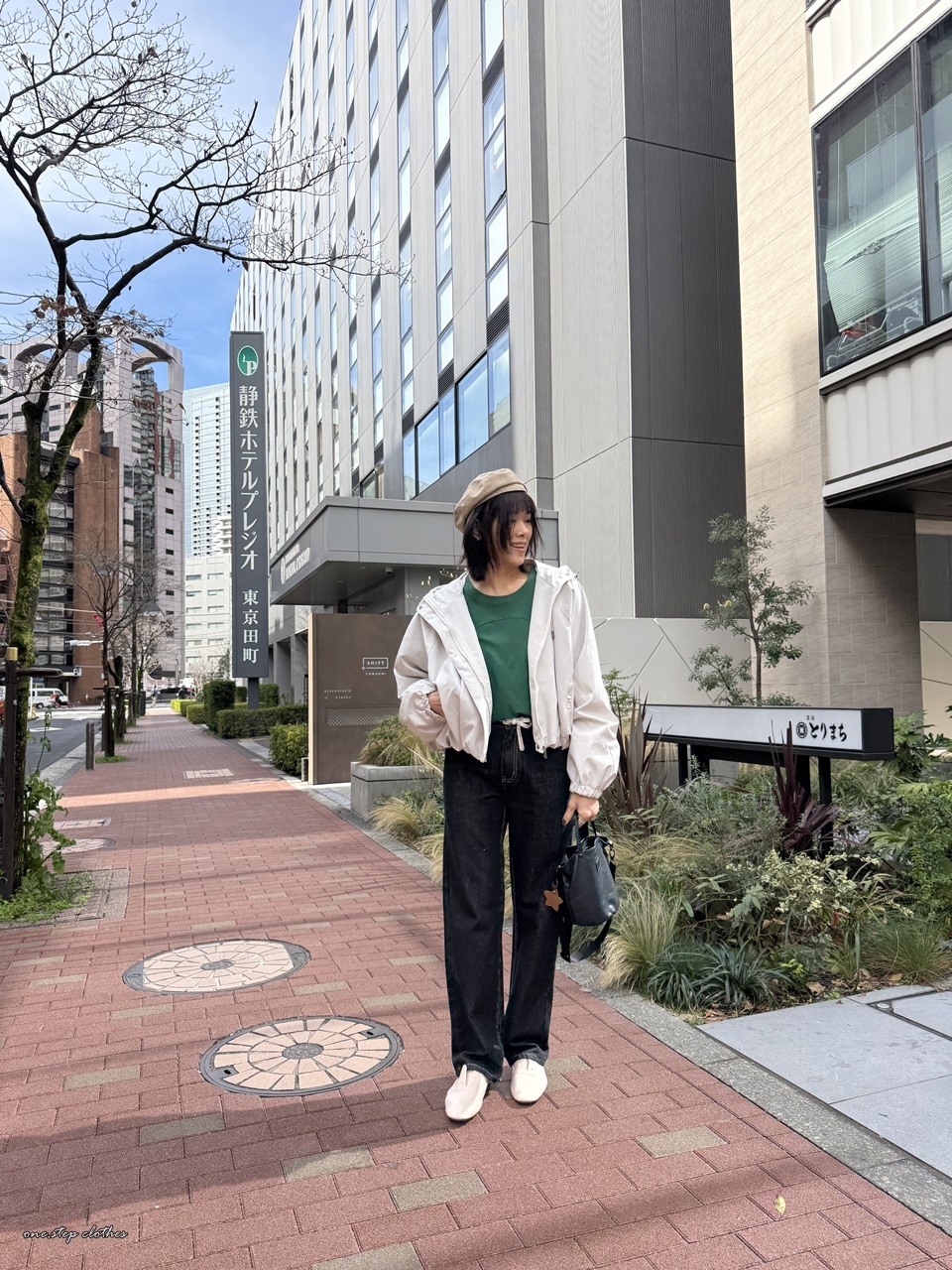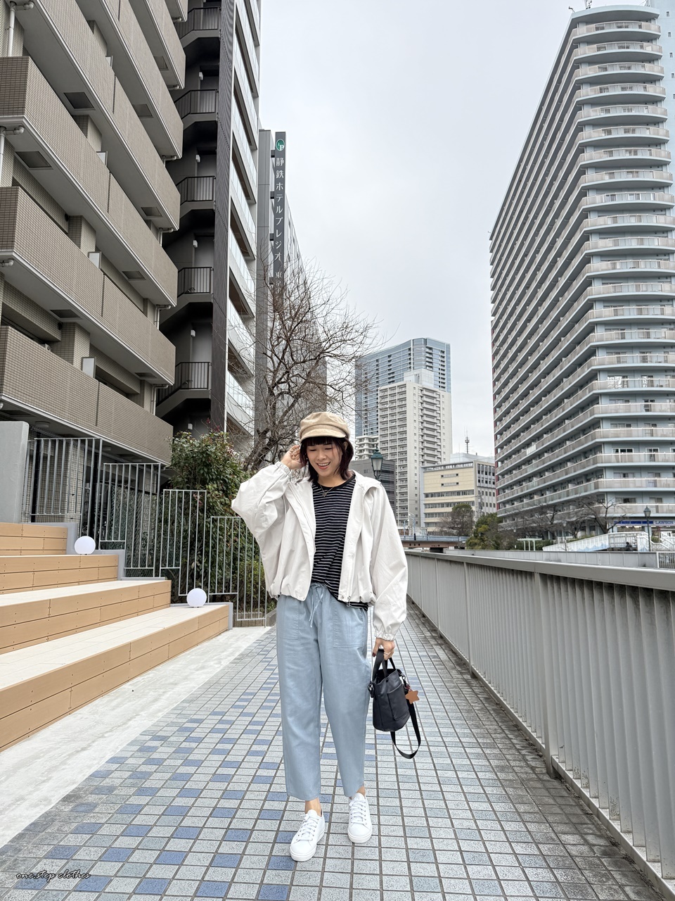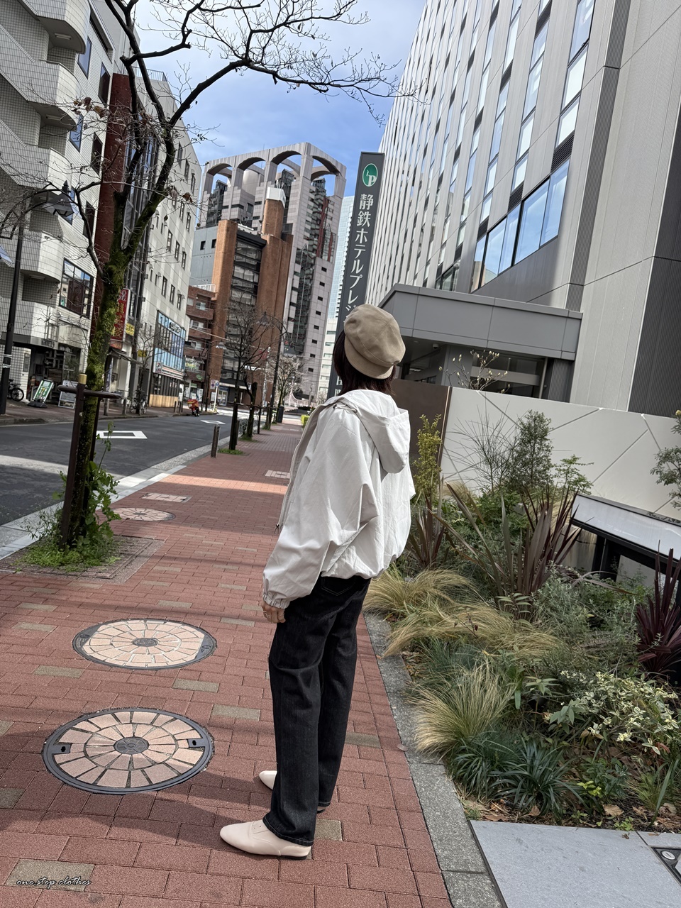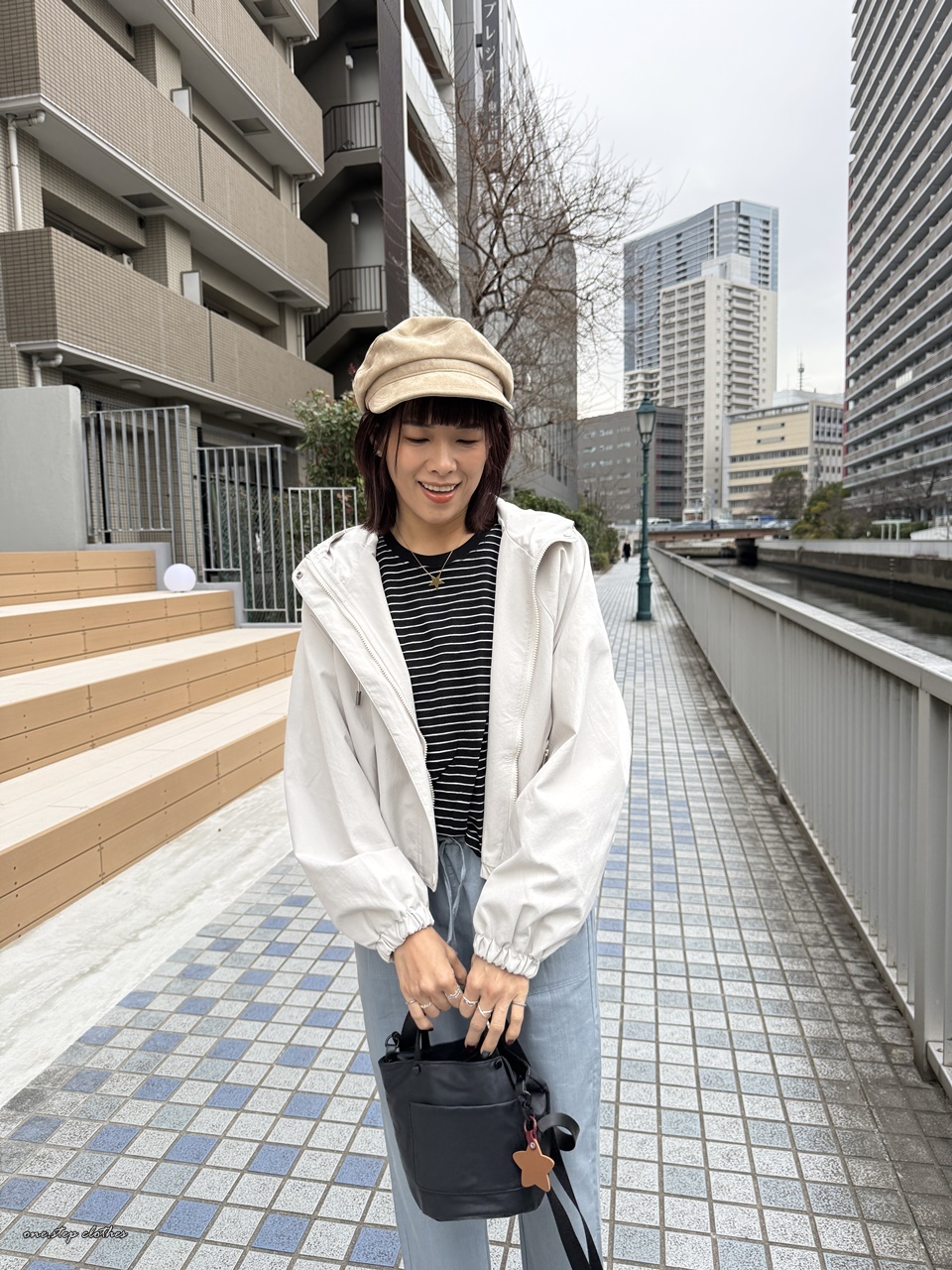正韓俏皮縮腰口袋連帽風衣外 (米)