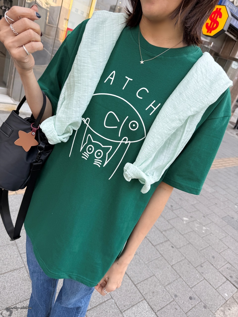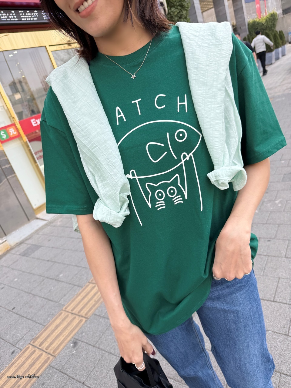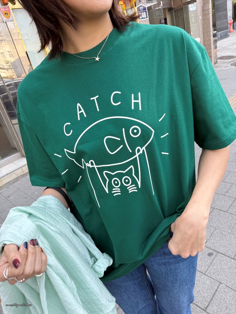 正韓俏皮小貓抓魚T (綠)