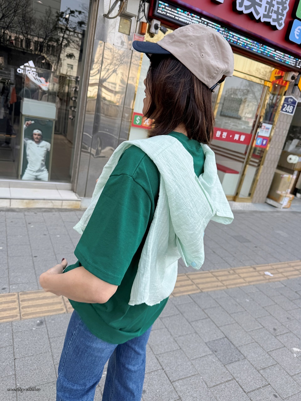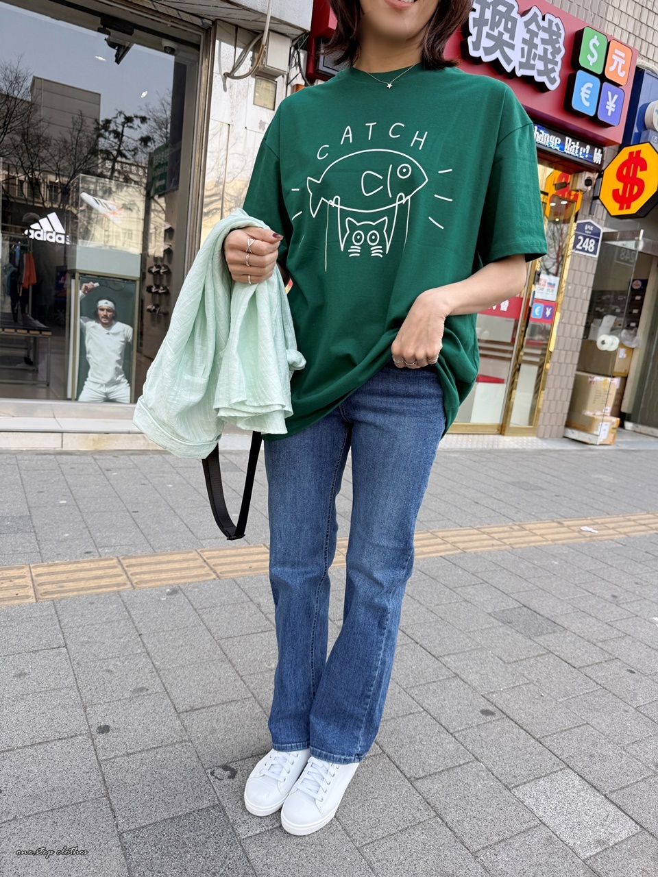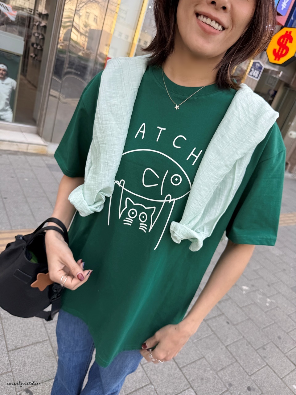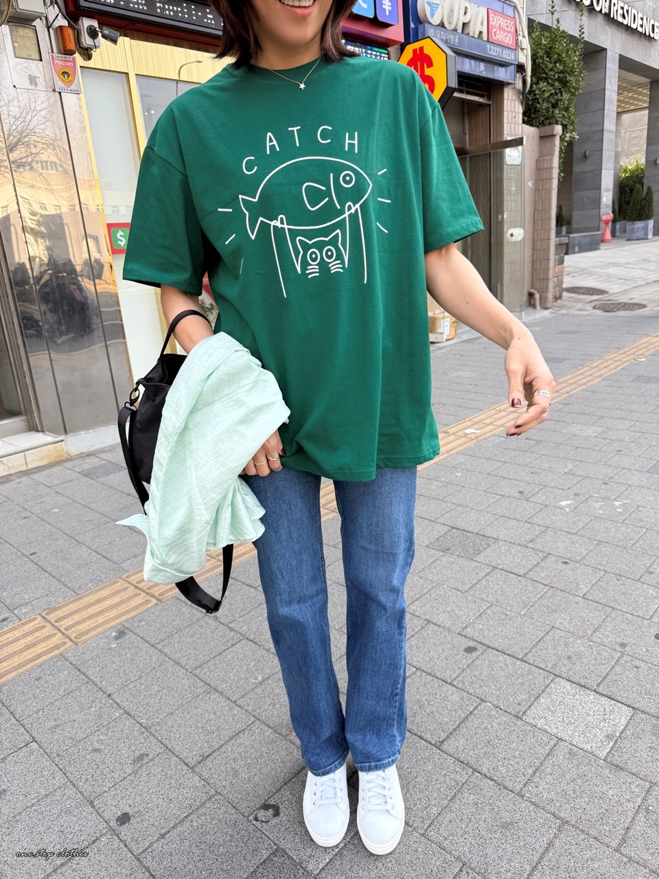 正韓俏皮小貓抓魚T (綠)