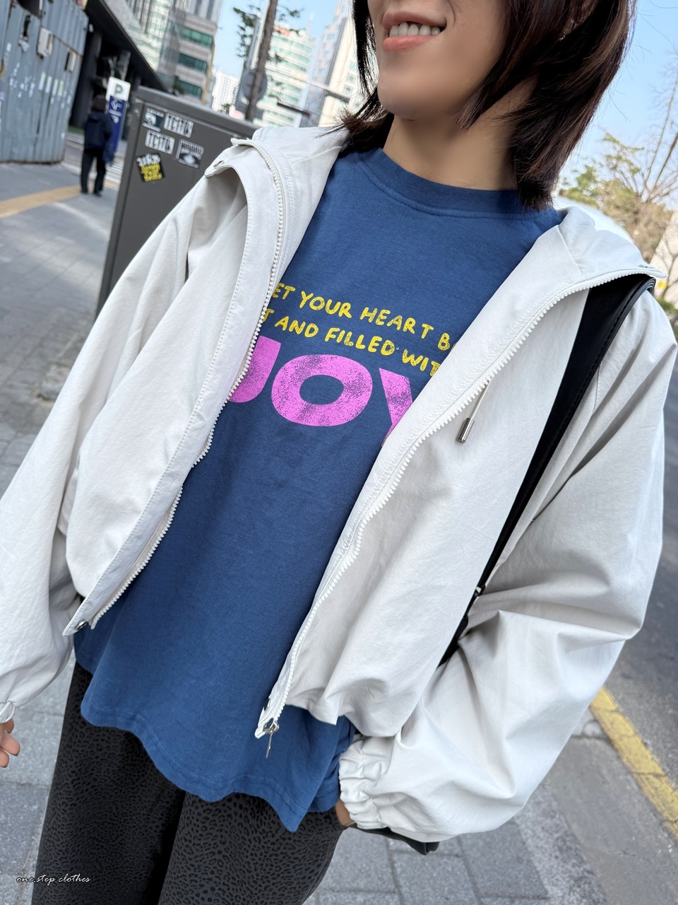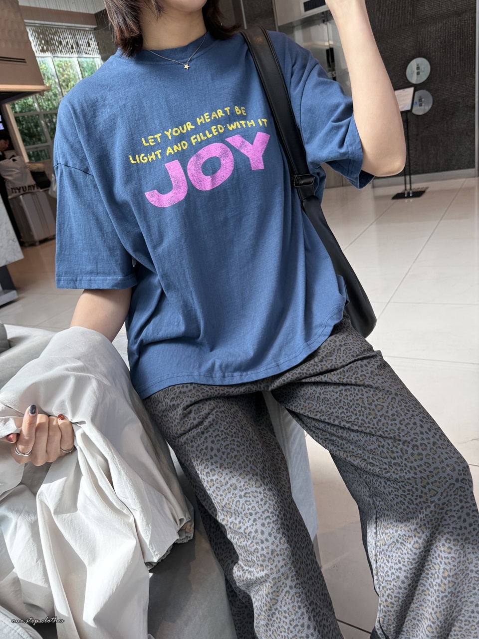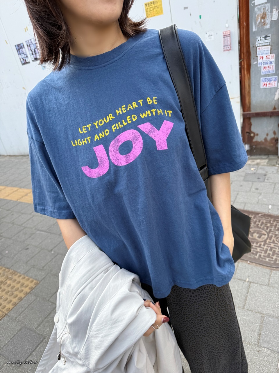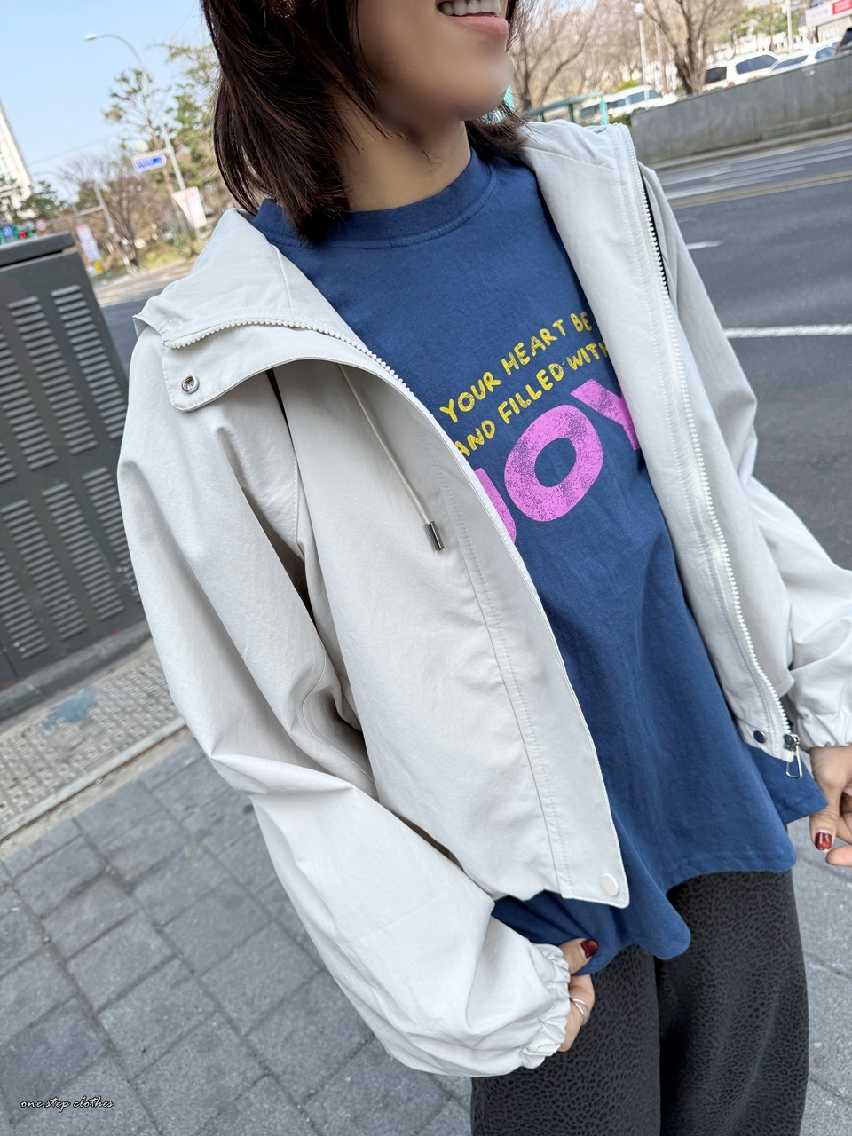 正韓桃粉JOY字母水洗T