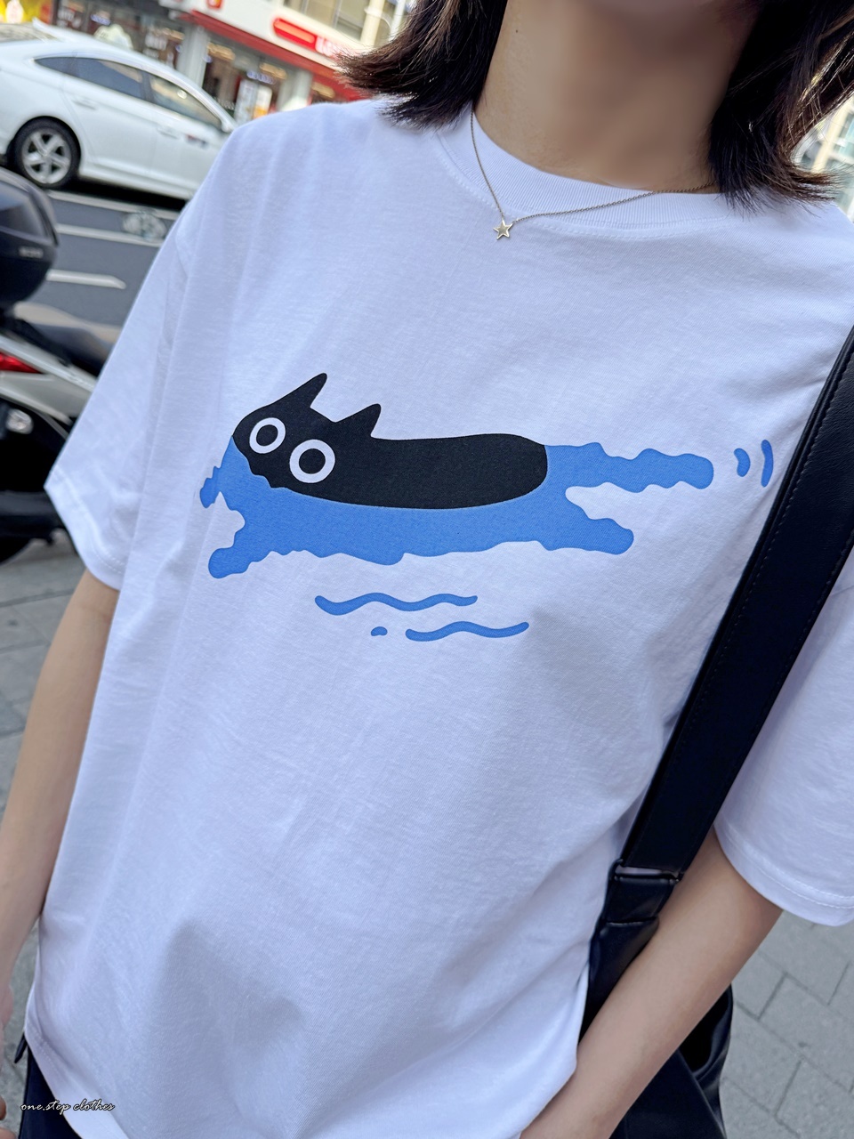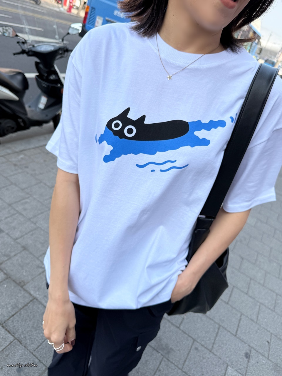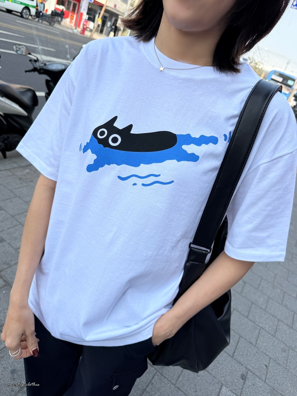 正韓慵懶小黑貓游泳T