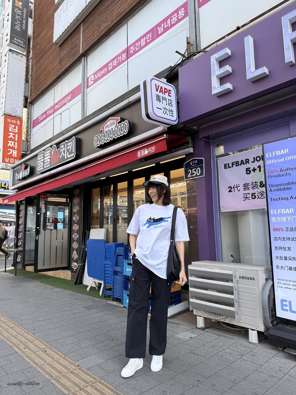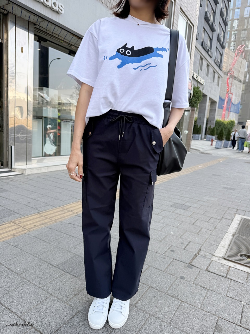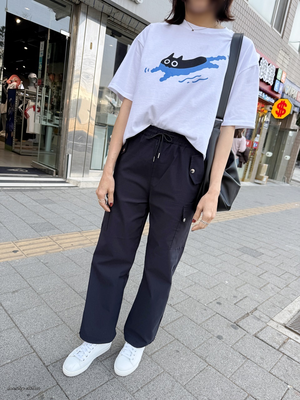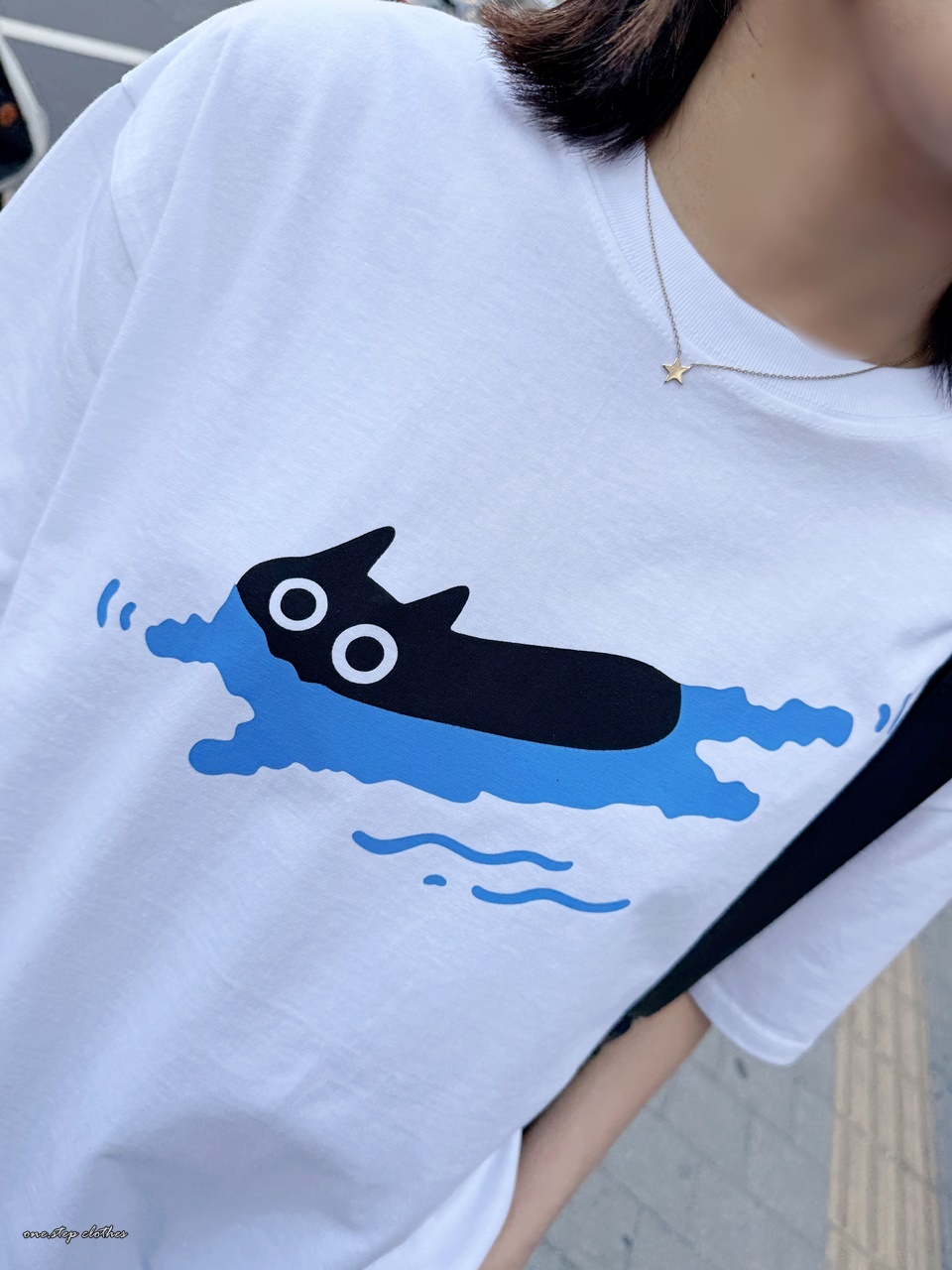 正韓慵懶小黑貓游泳T