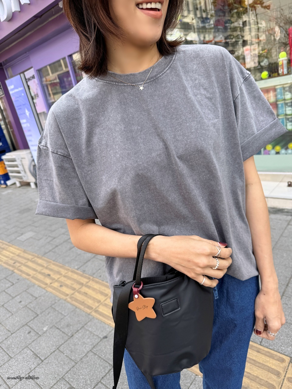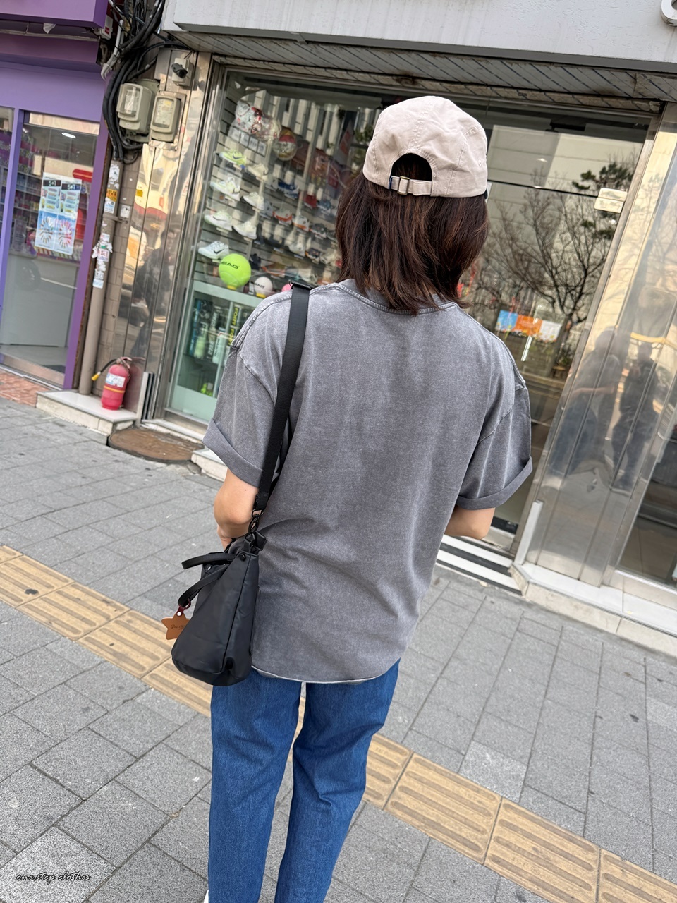 正韓琳達仿舊水洗百搭T (灰)