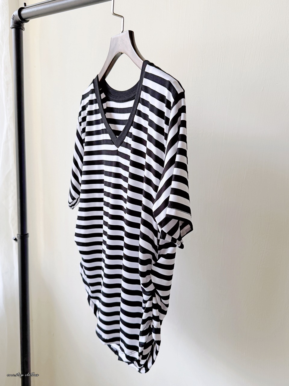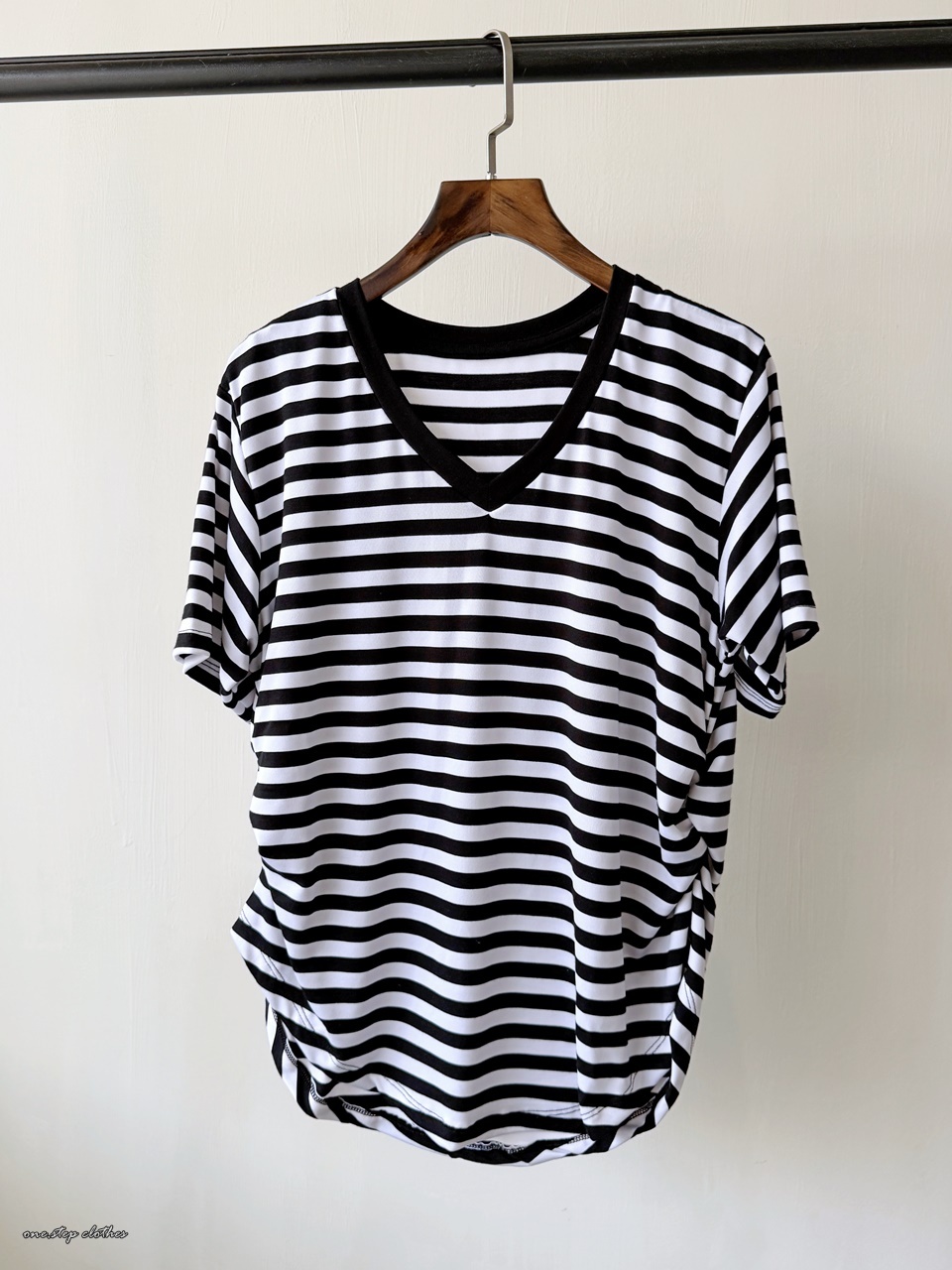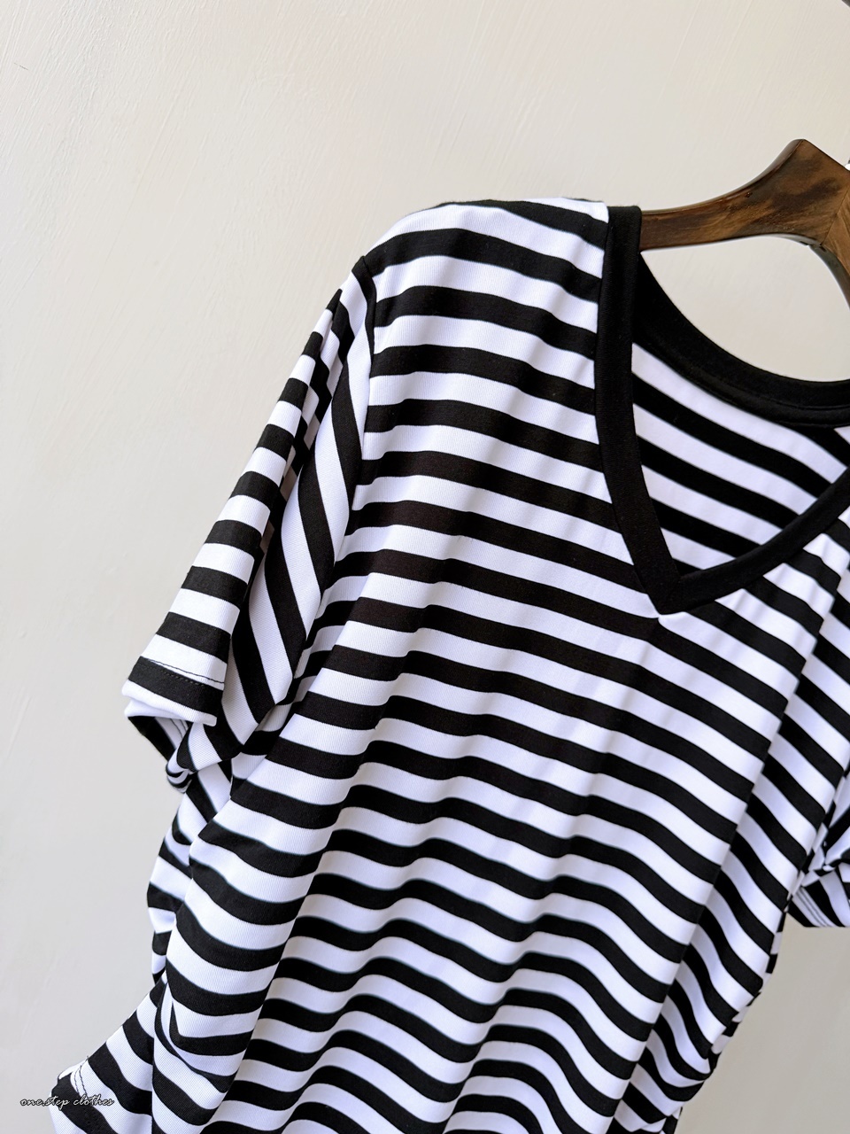 正韓V領彈性萊卡橫條上衣