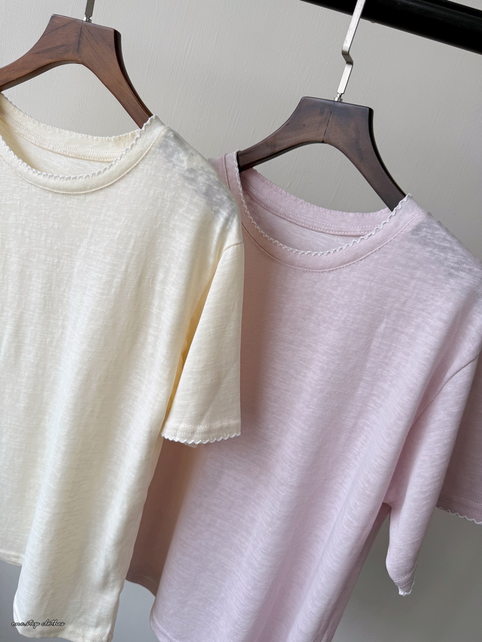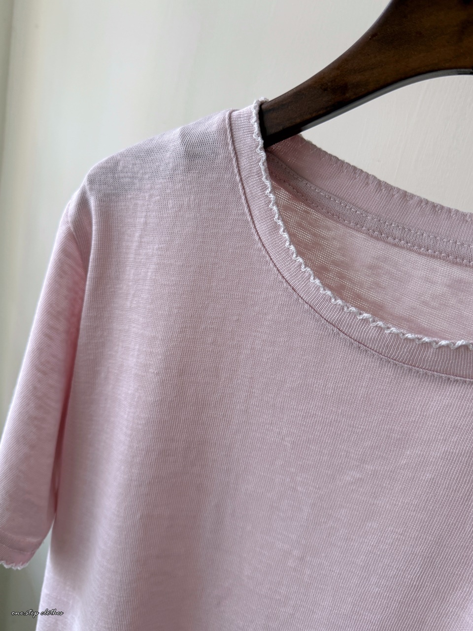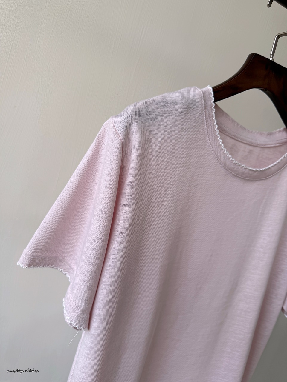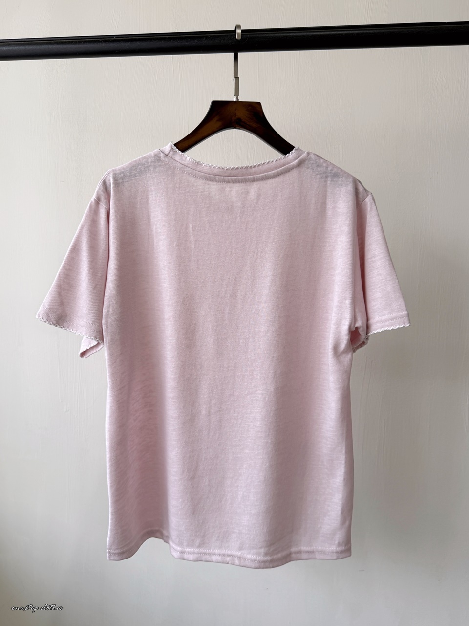 正韓手袖刺繡邊百搭素T (粉)