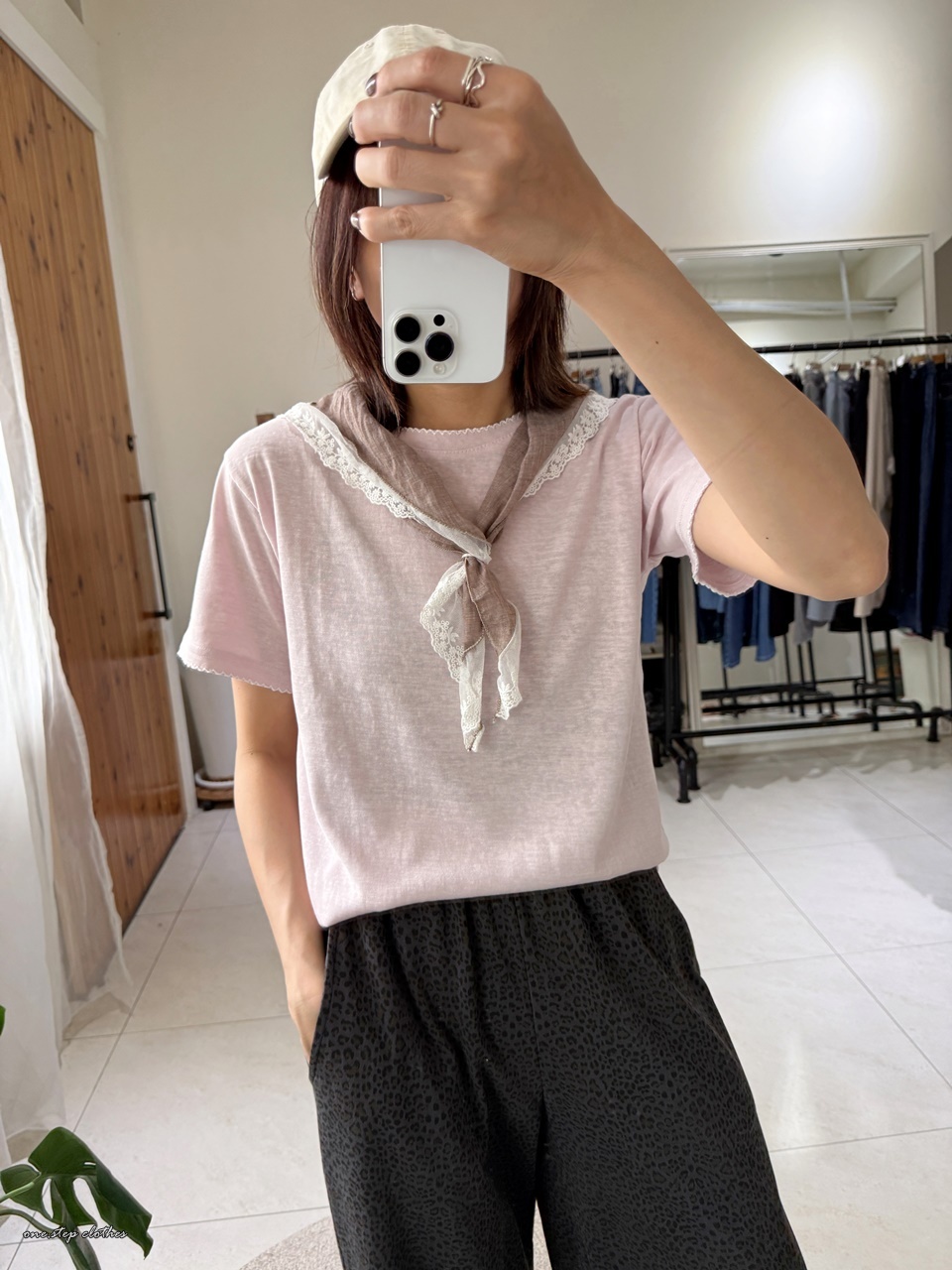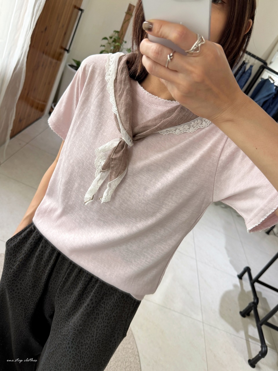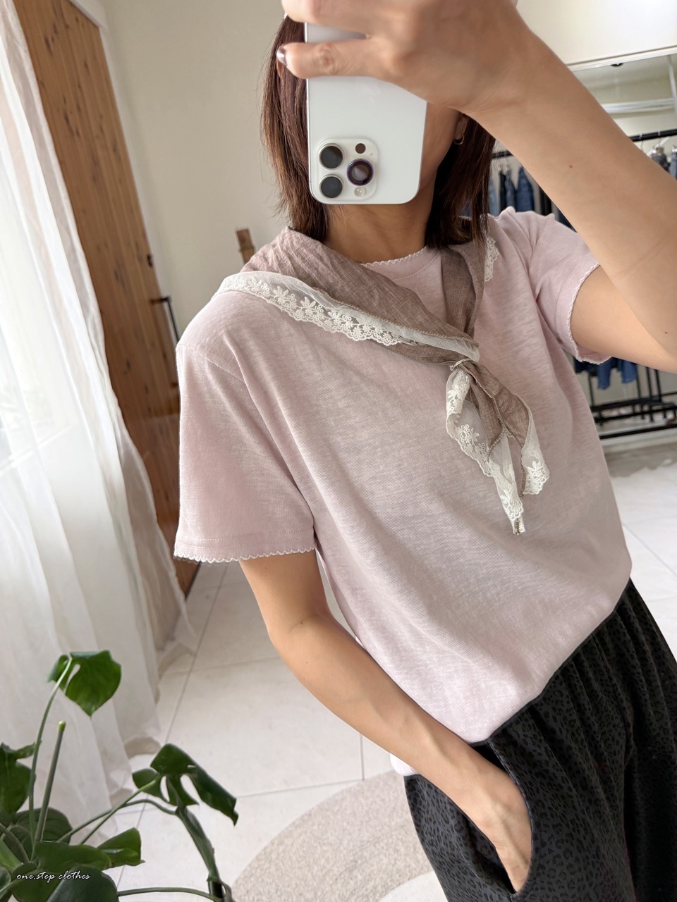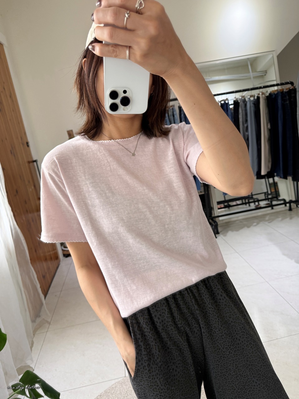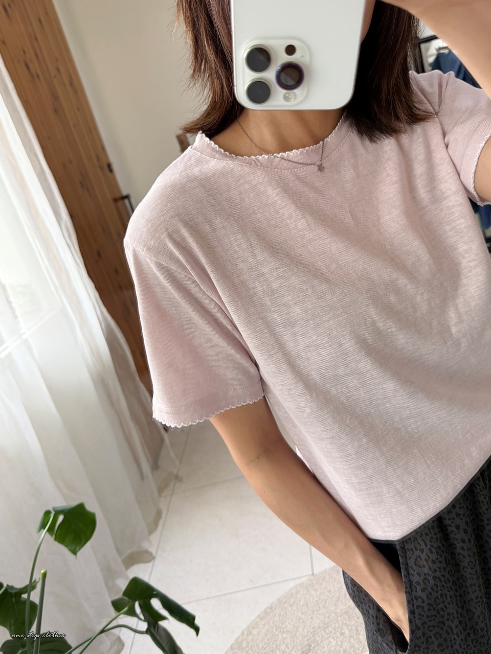 正韓手袖刺繡邊百搭素T (粉)