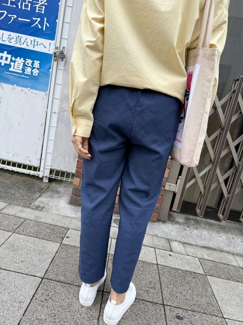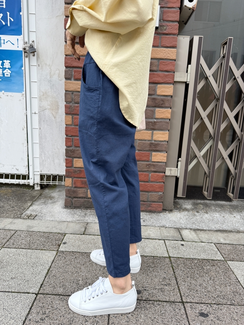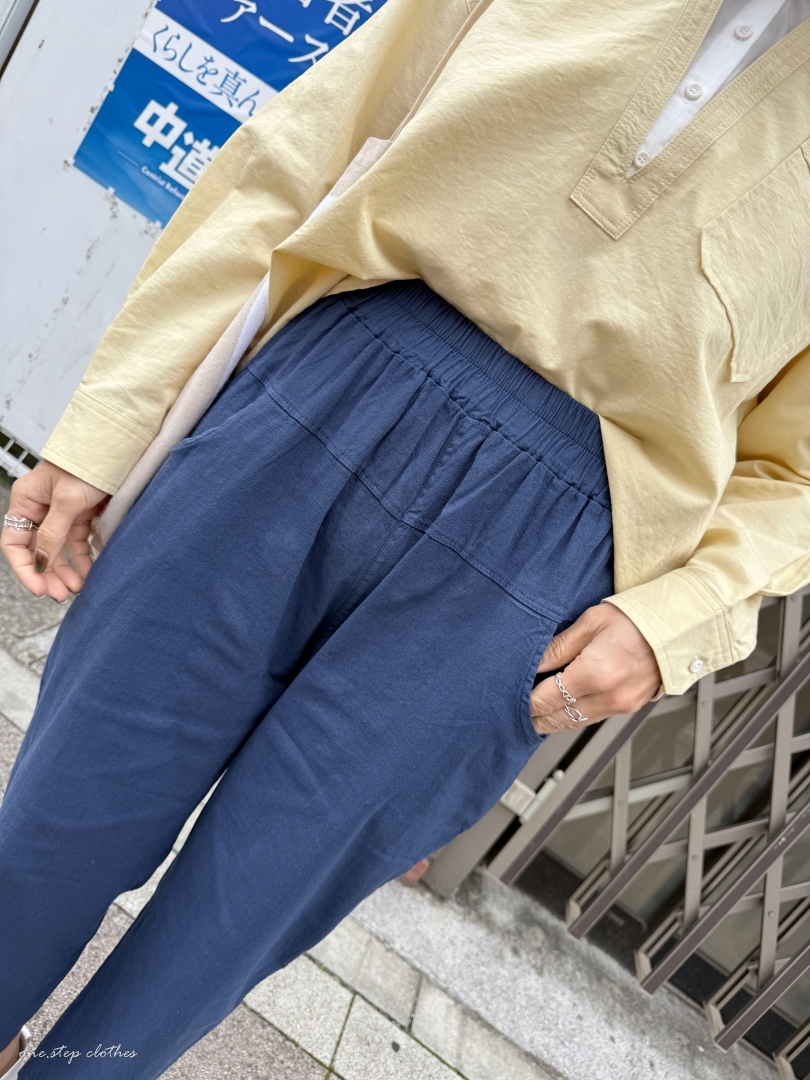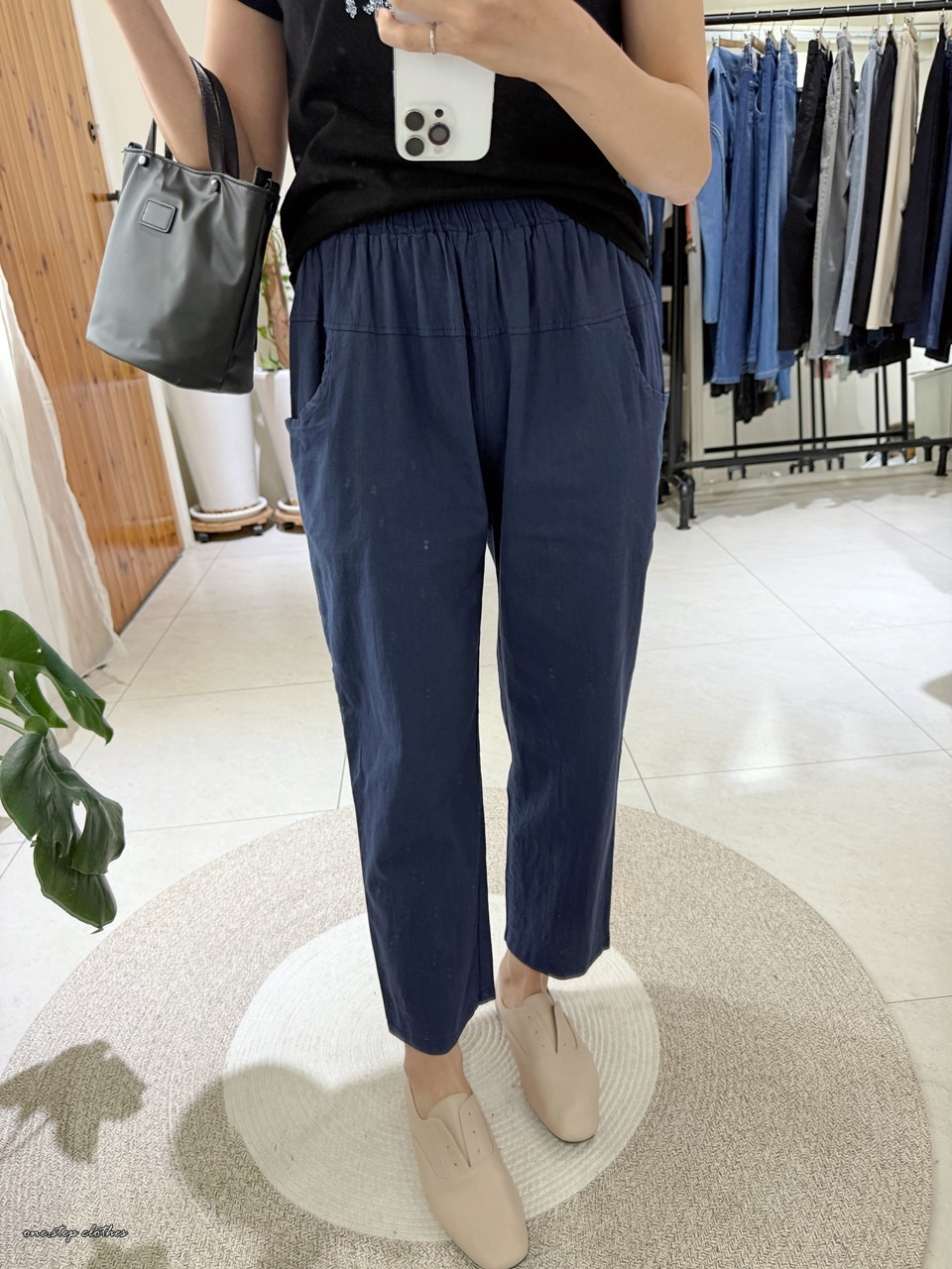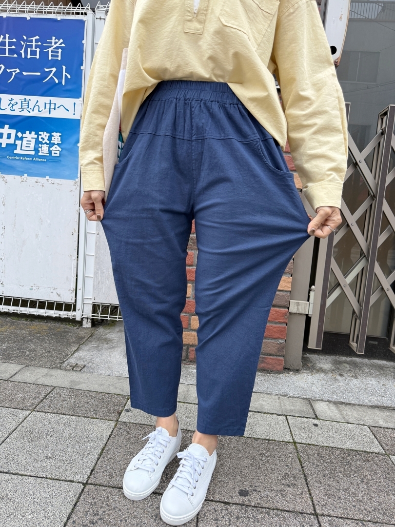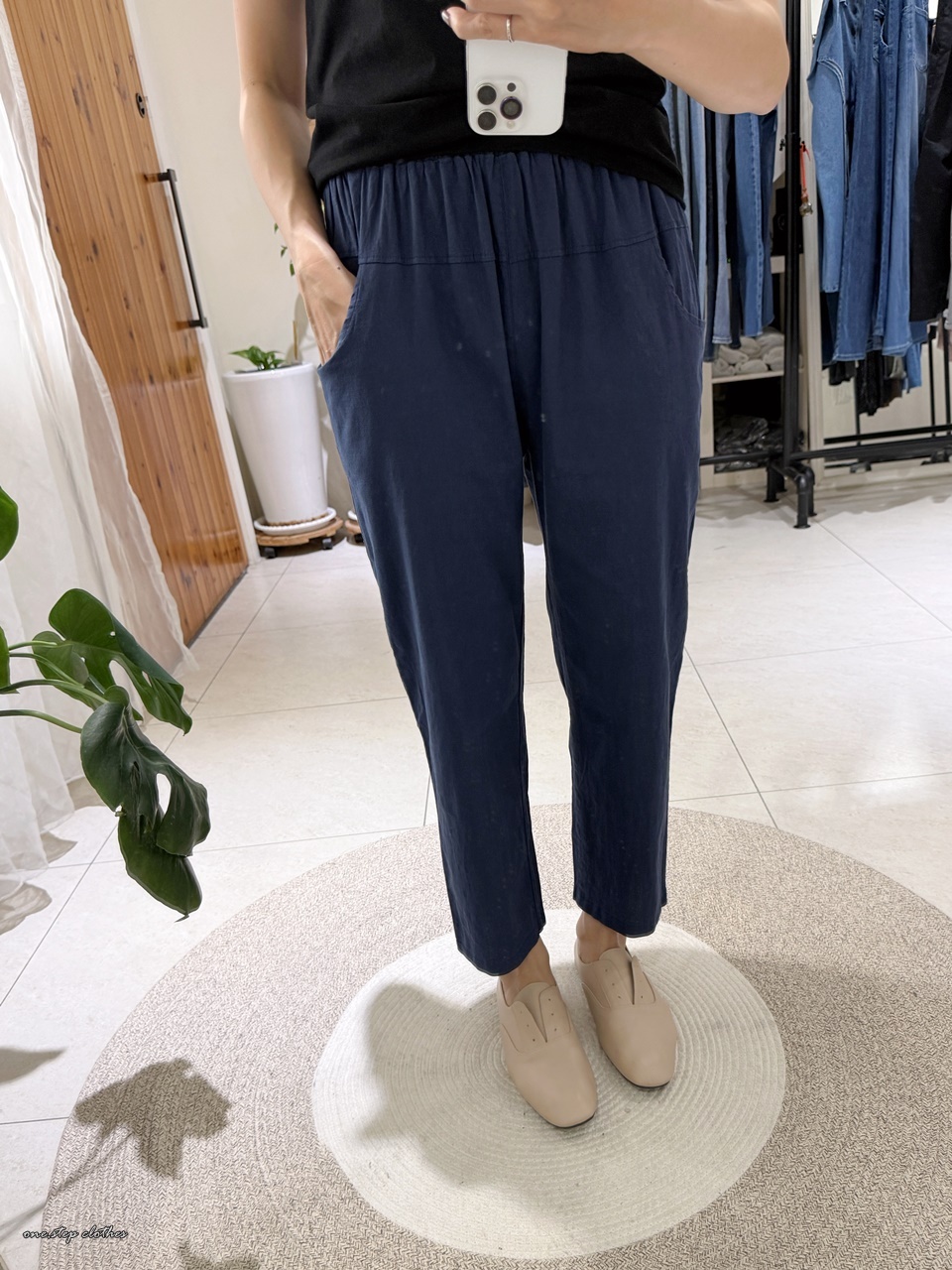 正韓自在感口袋鬆緊棉麻褲 (藍)