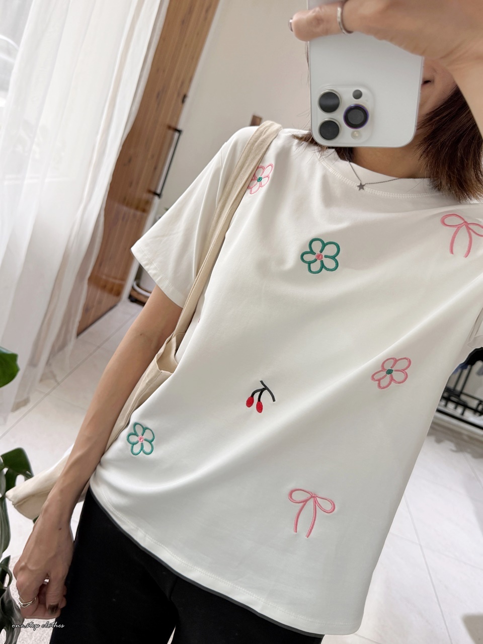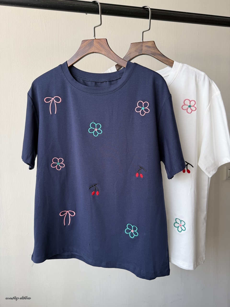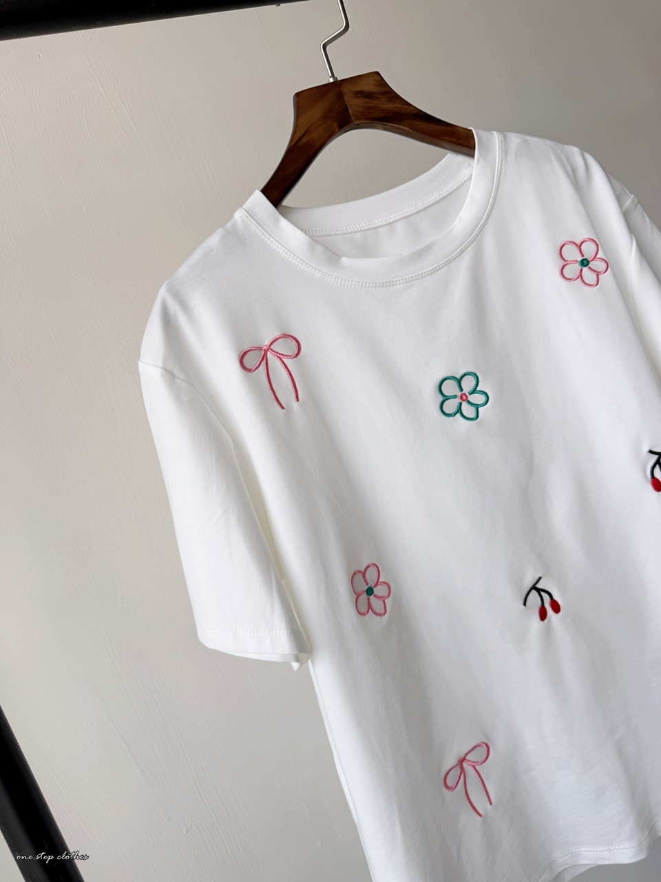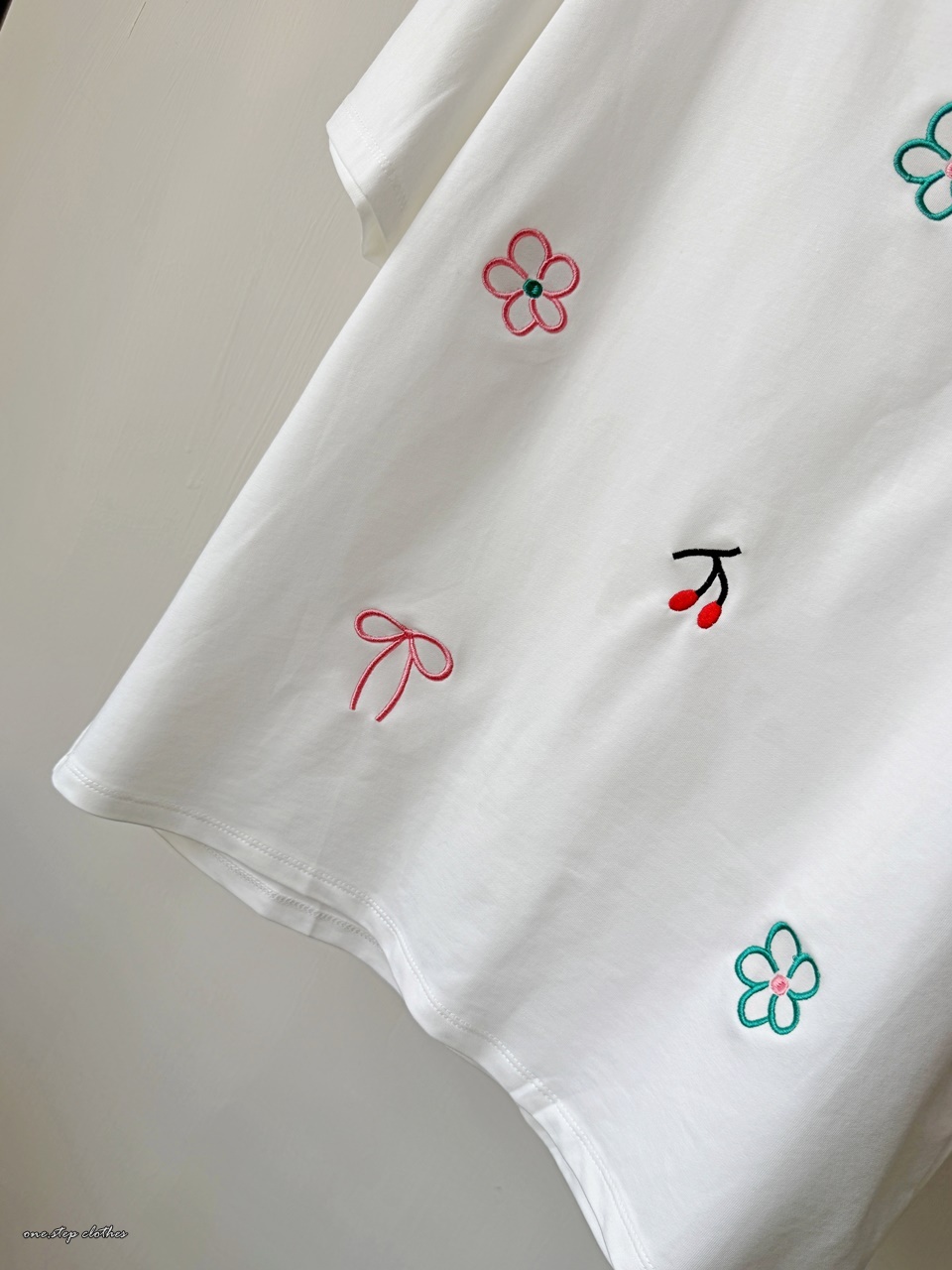 正韓小花櫻桃刺繡T (白)