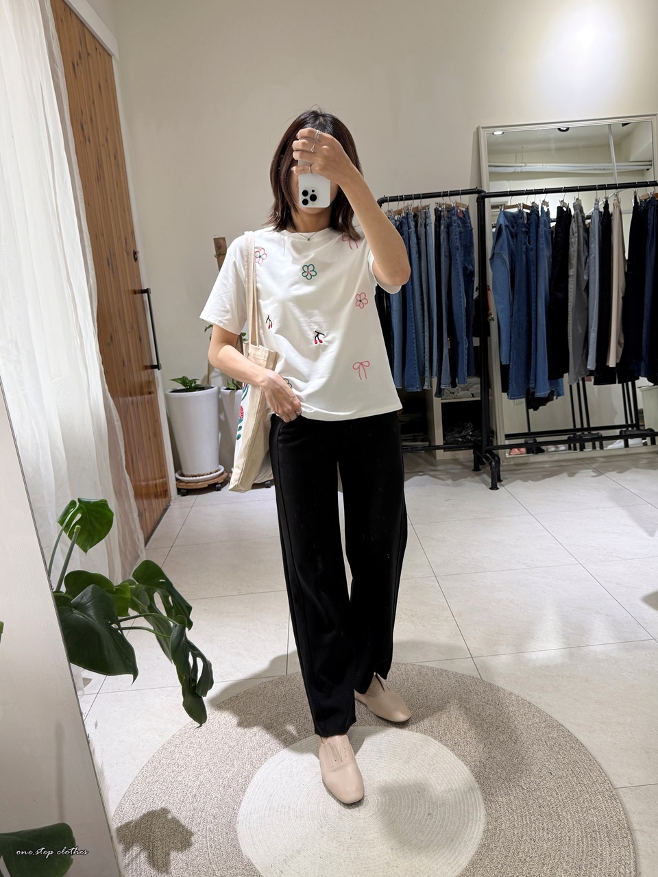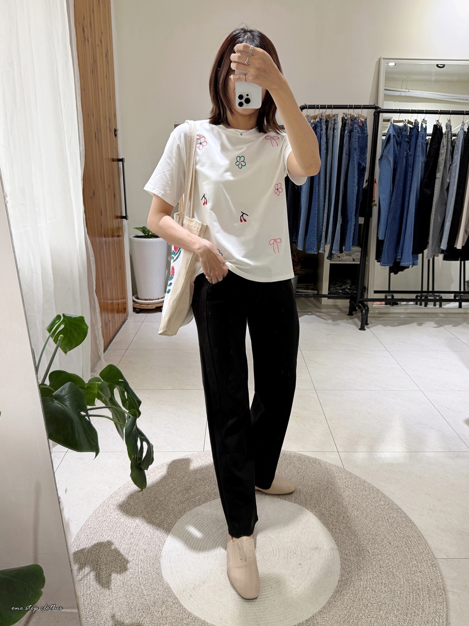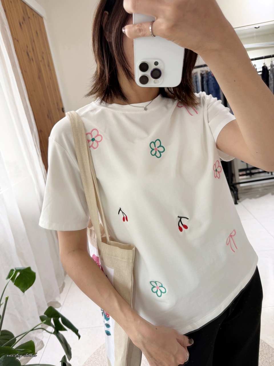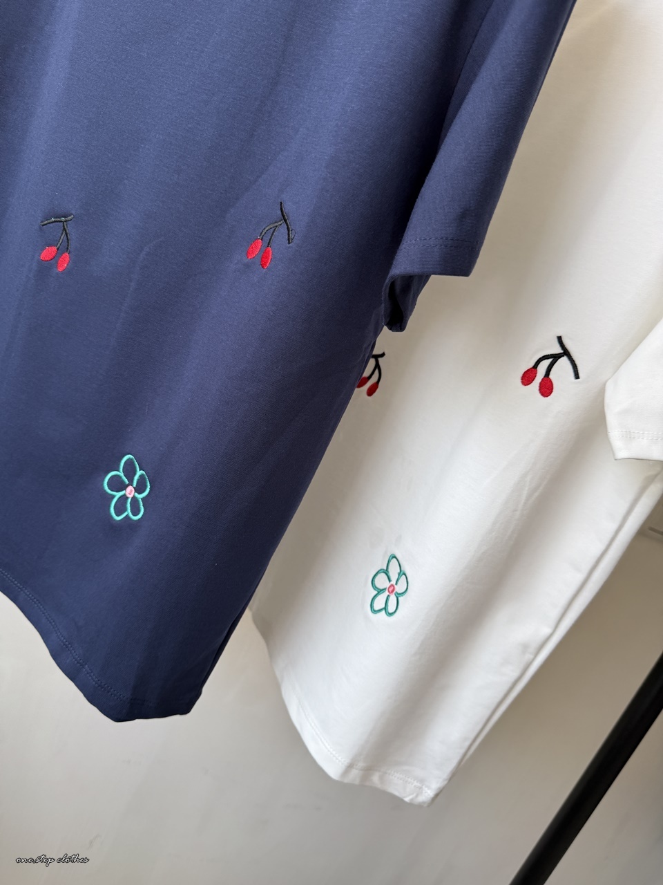 正韓小花櫻桃刺繡T (白)